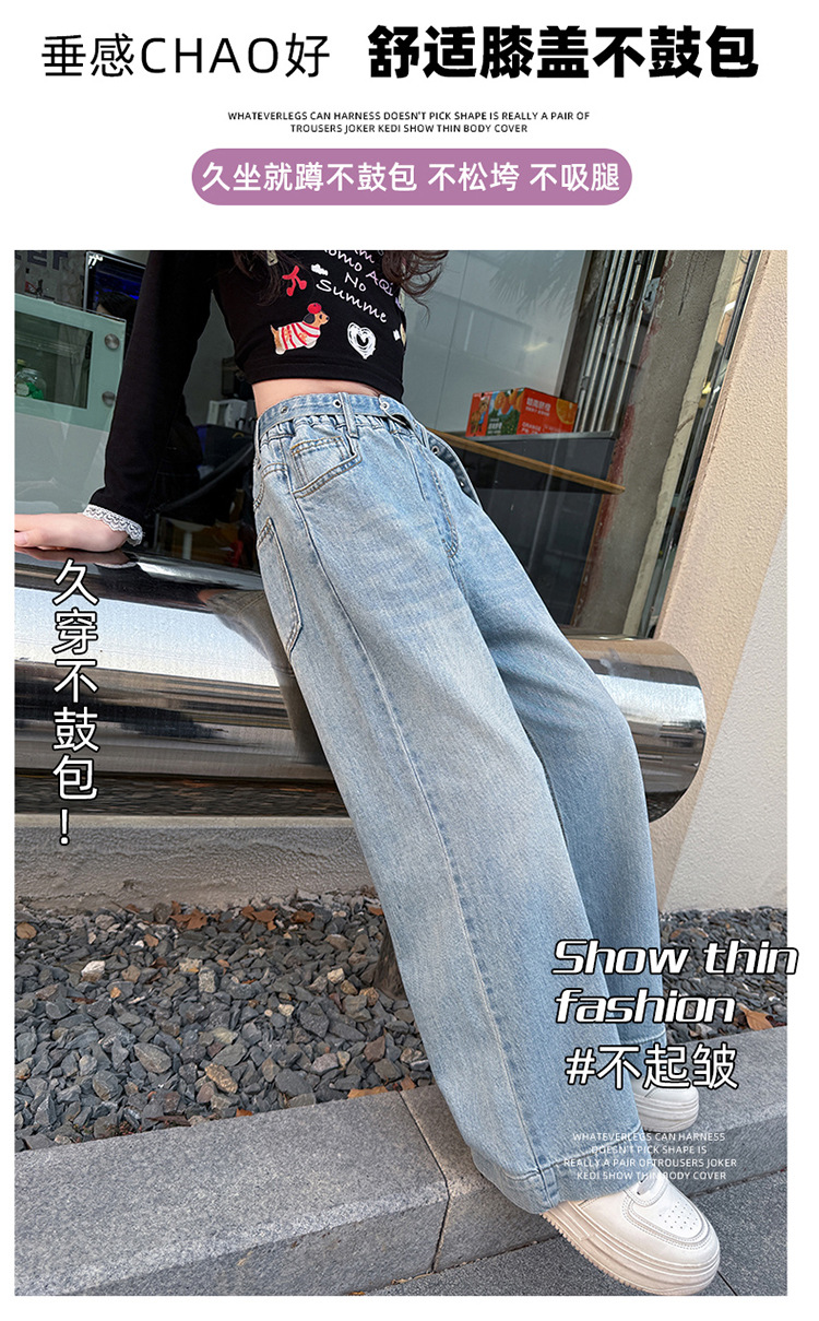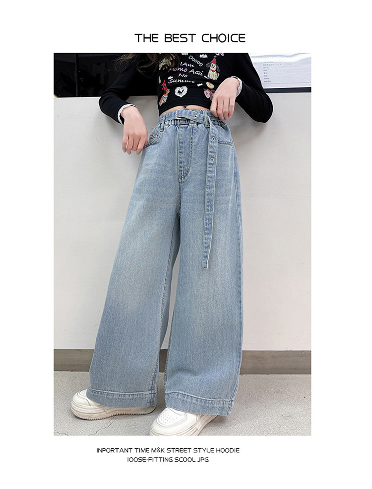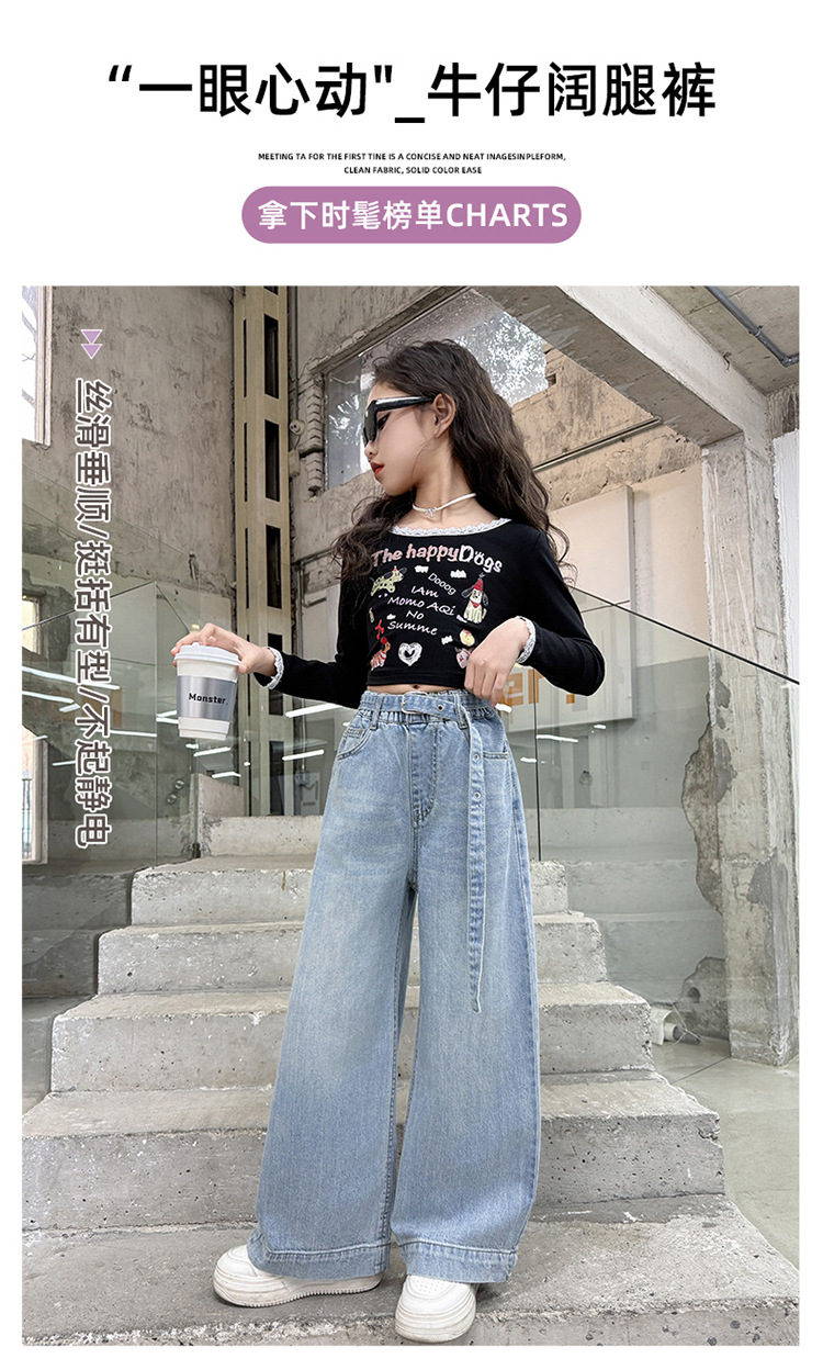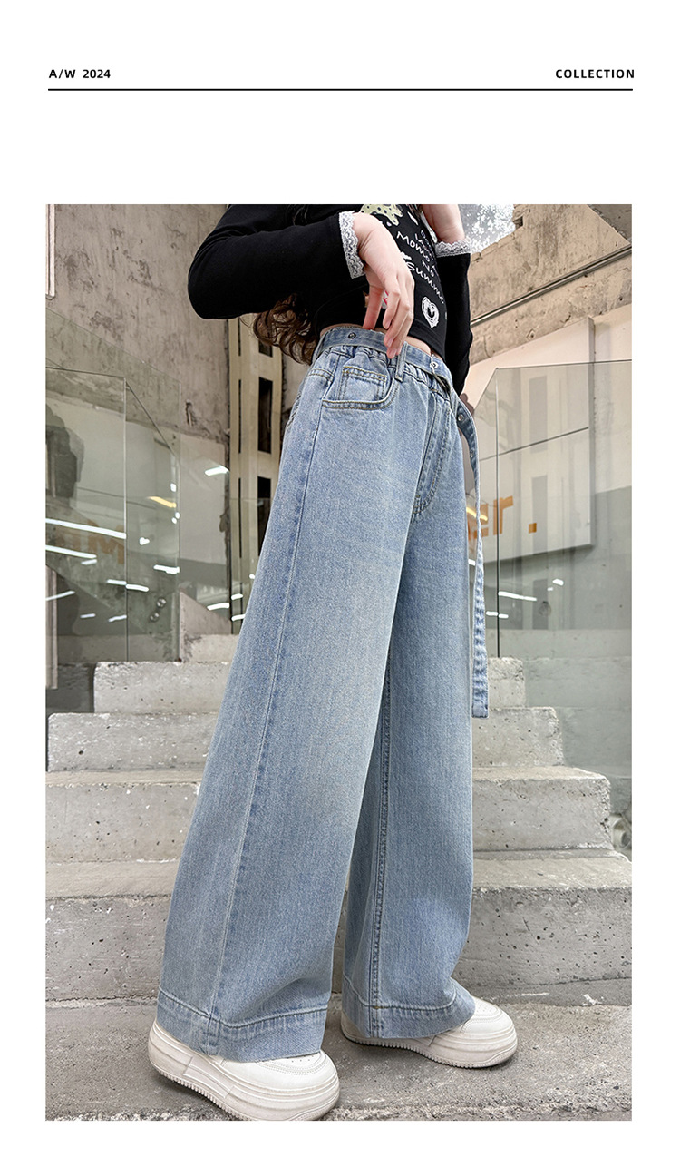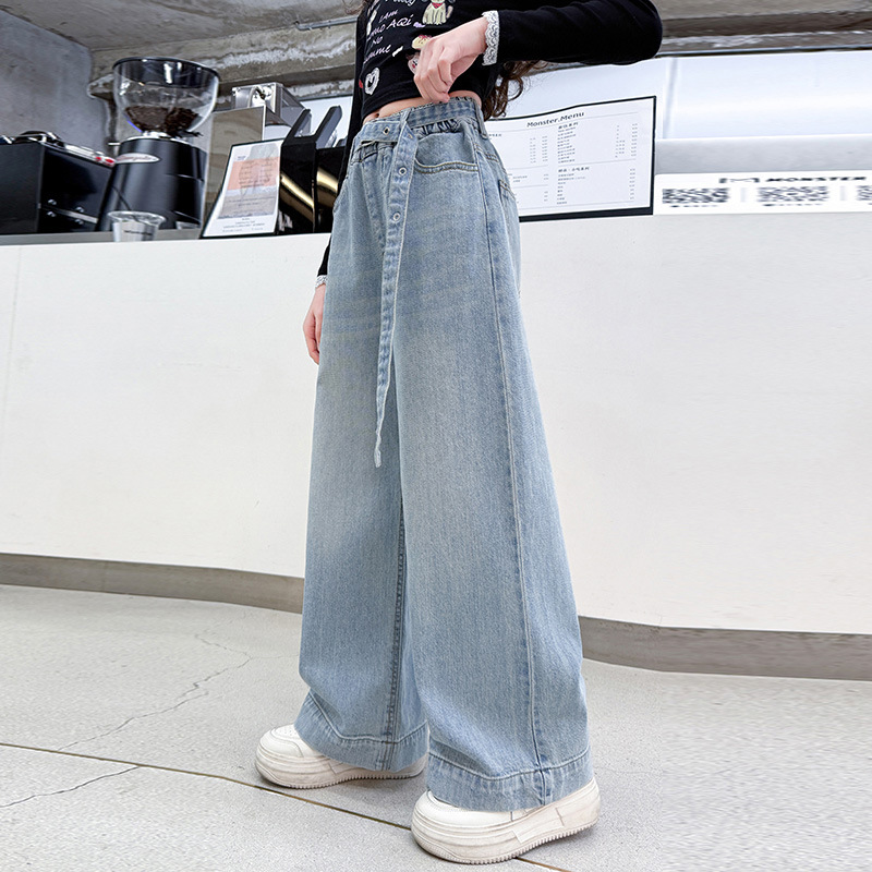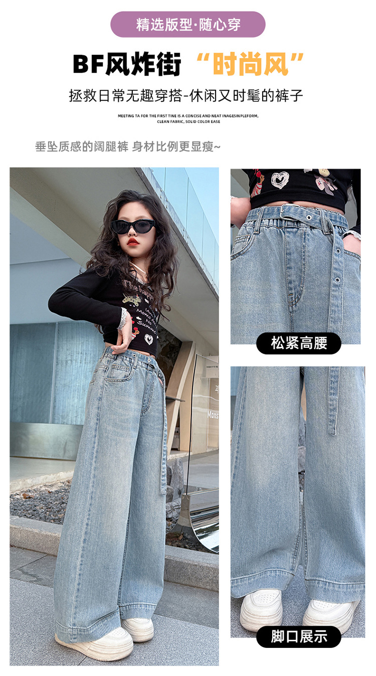 소녀 바지 봄과 가을 2025 새로운 어린이 세련된 유행 청바지 중 큰 어린이 캐주얼 스트레이트 와이드 다리 바지