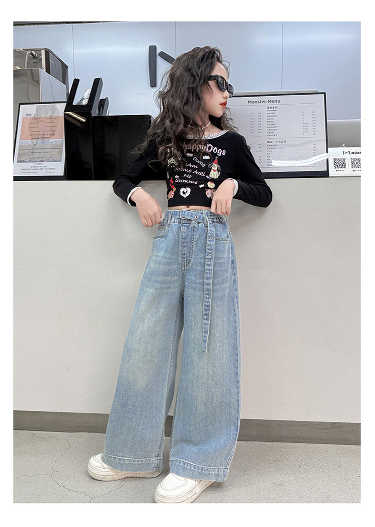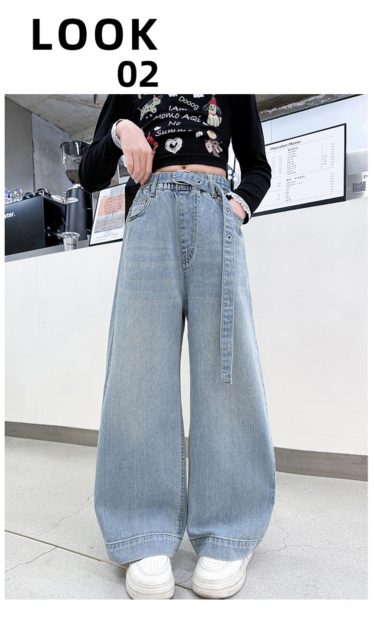 소녀 바지 봄과 가을 2025 새로운 어린이 세련된 유행 청바지 중 큰 어린이 캐주얼 스트레이트 와이드 다리 바지스토어 가기