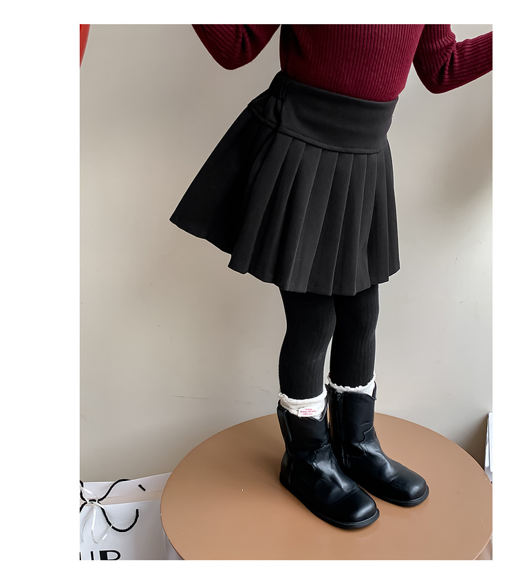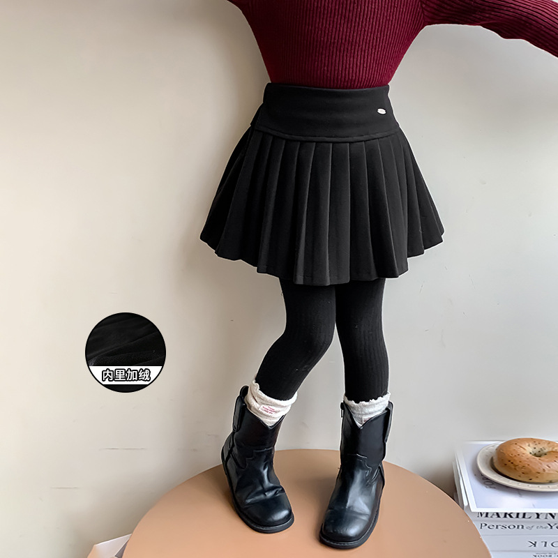 여자 치마 2025 가을과 겨울 새로운 서양식 어린이 기모 치마 겨울 아기 블랙 올 매치 주름 치마스토어 가기