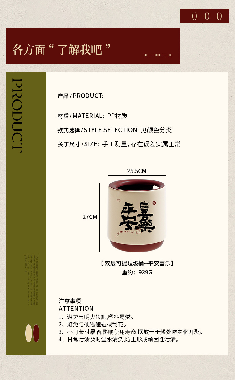 높은 아름다움 가치 휴지통 홈 거실 빛 럭셔리 하이 엔드 2025 새로운 대용량 새로운 중국 스타일 침실 부엌스토어 가기