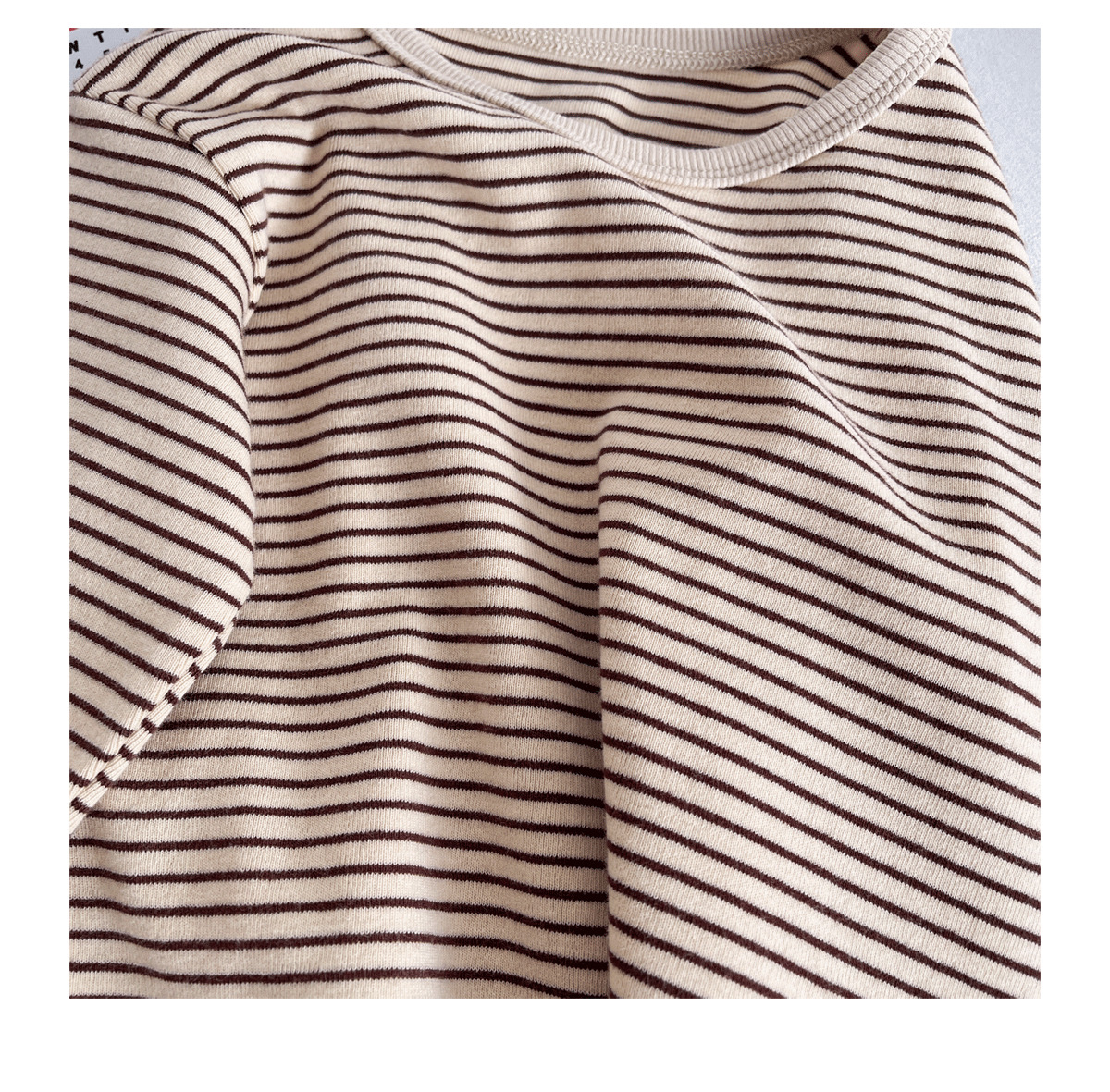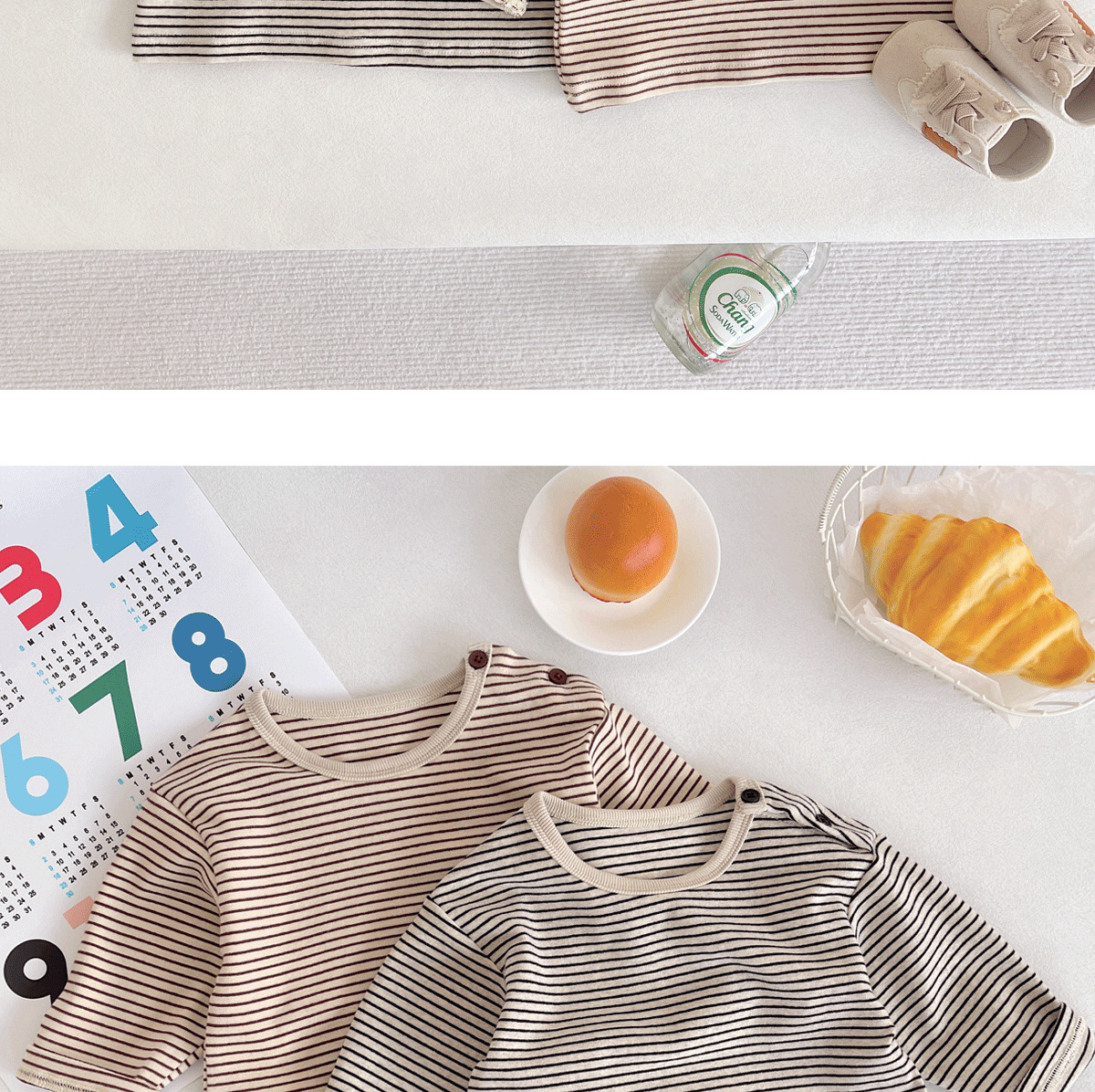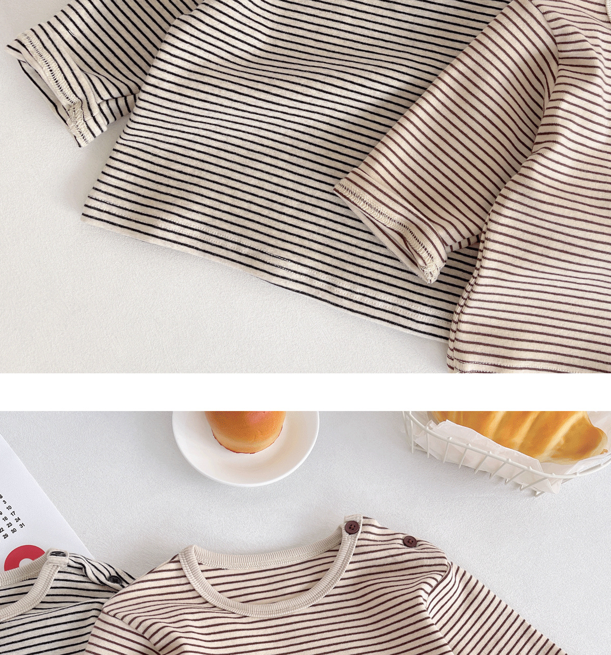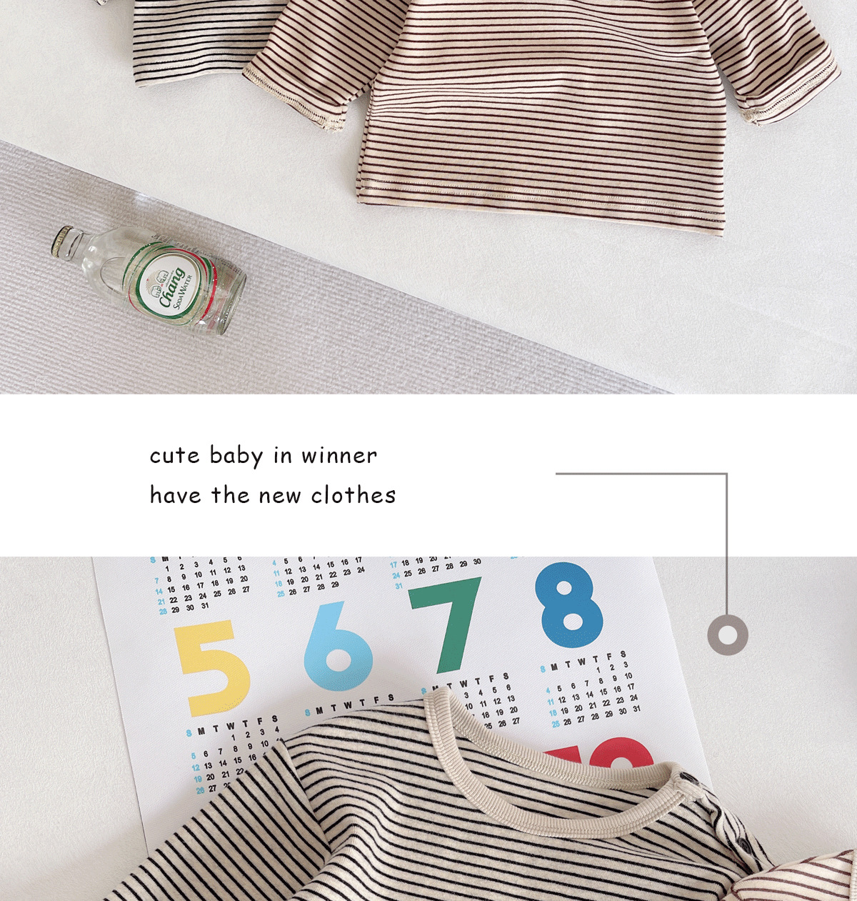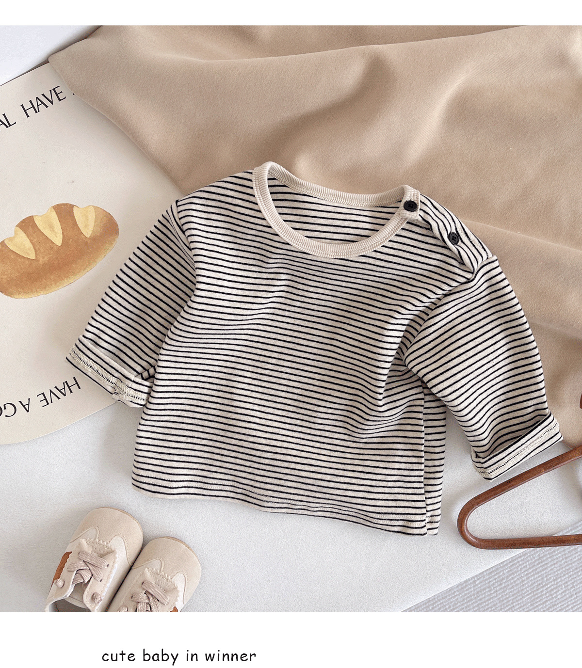 아동복 가을 새 소년과 소녀 줄무늬 긴팔 탑 아기 어깨 버클 티셔츠베이스 셔츠와 간단한 한국식 셔츠스토어 가기