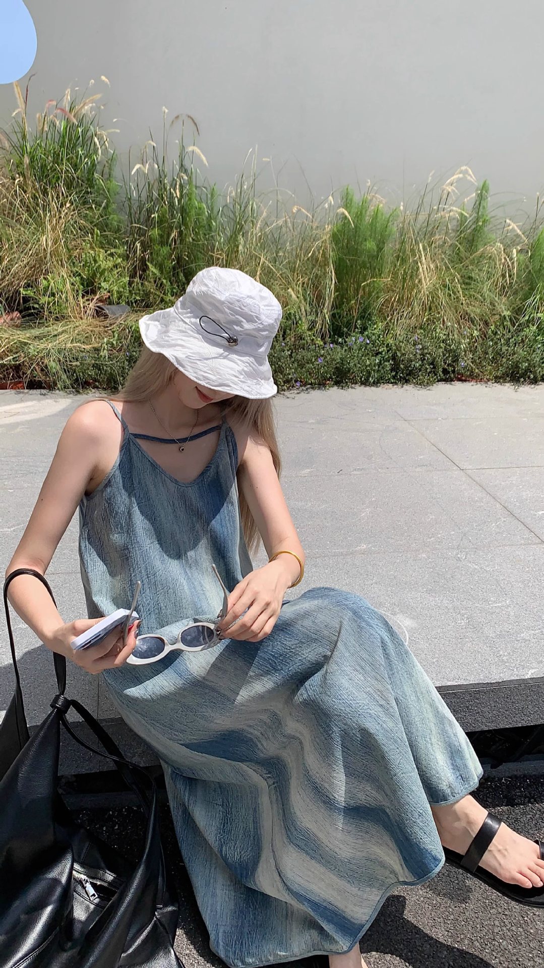 프랑스 타이 다이 스트랩 원피스 여성의 여름 느슨한 슬리밍 아름다운 싼야 비치 긴 원피스 해변 휴가스토어 가기
