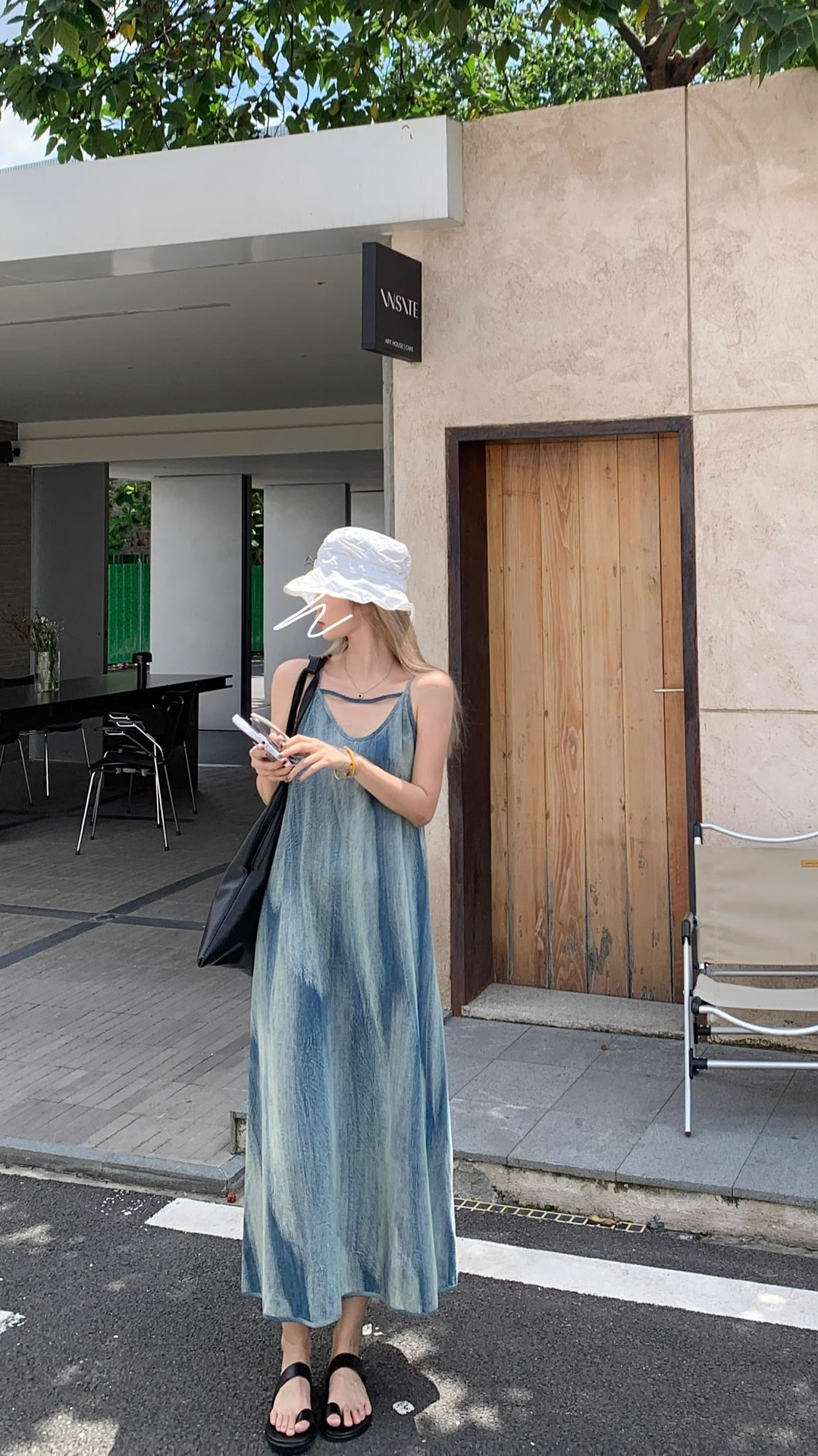프랑스 타이 다이 스트랩 원피스 여성의 여름 느슨한 슬리밍 아름다운 싼야 비치 긴 원피스 해변 휴가