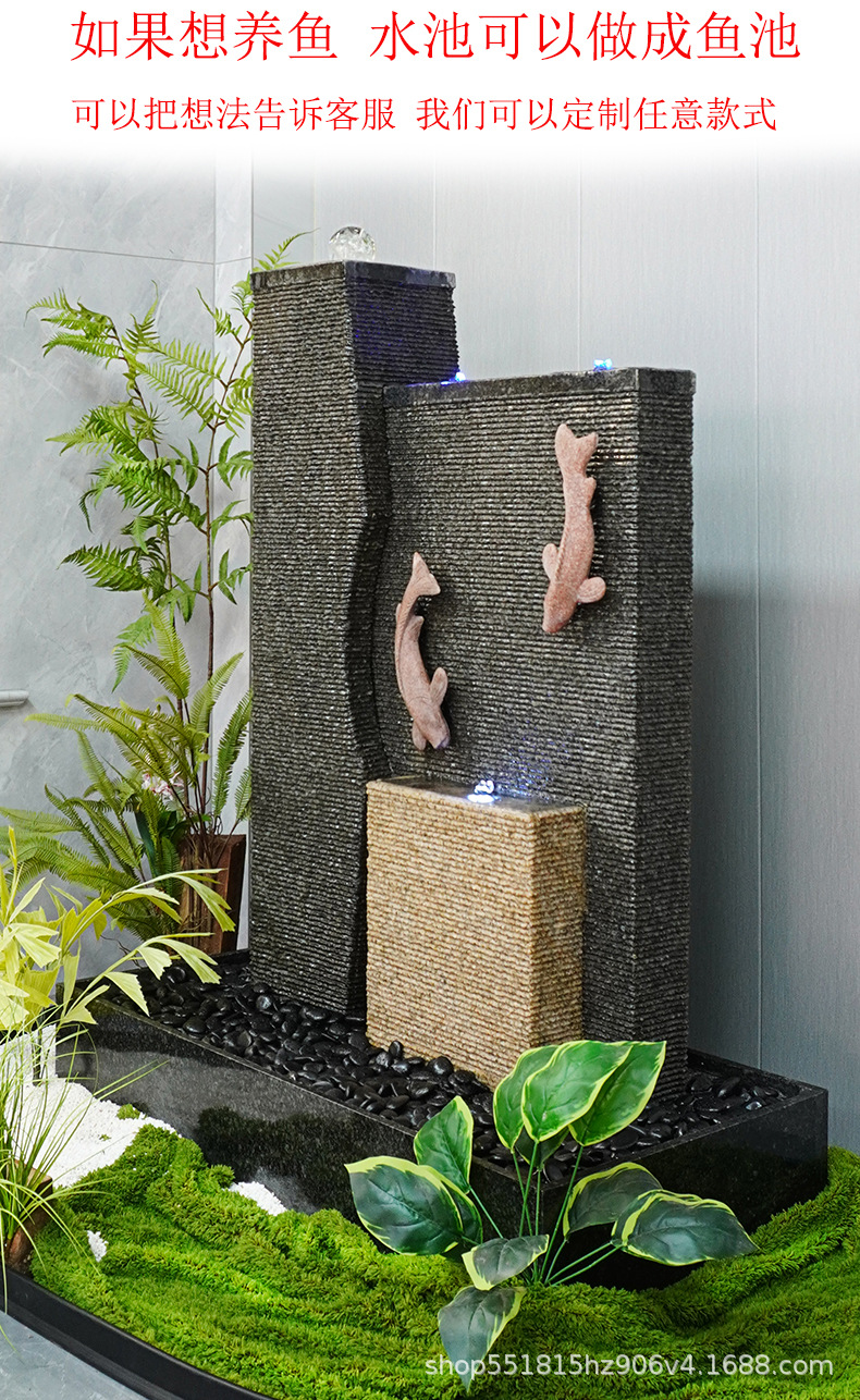 돌 물 커튼 벽 흐르는 물 장식품 야외 스크린 분수 풍경 돌 실내 조경 현관 물고기 탱크 거실 장식스토어 가기