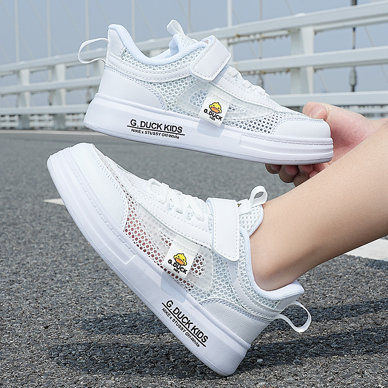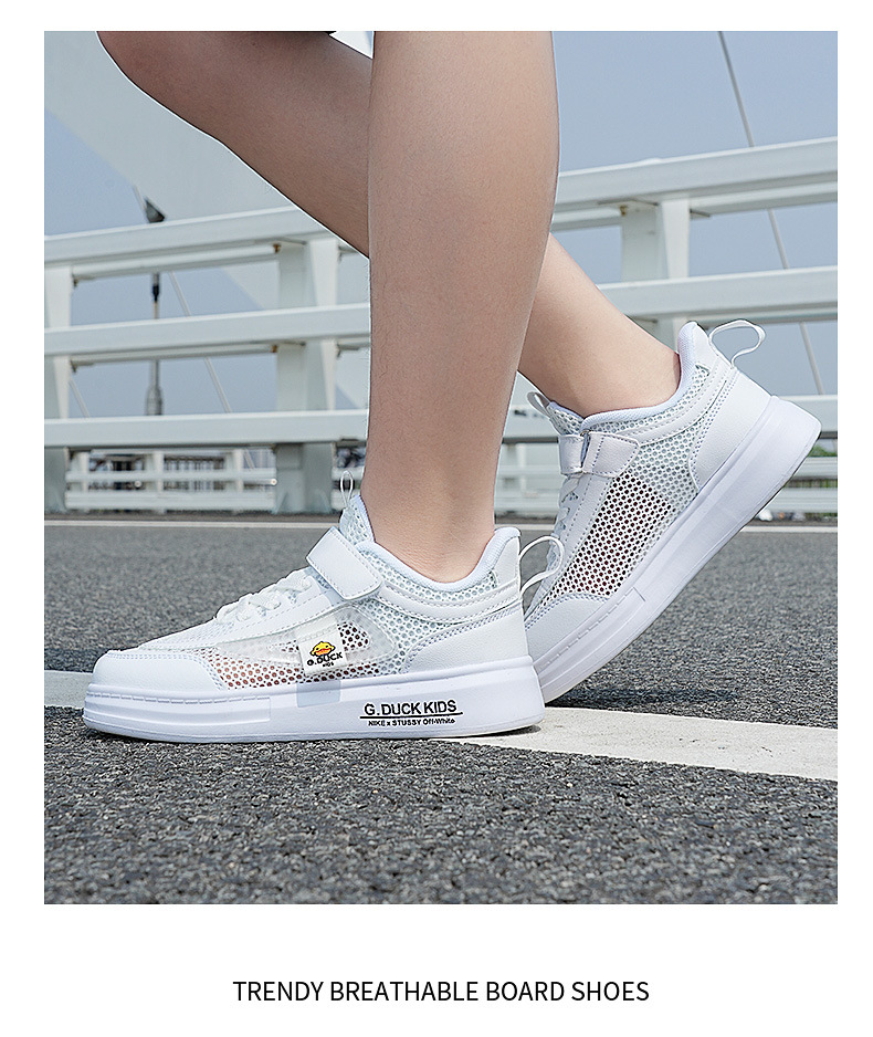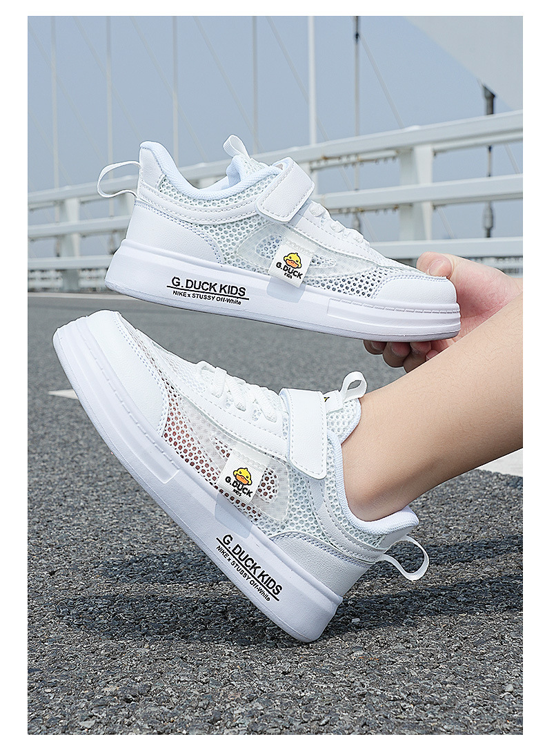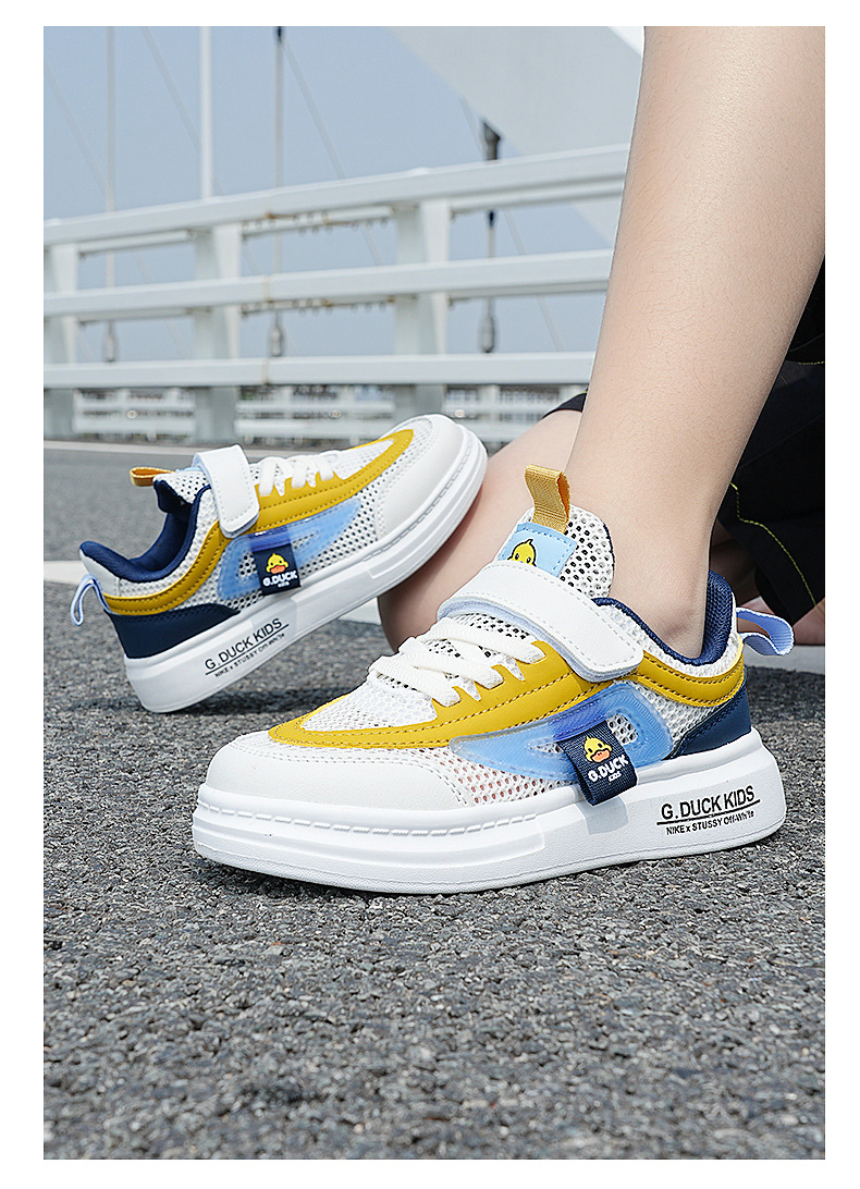 노란 오리 정품 어린이 신발 소년 보드 신발 메쉬 표면 봄과 가을 2025 년 새해 소녀 캐주얼 신발 어린이 운동화