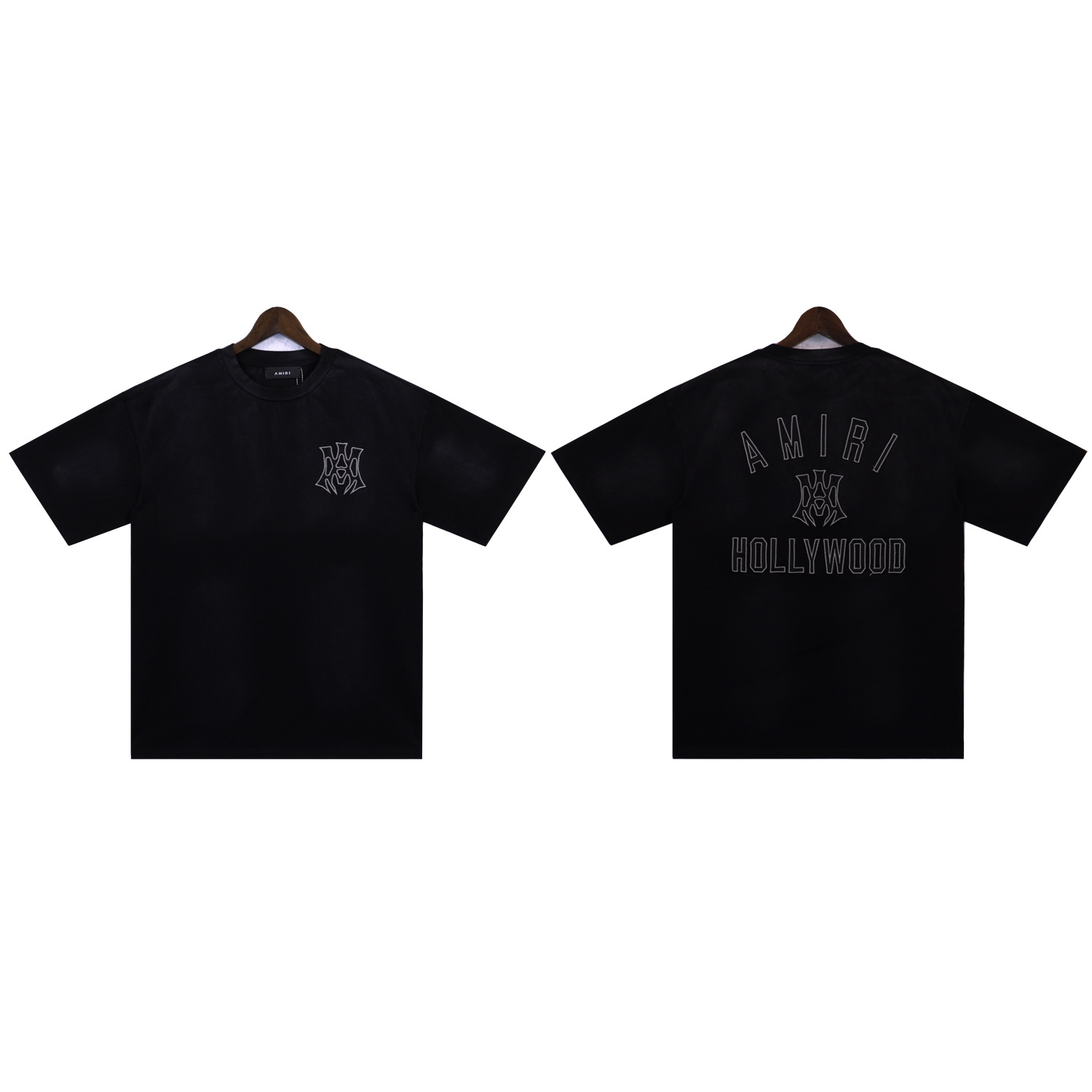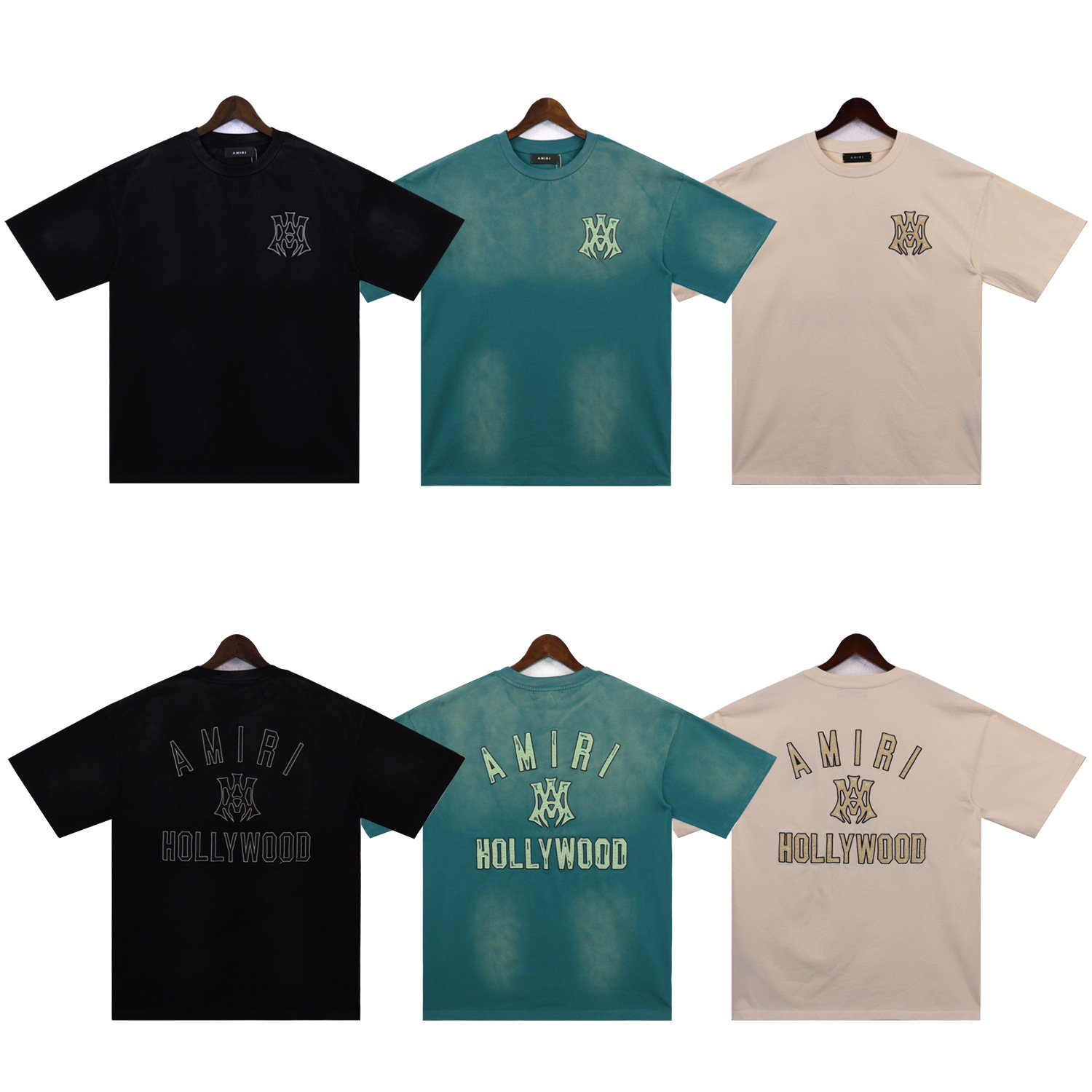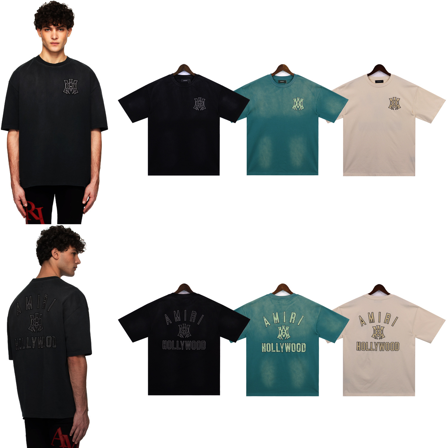 도매 신상품 25 크로스보더 유럽 및 미국 트렌드 여름 워싱 레트로 레터 프린트 패치 반팔 남녀공용