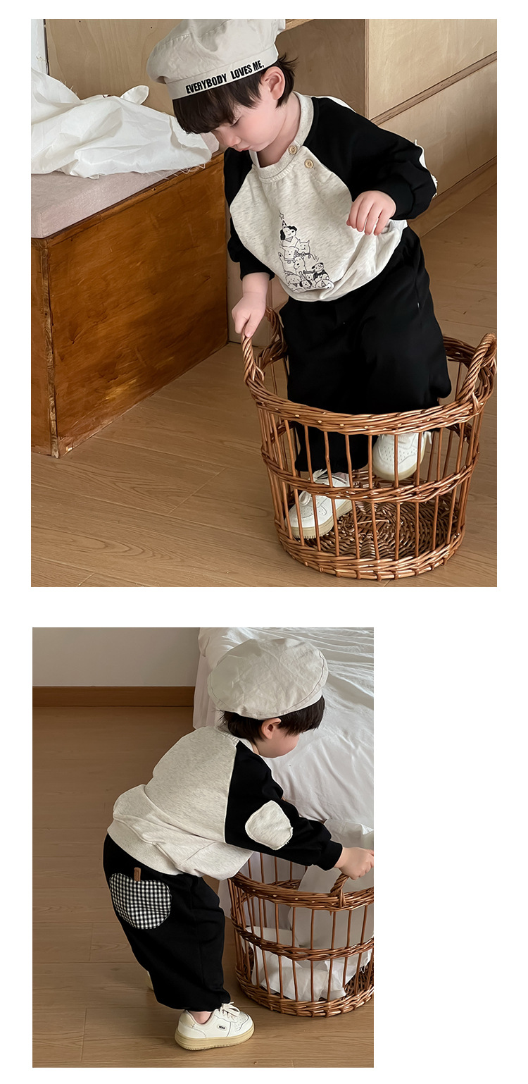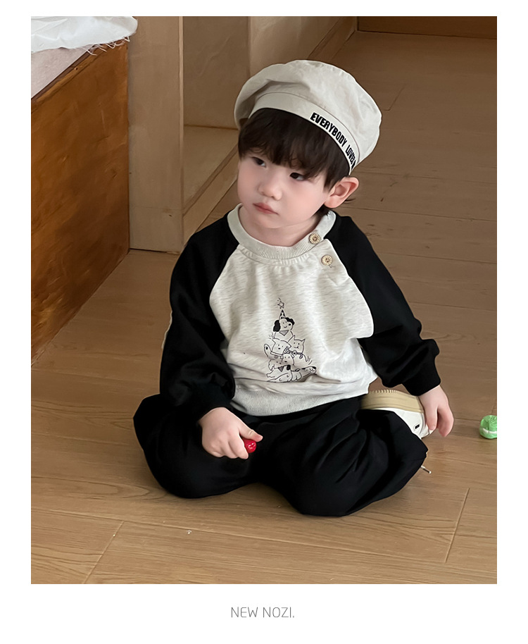아동 가을 의류 신제품 2025 아기 옷 한국 스타일 아동복 소년 프린트 라글란 소매 만화 투피스 슈트스토어 가기