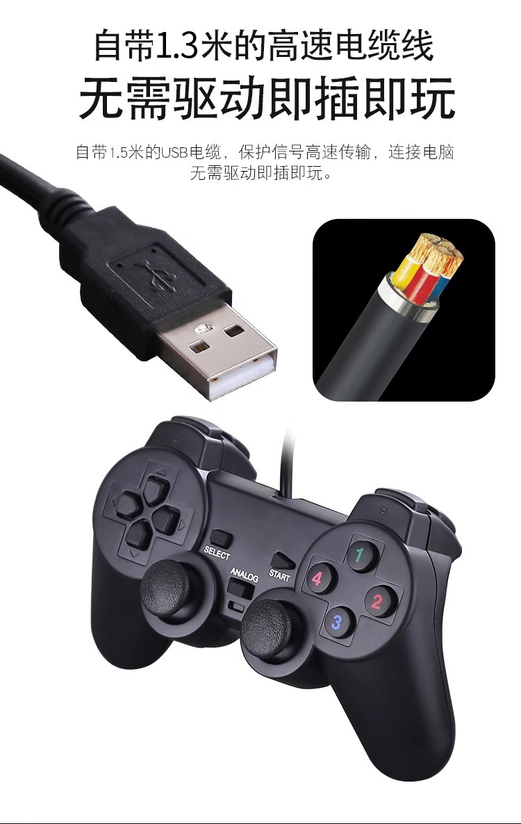 208 단일 진동 노트북 게임 패드 PC 데스크탑 컴퓨터 유선 USB 로커 더블 플레이어 FC 클래식 향수 아케이드