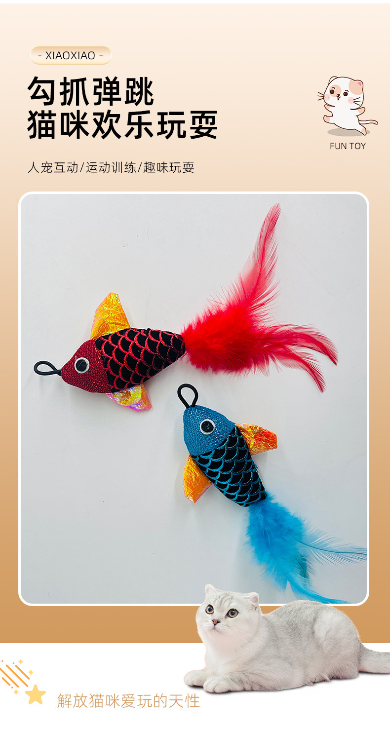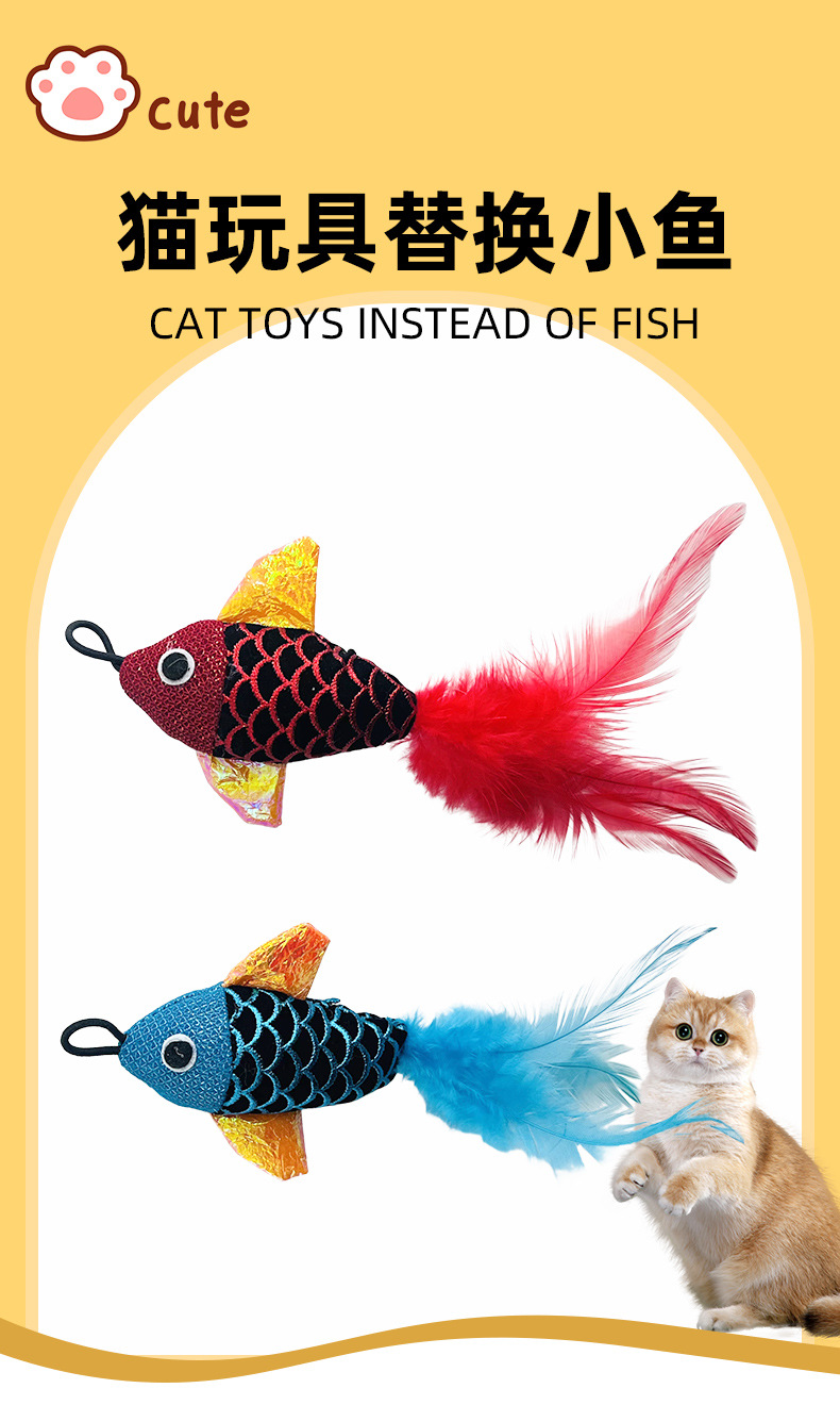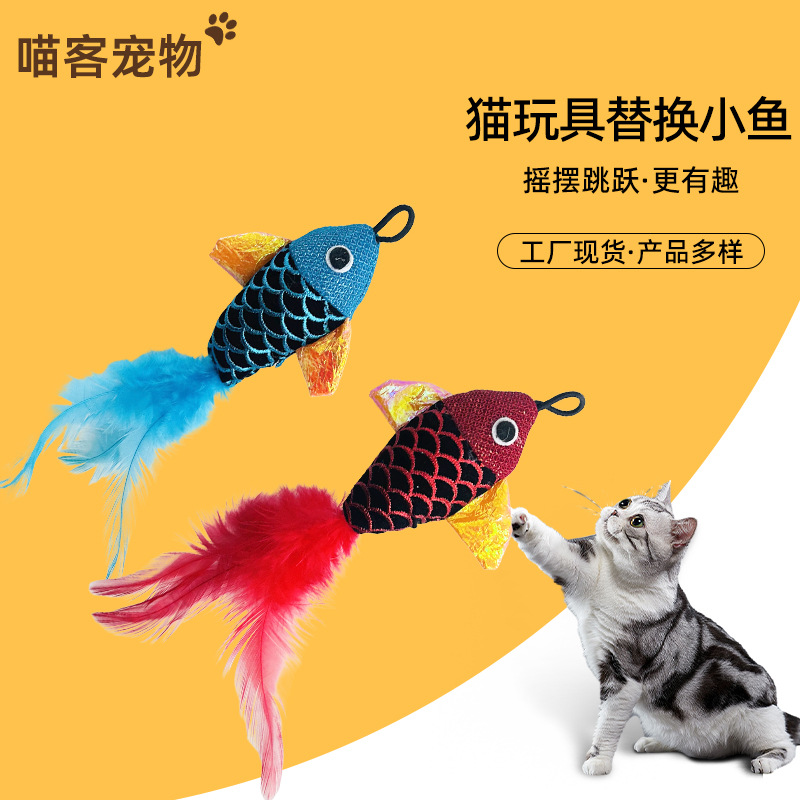 낚싯대 깃털 작은 물고기 고양이 재미 스틱 교체 애완 동물 장난감 고양이 재미 자기 안녕 장난감 고양이 재미 스틱 작은 물고기
