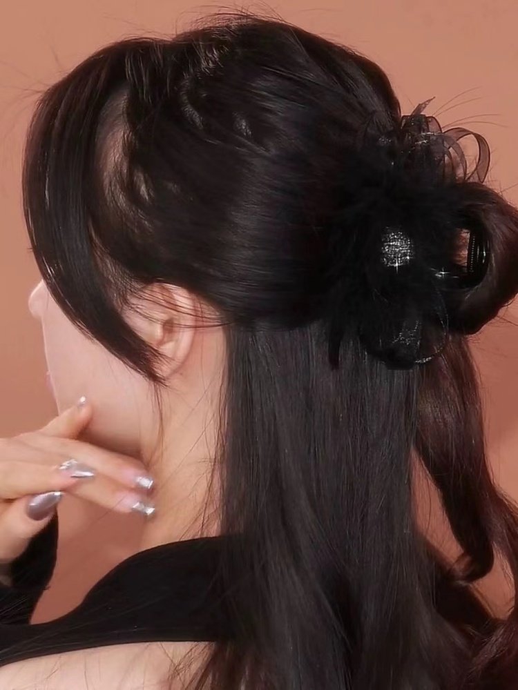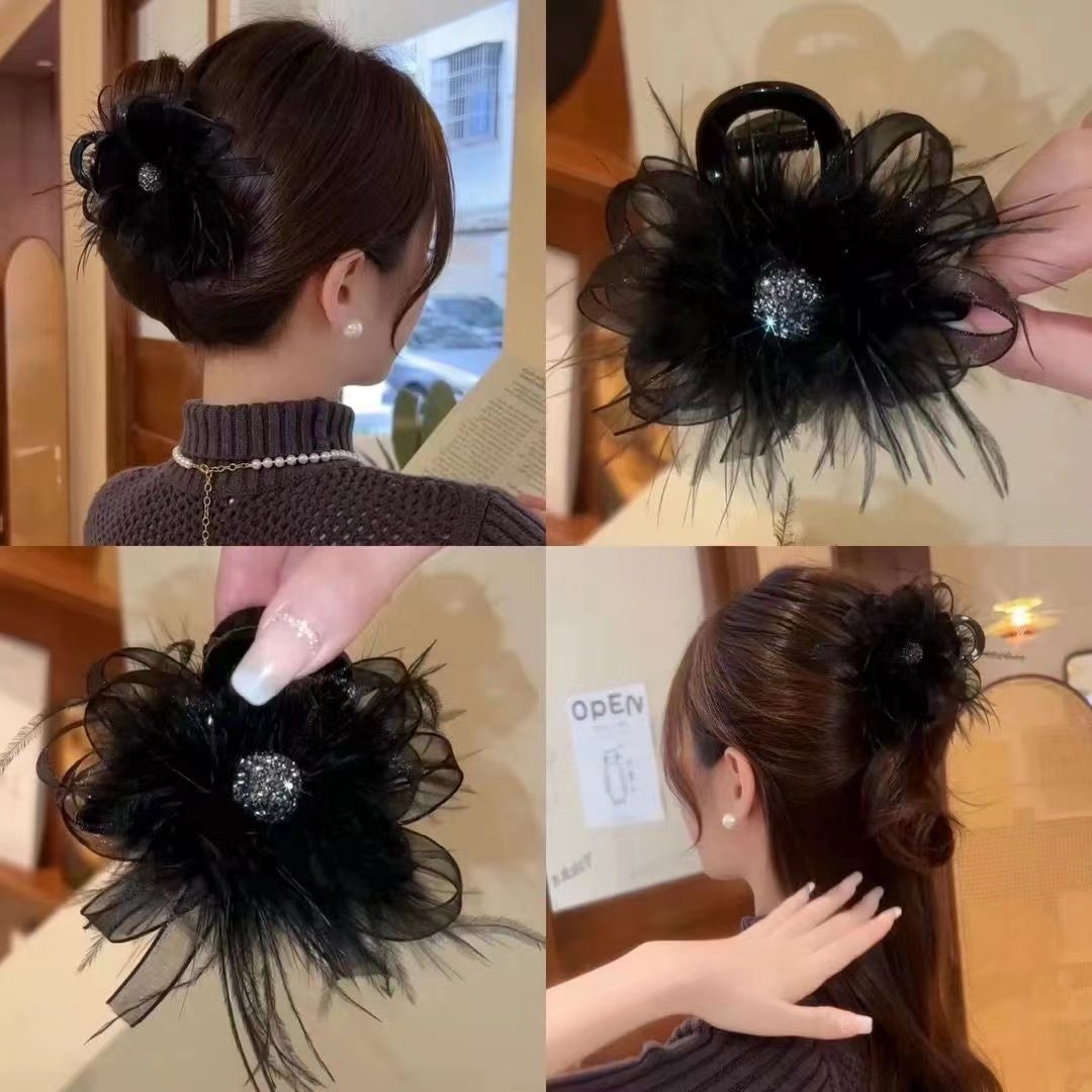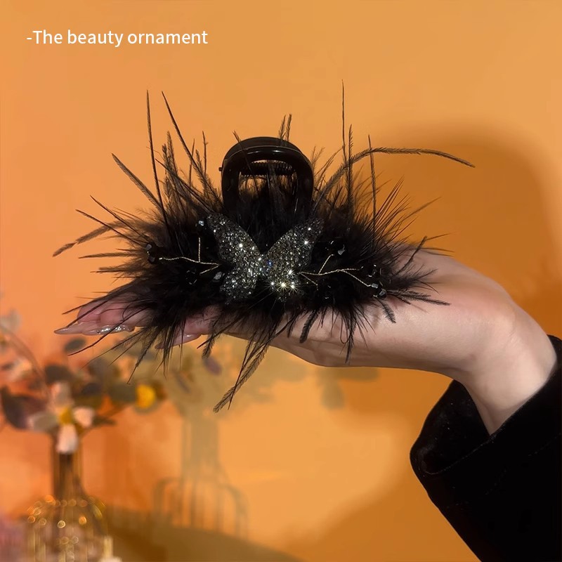 Baisiya 검은 나비 깃털 큰 잡아 클립 헤드웨어 헤어 볼륨 큰 머리 클립 센스 헤어 상어 클립