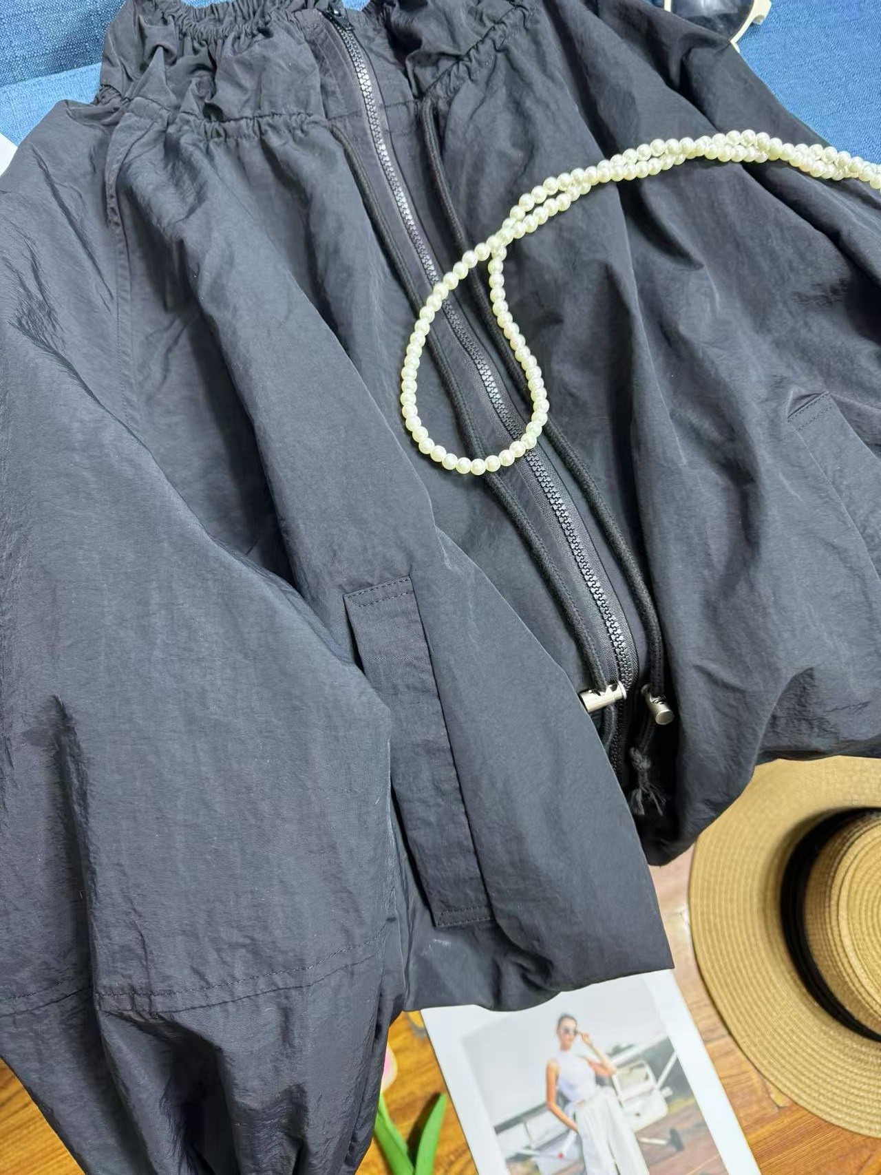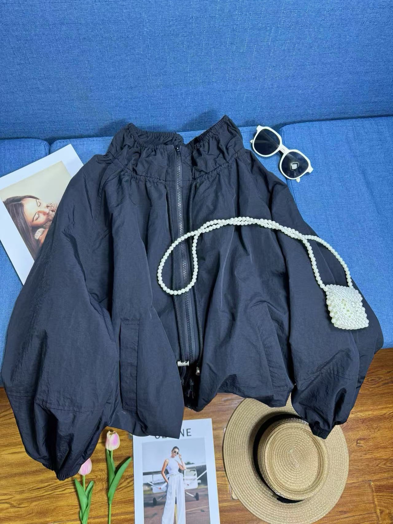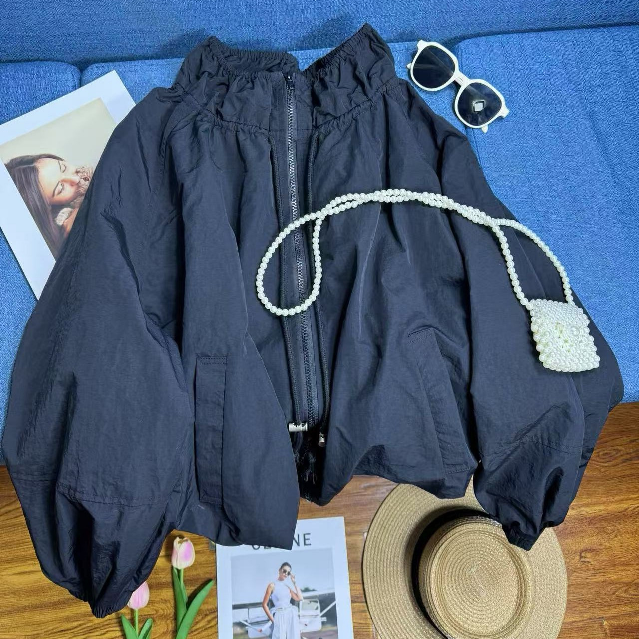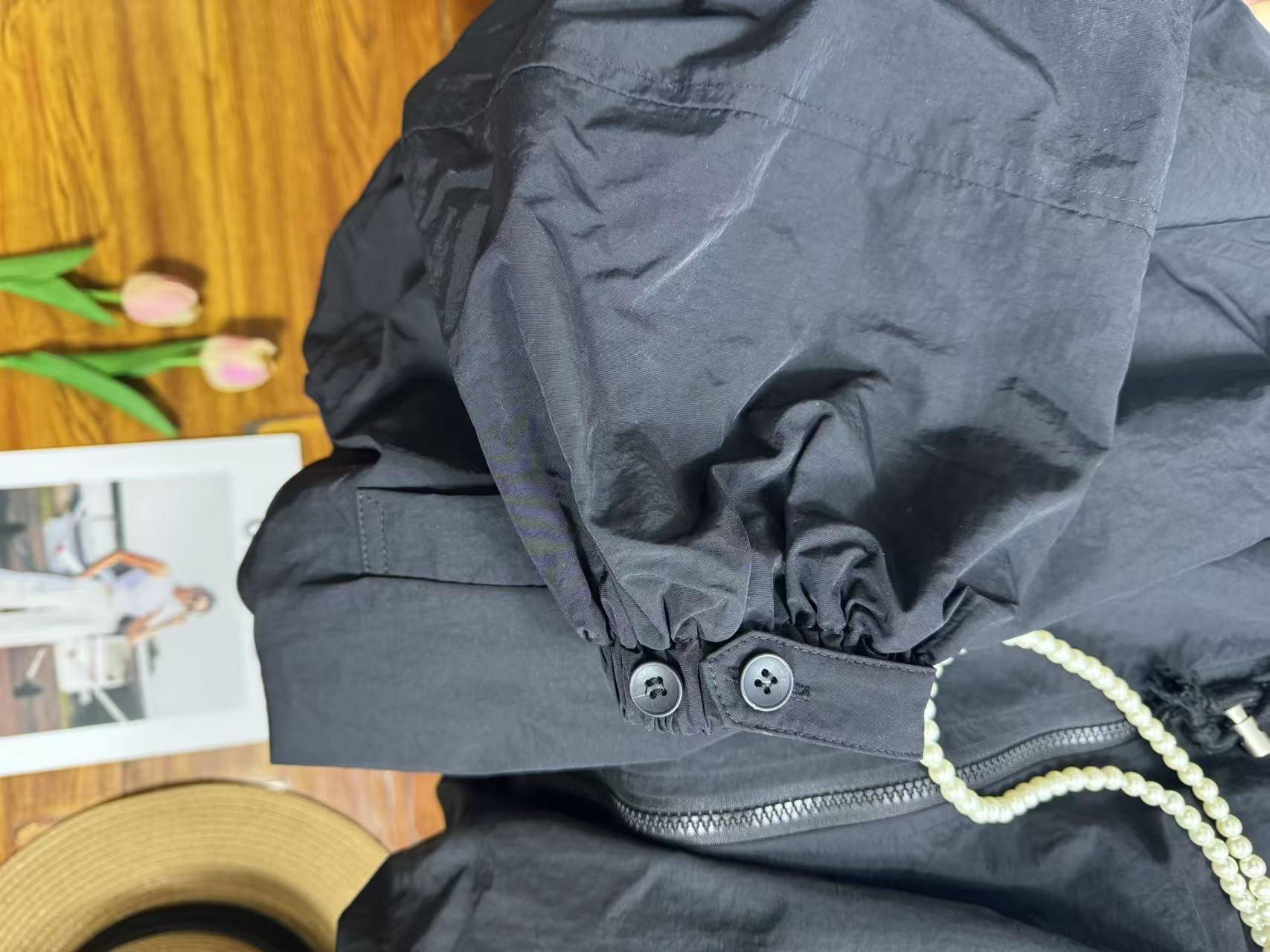 봄과 가을 새로운 디자인 센스 플라워 칼라 작업복 블랙 재킷 느슨한 캐주얼 올 매치 코트 여성