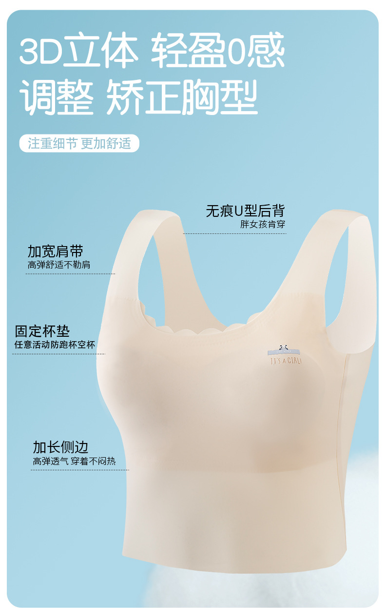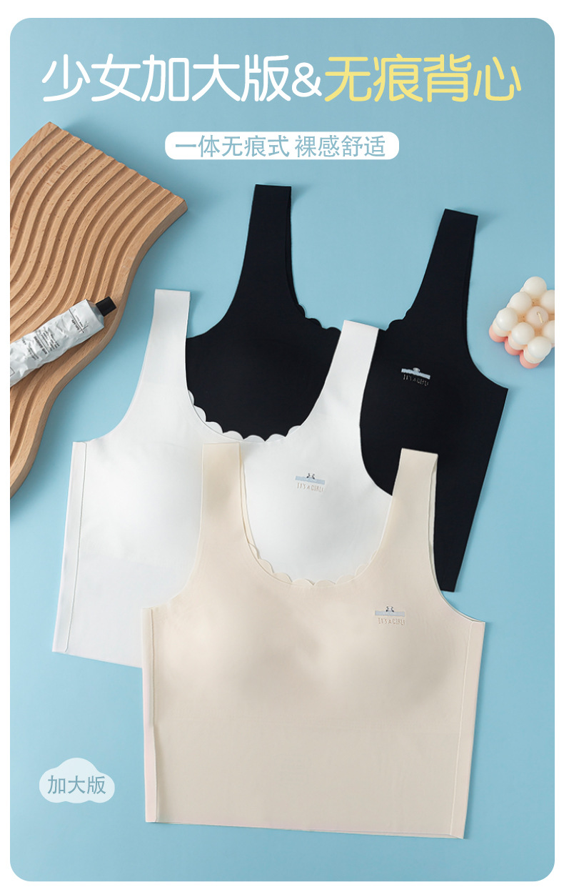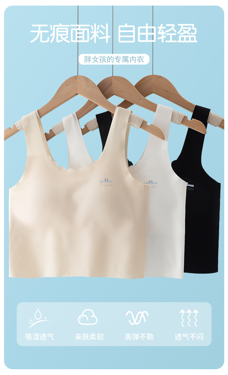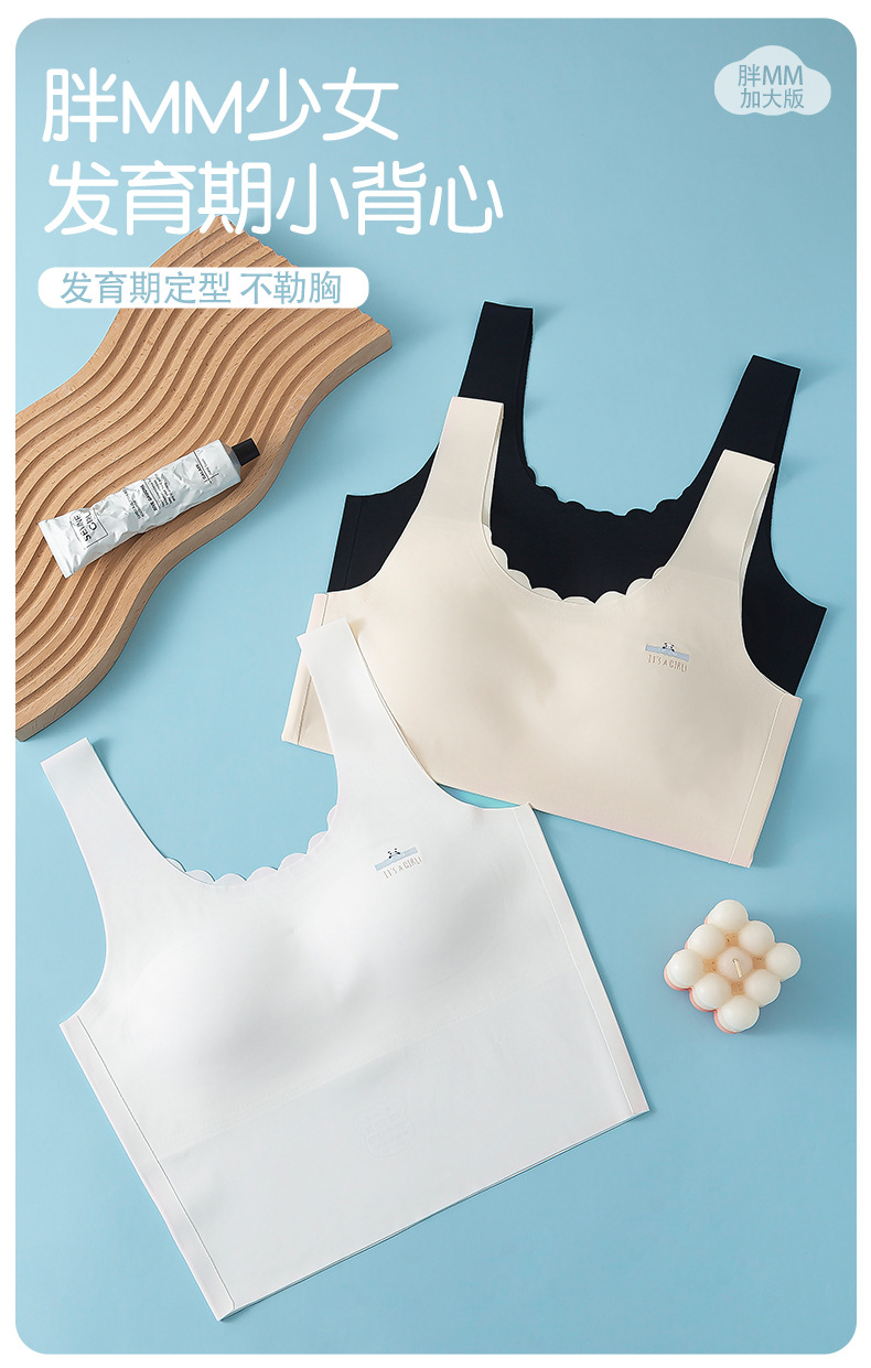 플러스 사이즈 개발 작은 조끼 소녀 속옷 중간 길이 원피스 안티 범프 고정 컵 추적없는 학생 브래지어스토어 가기
