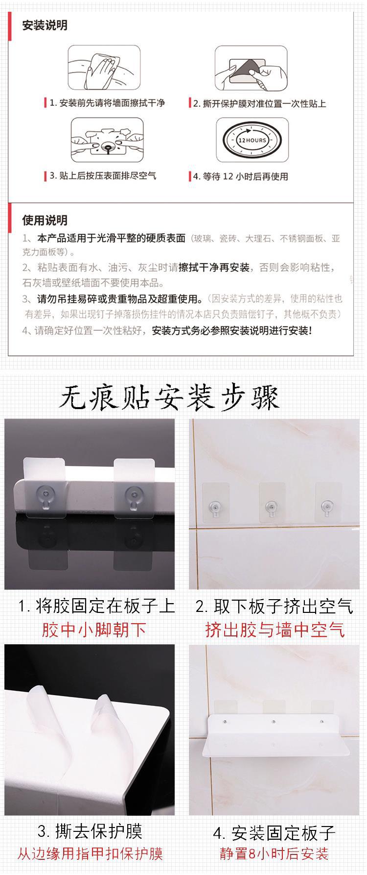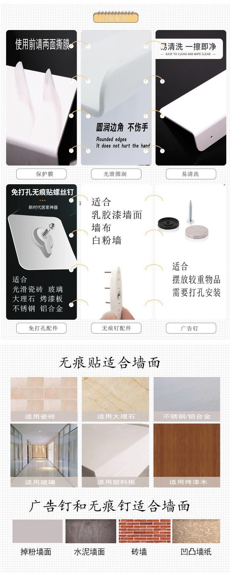 아크릴 흑백 저장 랙 벽 교수형 구멍이없는 플렉시 유리 파티션 욕실 주방 틈새 보관