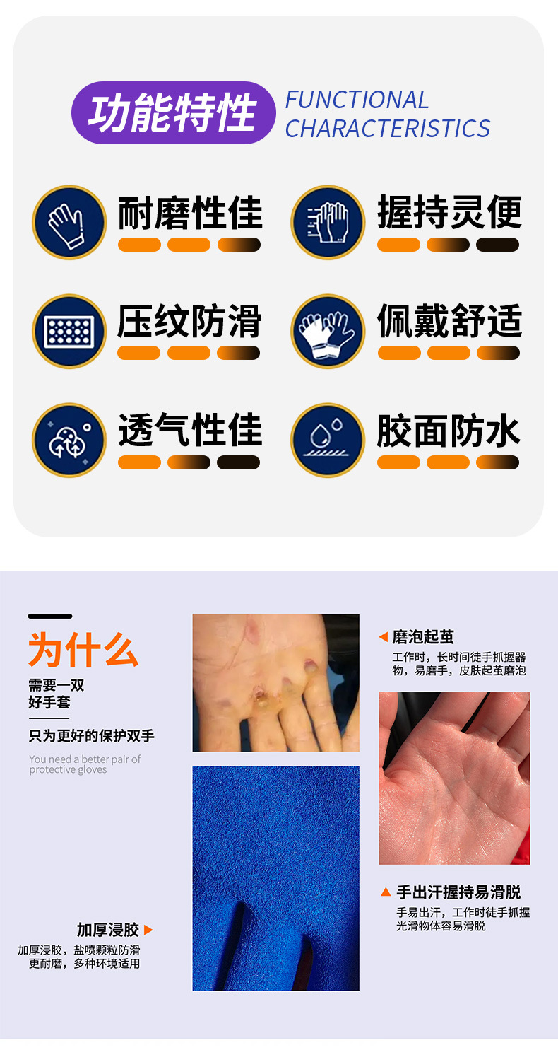고 탄성 고무 소금 스프레이 입자 미끄럼 방지 프로스트 노동 장갑 두껍게 마모 방지 미끄럼 방지 미끄럼 방지 핸들 장갑 공장 도매스토어 가기