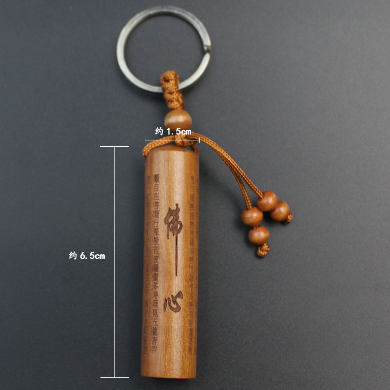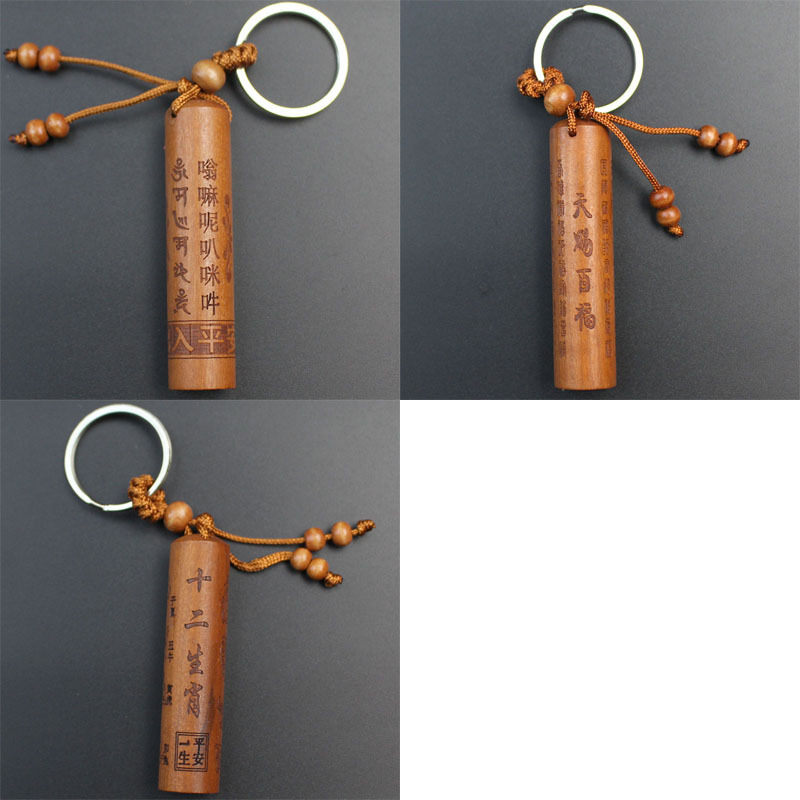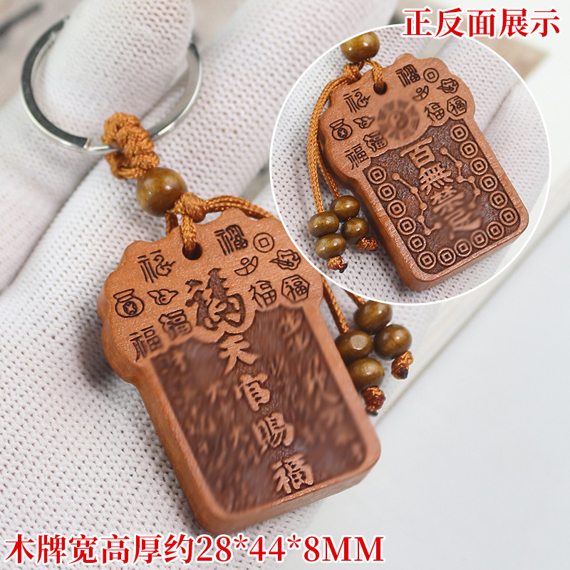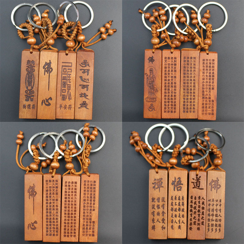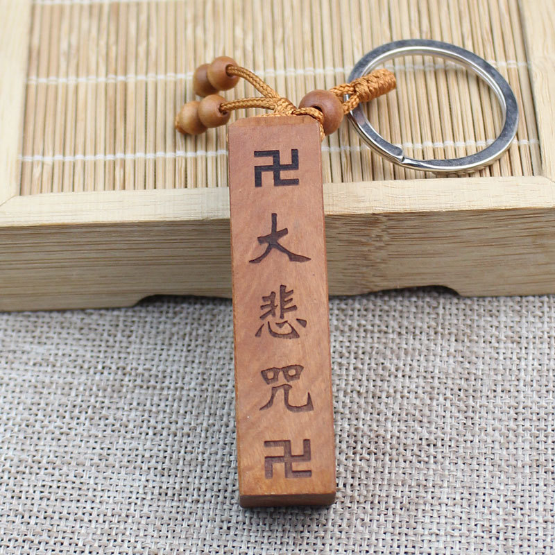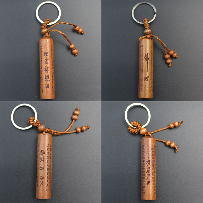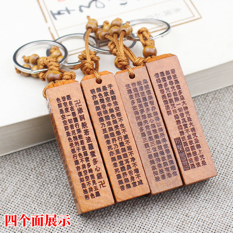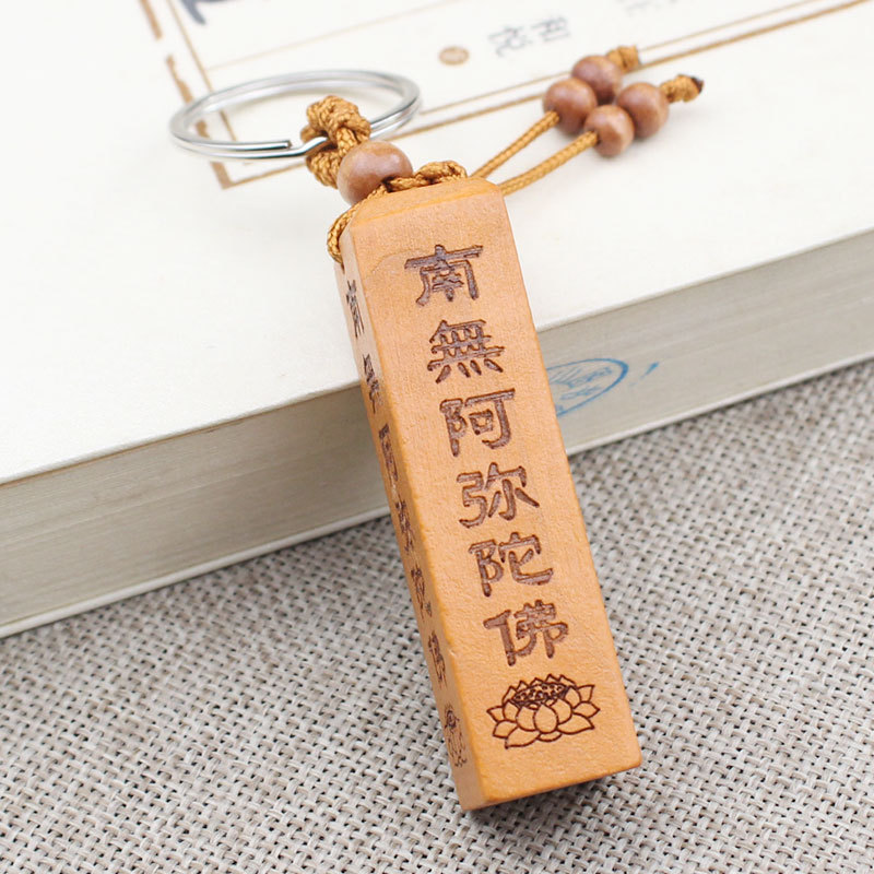 Shoumu Square Peach Wood 자동차 키 체인 펜던트 성경 Shurangama Mantra 길조 성경의 신 스텔스 공급 도매