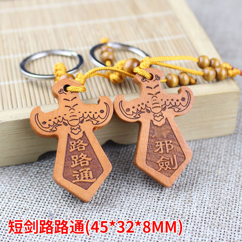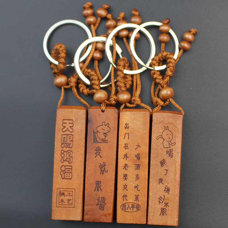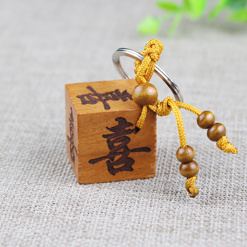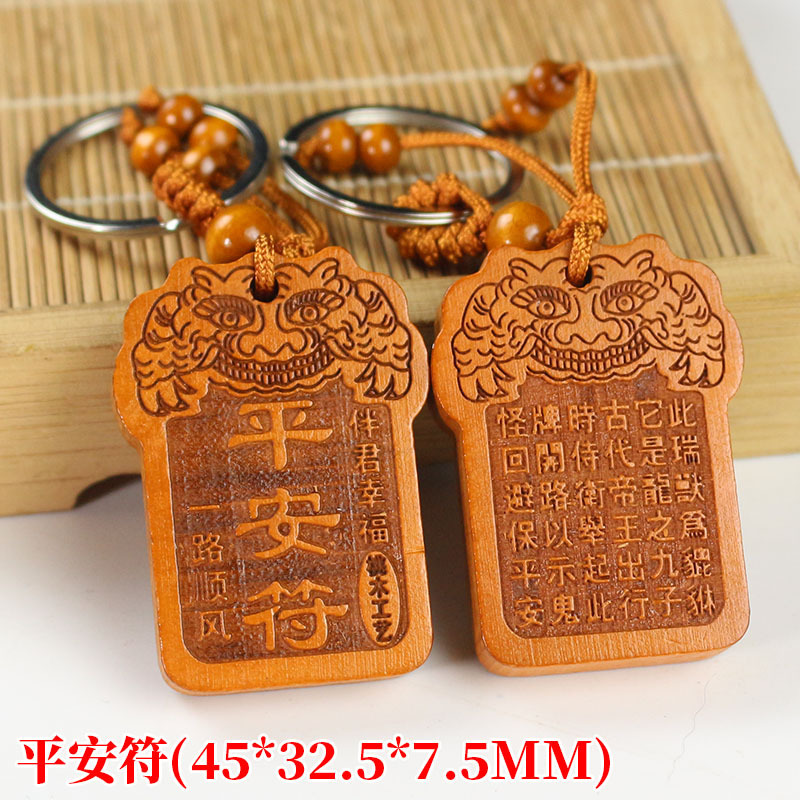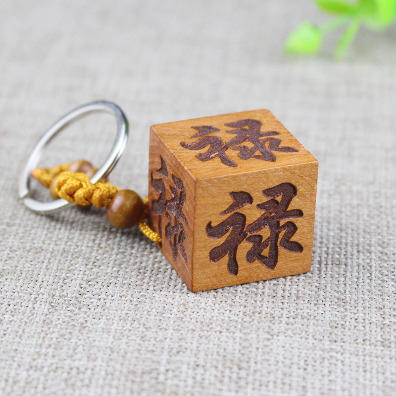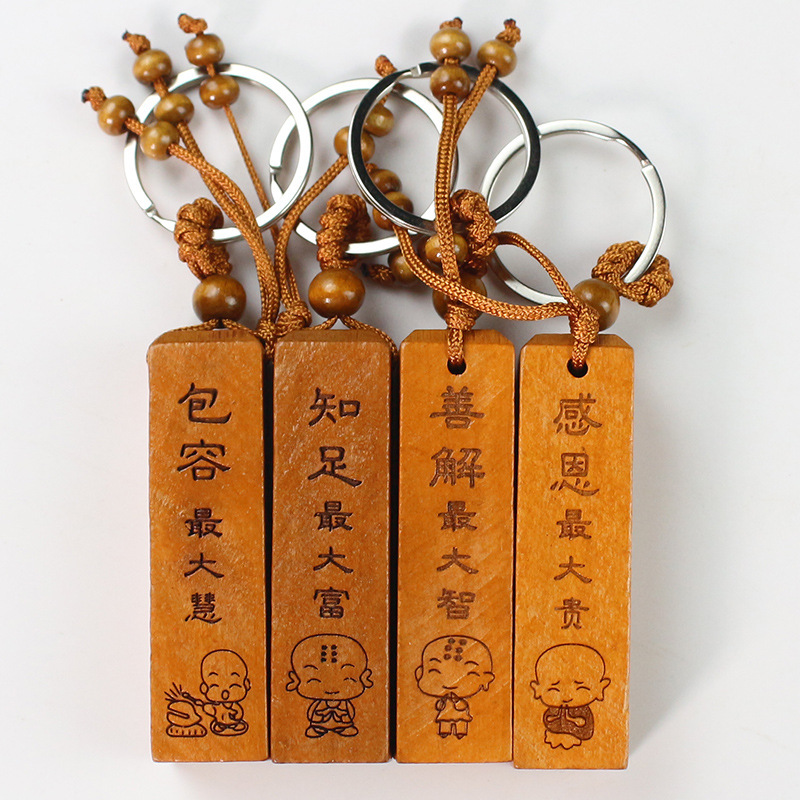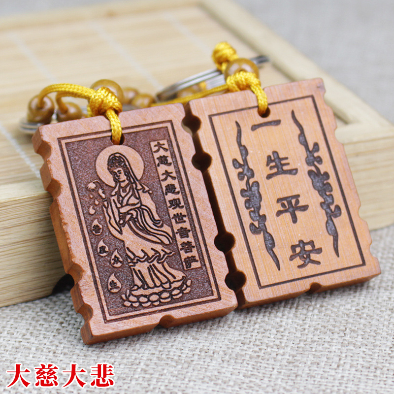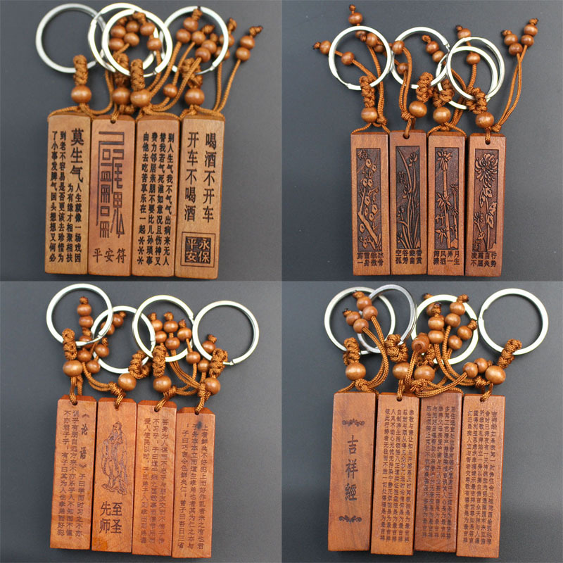 Shoumu Square Peach Wood 자동차 키 체인 펜던트 성경 Shurangama Mantra 길조 성경의 신 스텔스 공급 도매