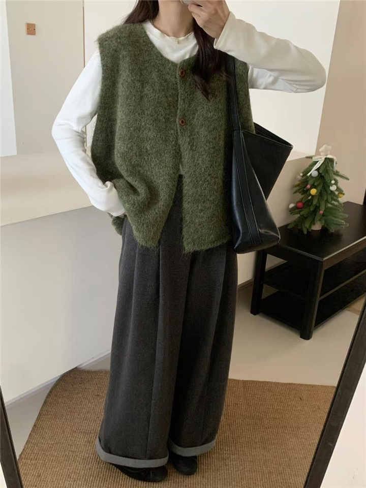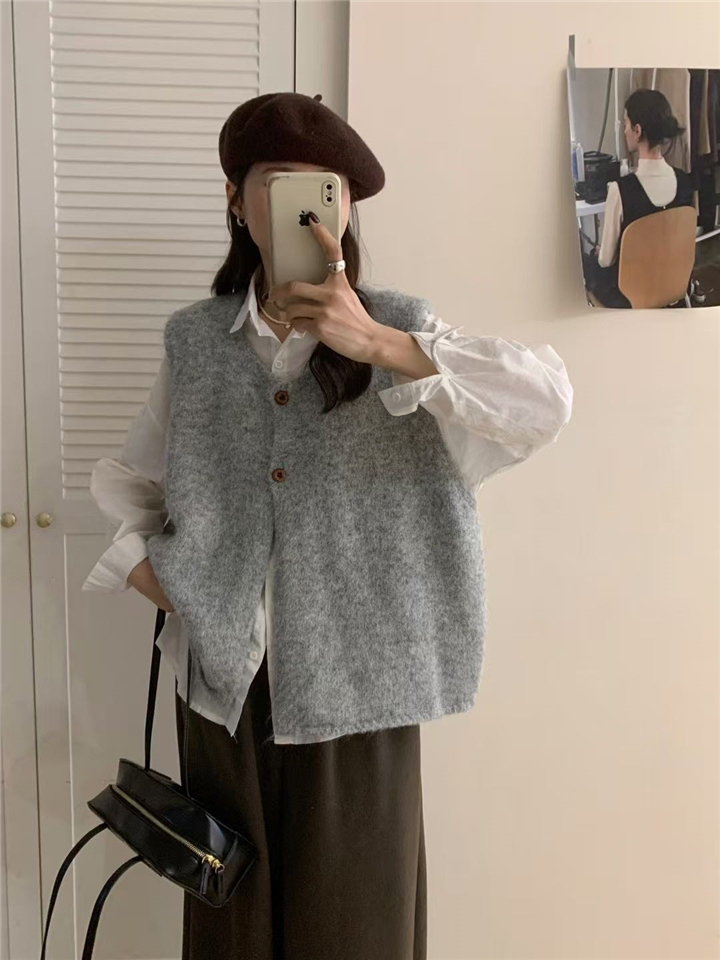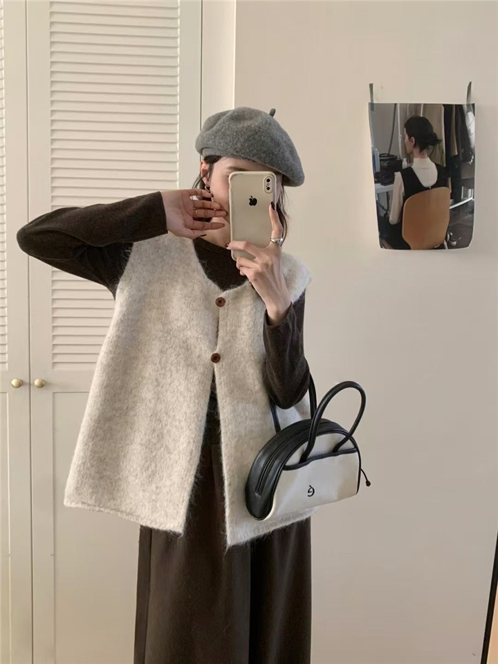 빈티지 다목적 봉제 조끼 여성 조끼 한국 간단한 소프트 왁스, 8% 울 바나나 루즈 니트