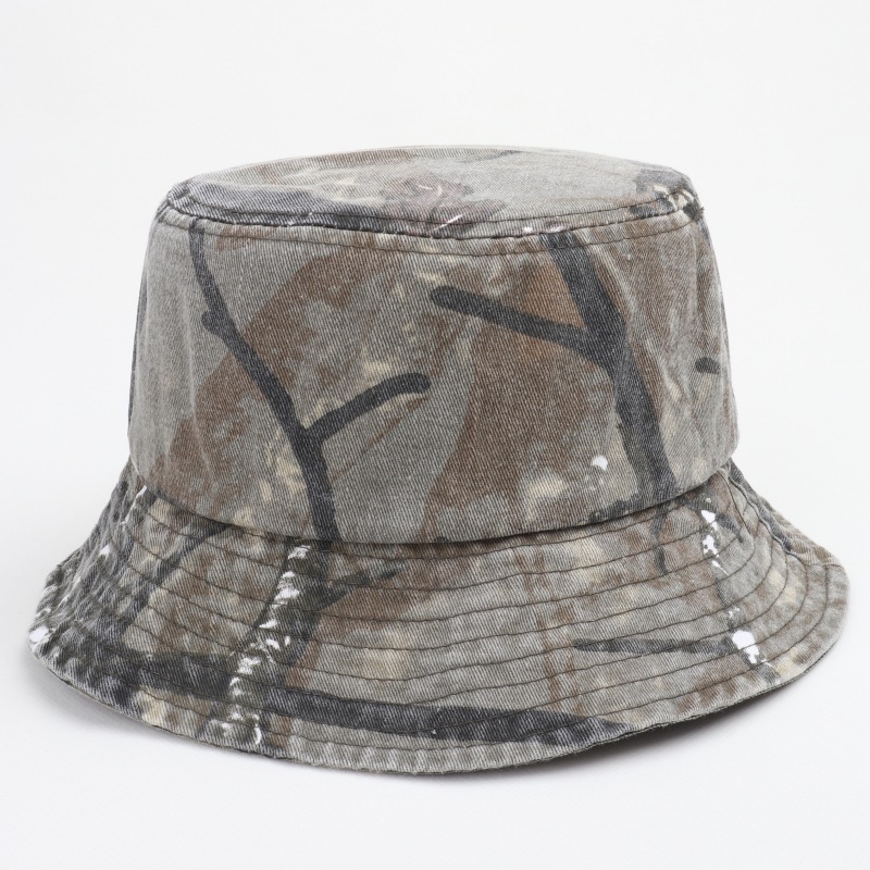 • 워시드 위장 세면대 모자 - 검정색과 회색 위장