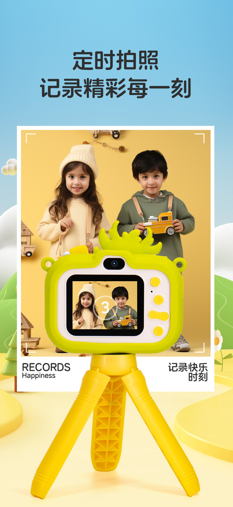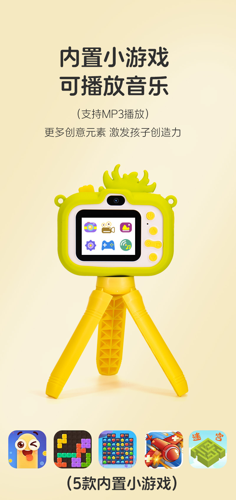 • Y7 공룡 노란색-HD 듀얼 카메라(스탠드 포함)
