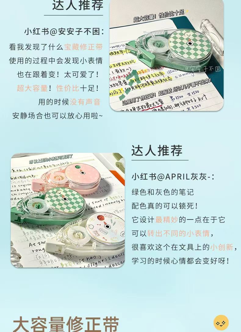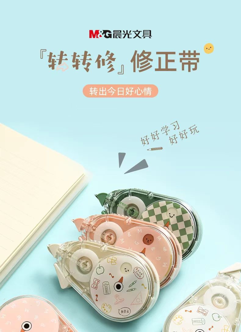 Chenguang 76602 잘 공부하세요 플립오버 교정 테이프 30m 초등학생을 위한 조용하고 부드러운 교정 테이프 특수 교정 테이프