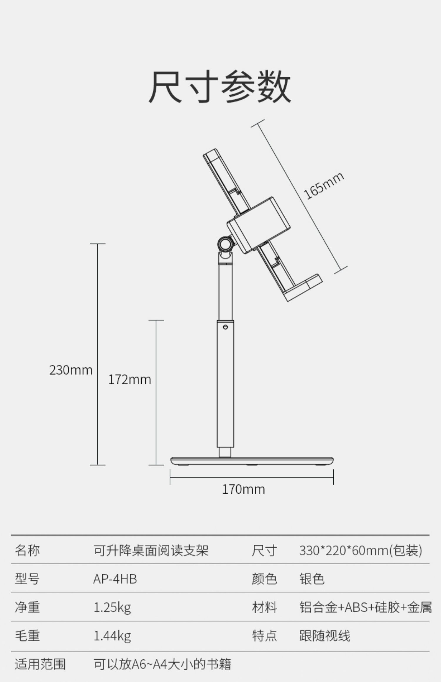 • 책/휴대폰/태블릿을 보관할 수 있는 데스크탑 리프팅 독서대