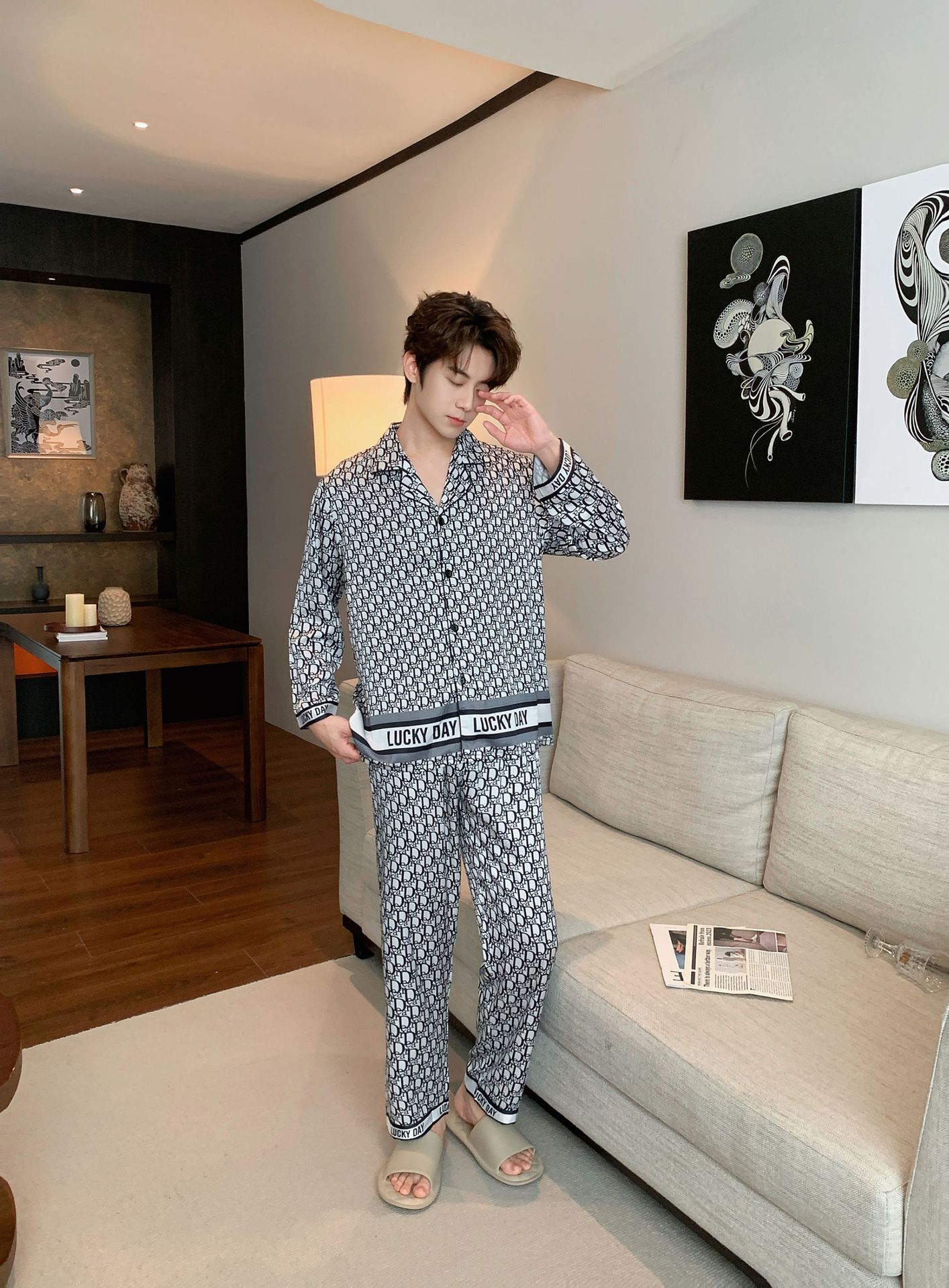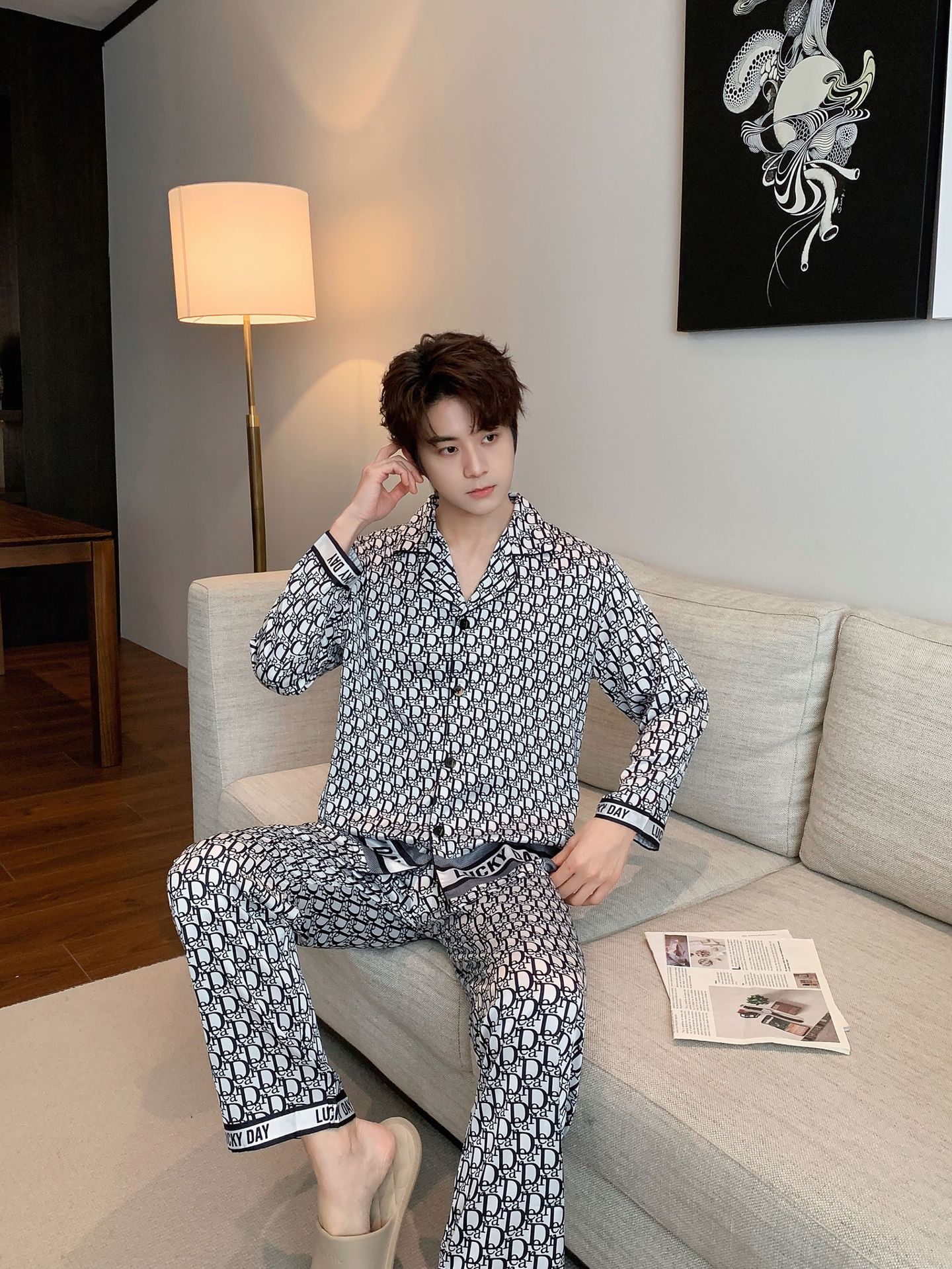 커플 잠옷 남자의 느슨한 플러스 사이즈 통기성 홈 옷 여성의 새로운 유럽과 미국 스타일 여성의 얼음과 눈 실크 캐주얼 홈 옷스토어 가기