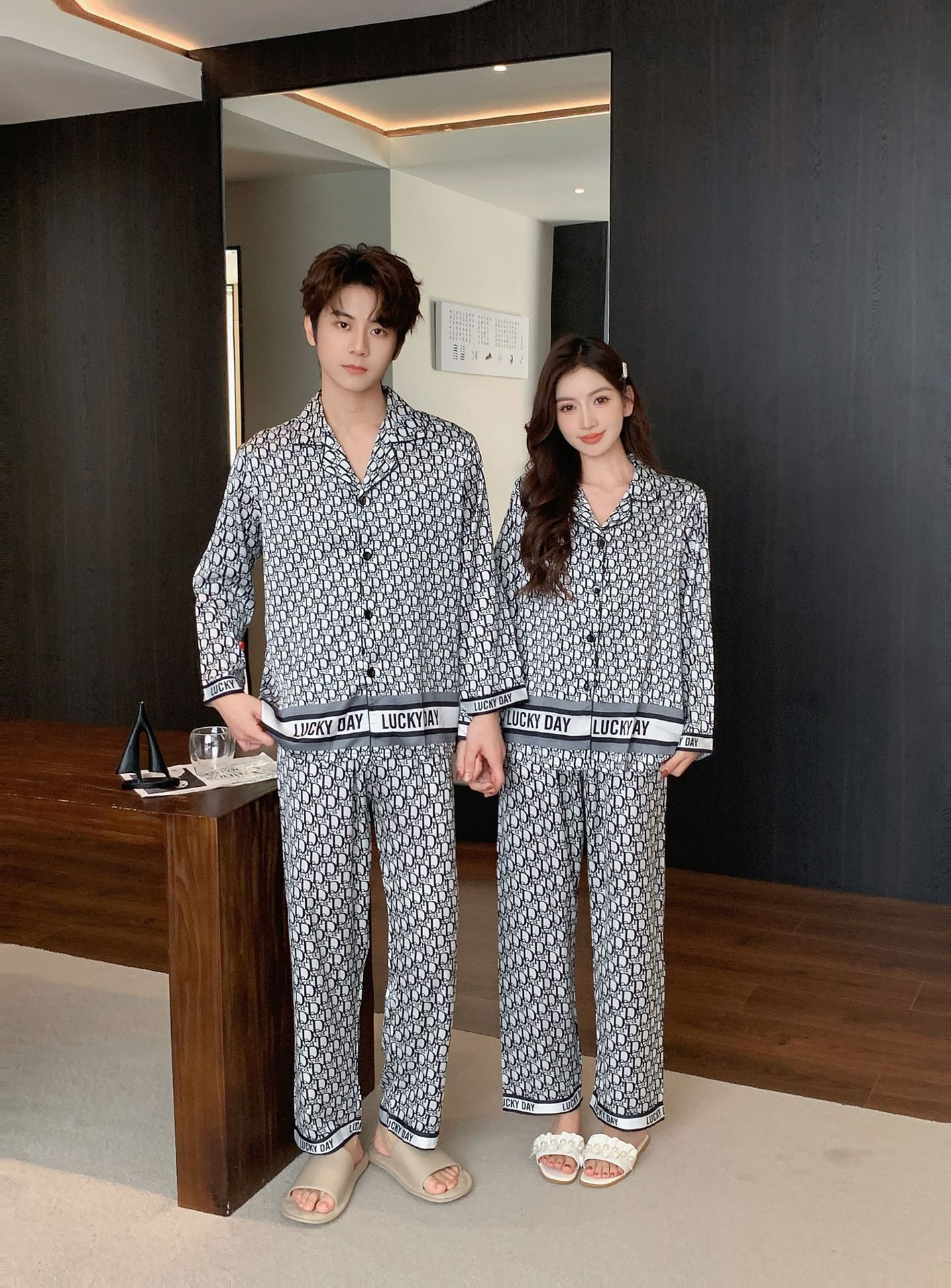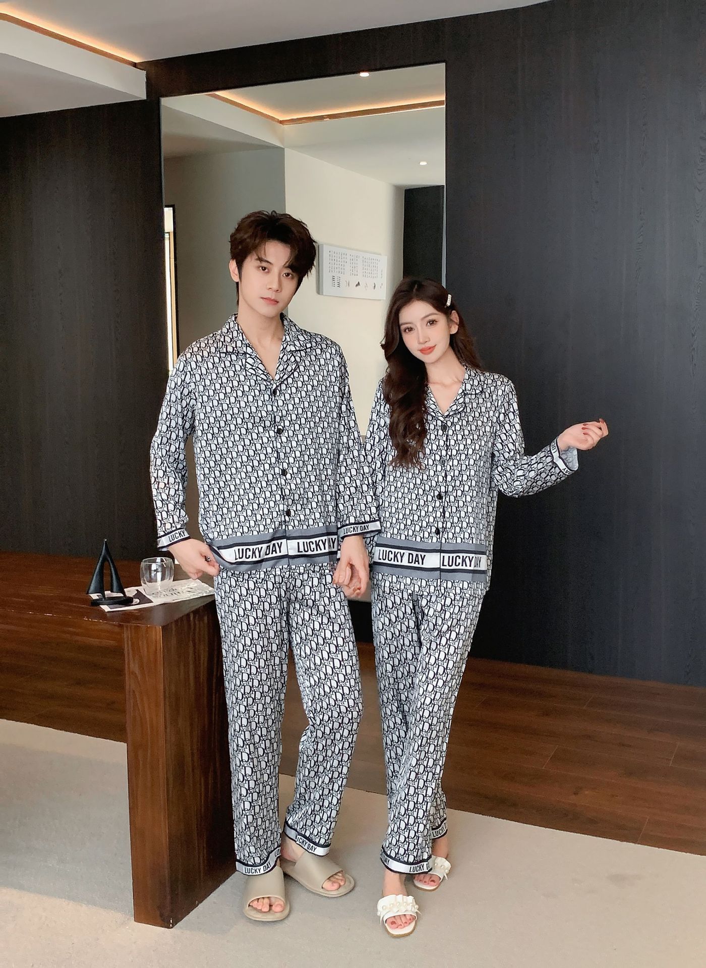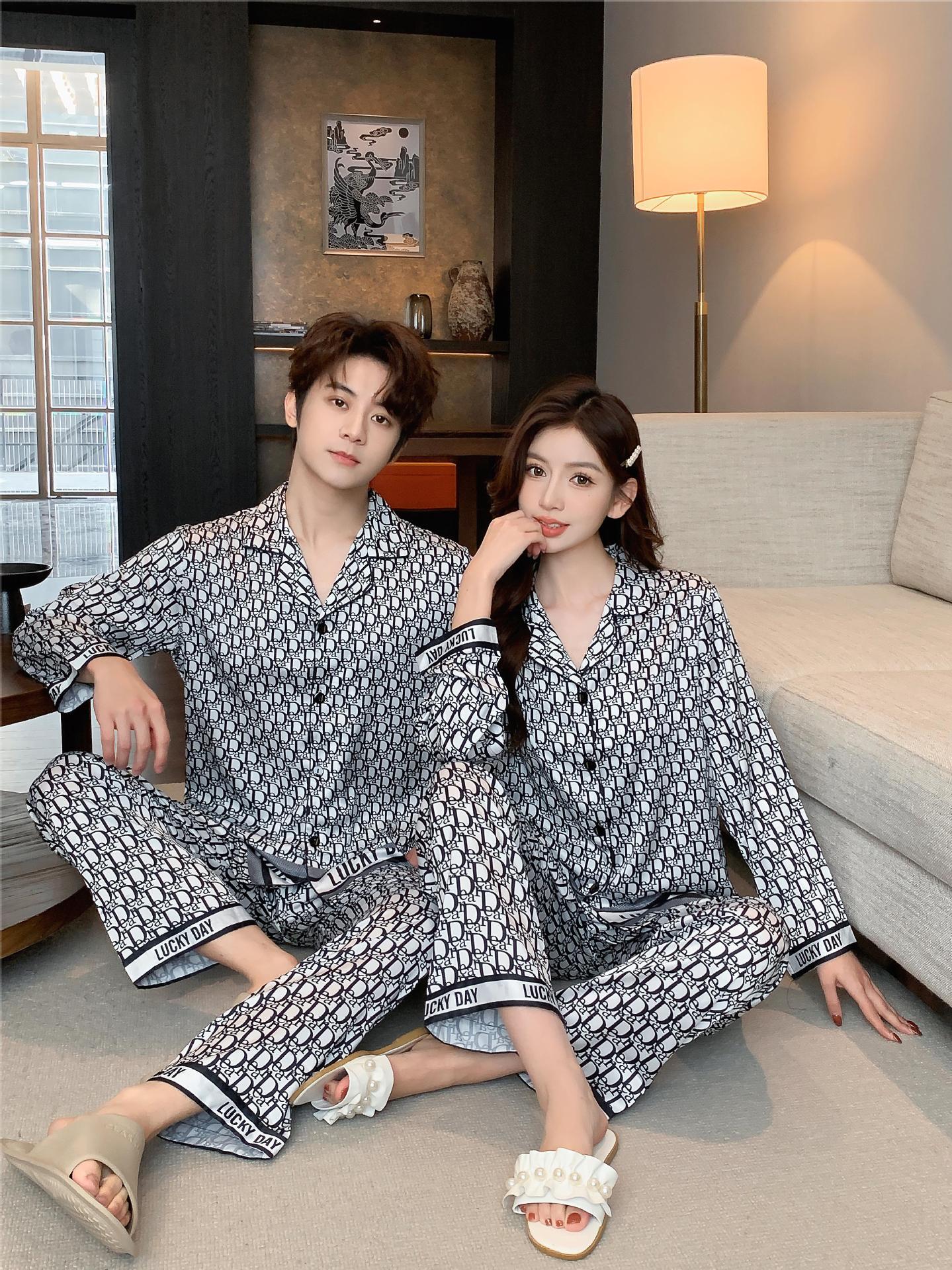 커플 잠옷 남자의 느슨한 플러스 사이즈 통기성 홈 옷 여성의 새로운 유럽과 미국 스타일 여성의 얼음과 눈 실크 캐주얼 홈 옷