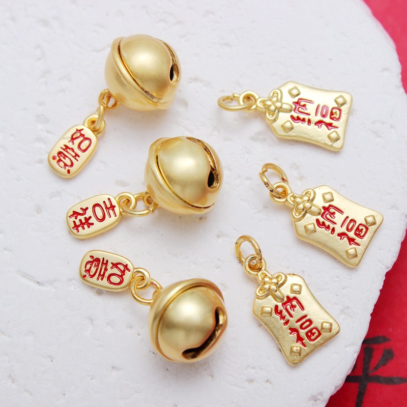 古法金保色哑金铃铛如意吉祥/滴油纳福吊牌diy手链项链吊坠饰品