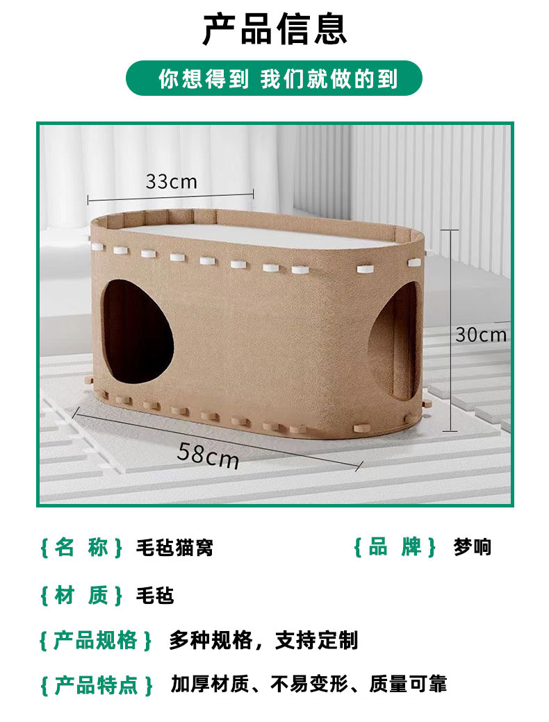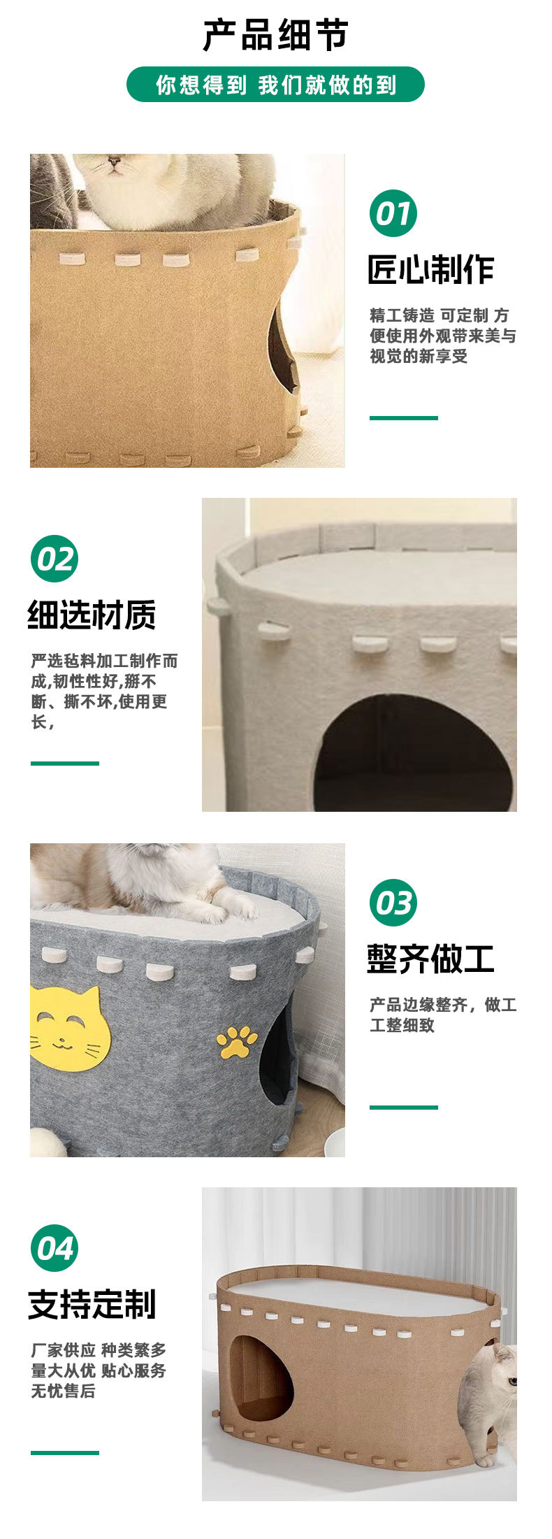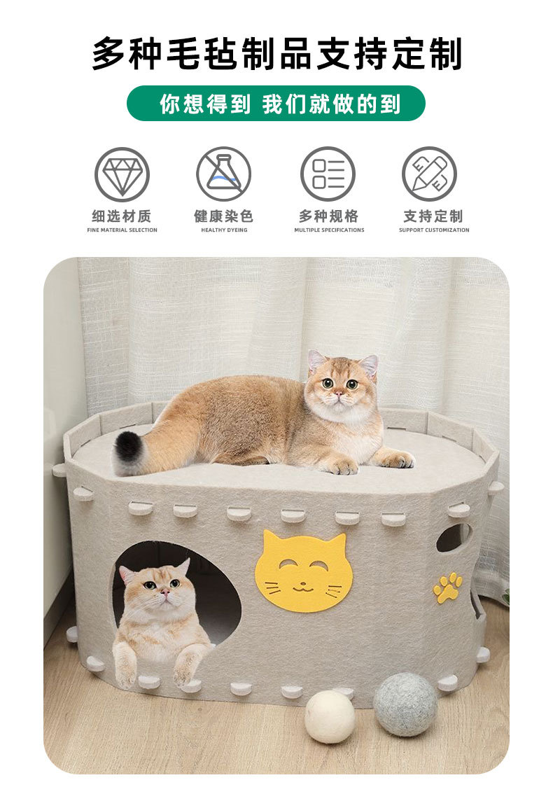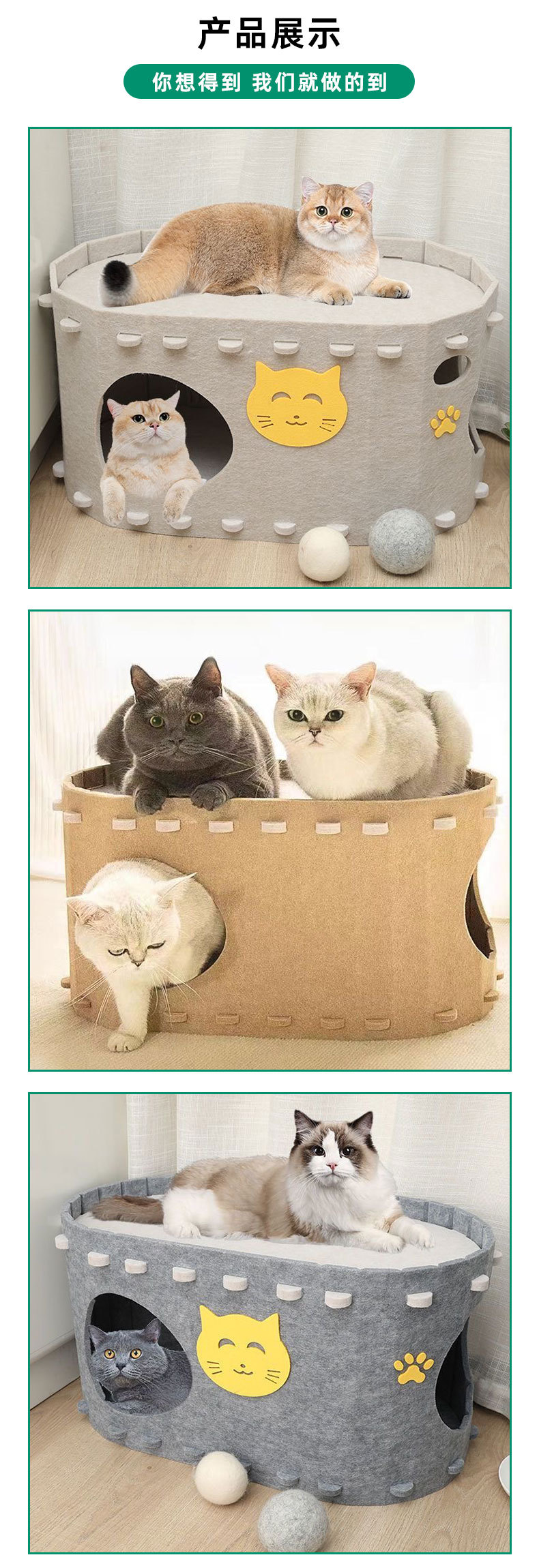 국경 간 애완 동물 둥지 고양이 파라다이스 내마모성 및 스크랩 방지 이중층 대형 공간 펠트 고양이 둥지