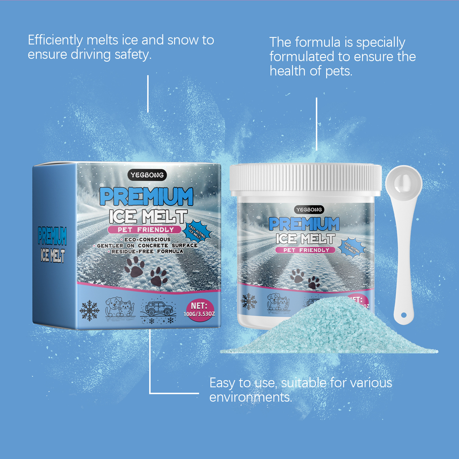 YEGBONG 애완 동물 얼음 녹는 에이전트 고양이와 개 애완 동물 얼음 녹는 눈 녹는 부드러운 발 패드 미끄럼 방지 애완 동물 겨울 보호자