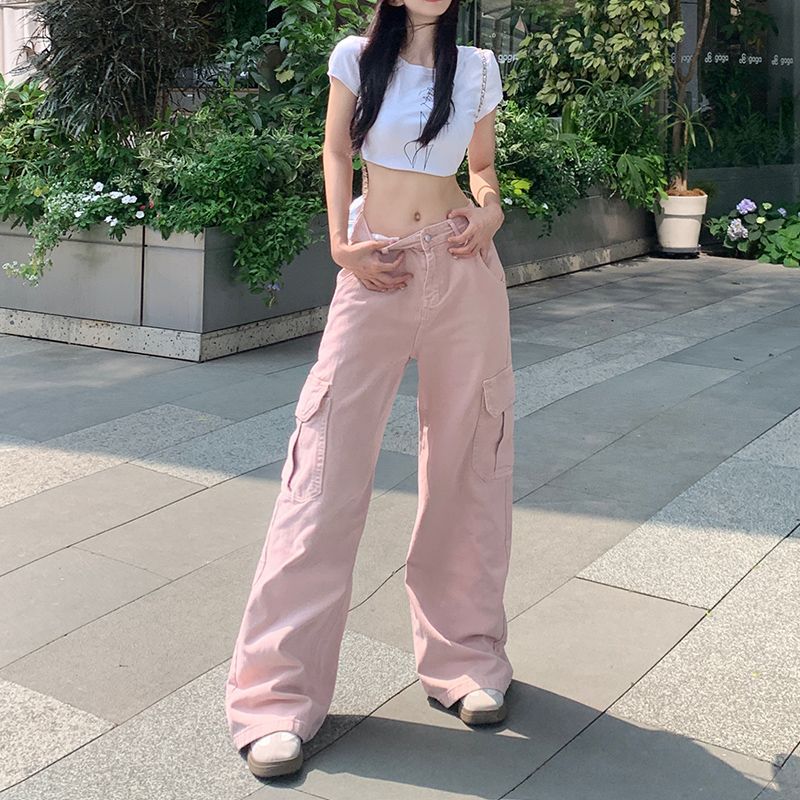 2025 하이 엔드 올 매치 디자인 툴링 청바지 더티핑크 하이 웨이스트 여성용 배 모양의 캐주얼 와이드 레그 바지스토어 가기