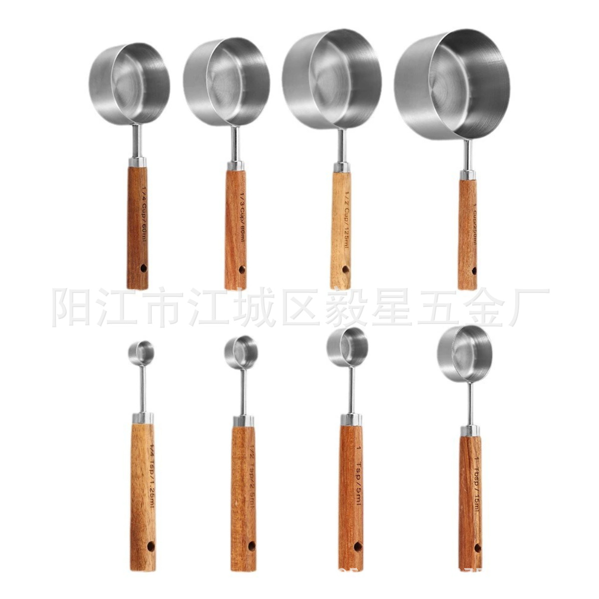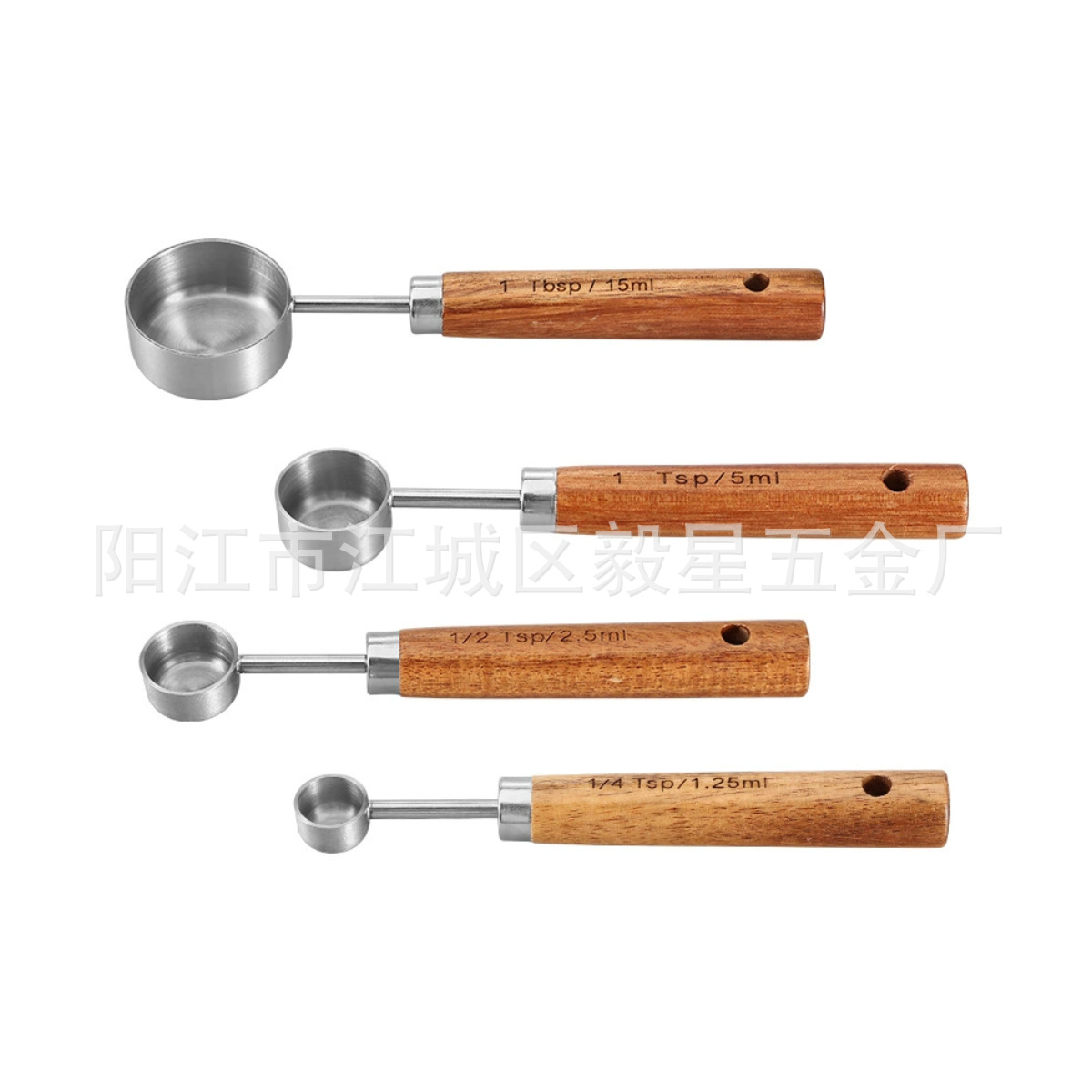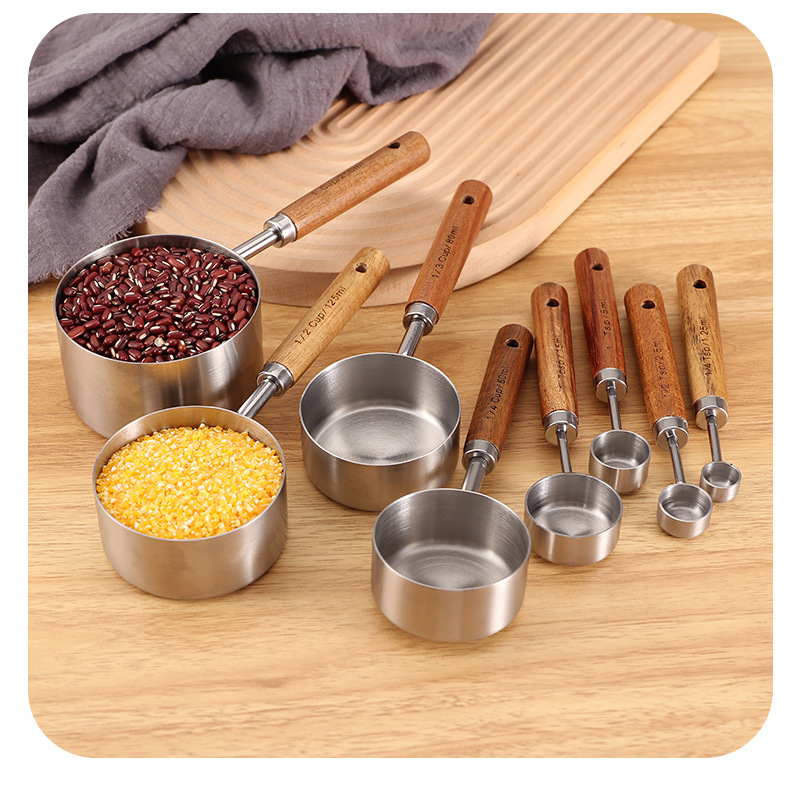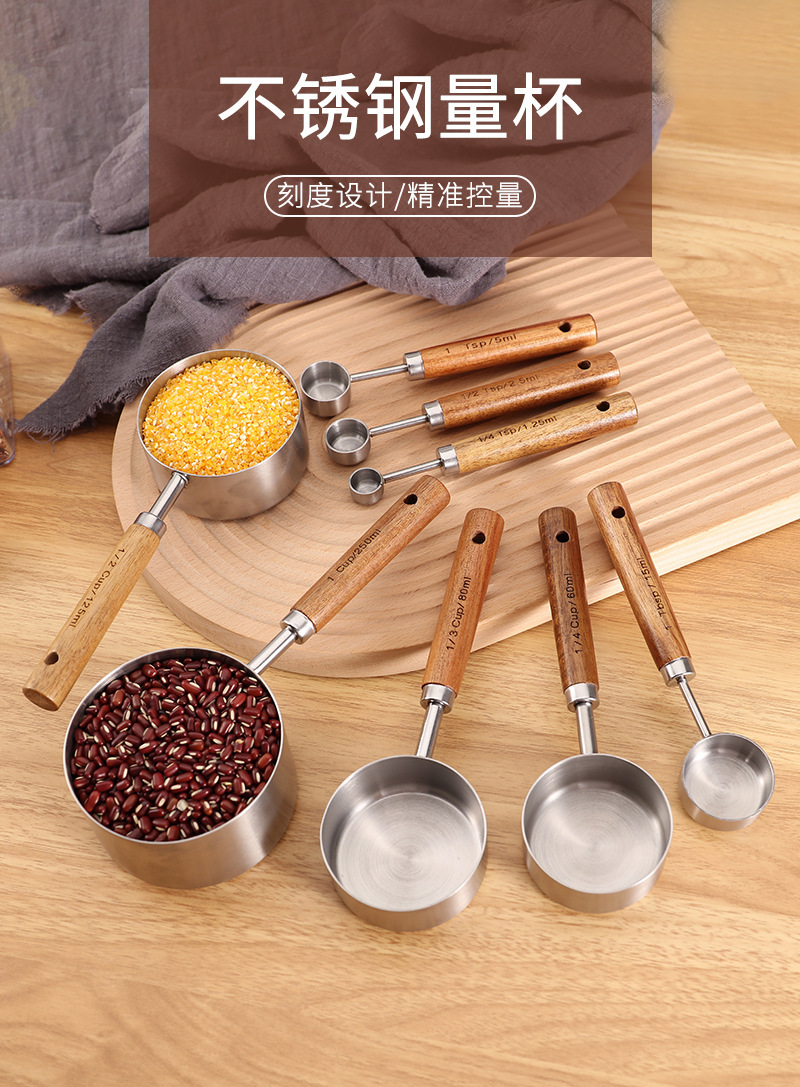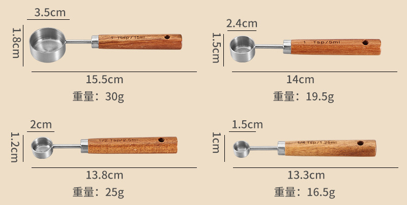 나무 손잡이 스테인리스 커피 계량스푼, 아카시아 나무 베이킹 스푼 18종 세트, 주방 도구 베이킹