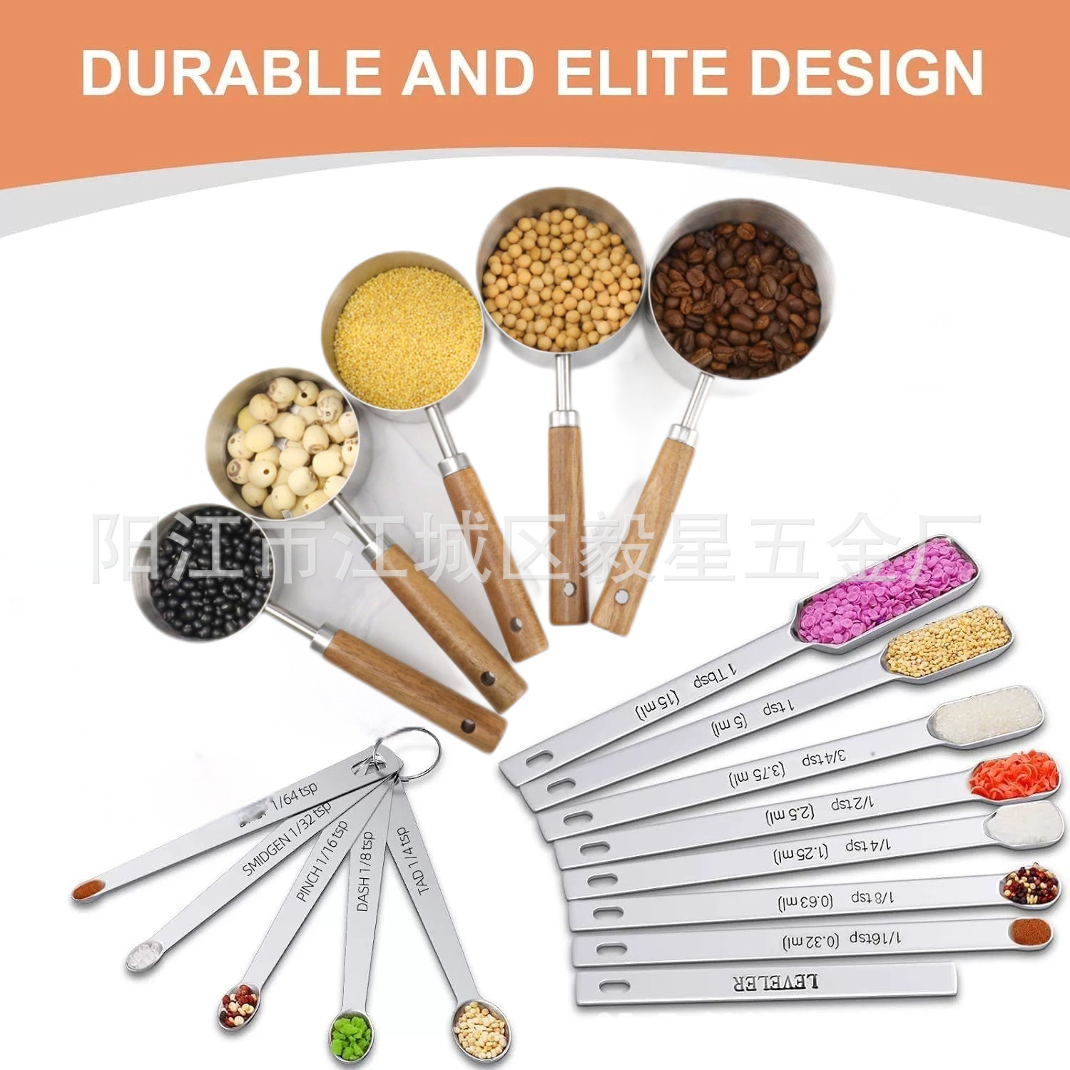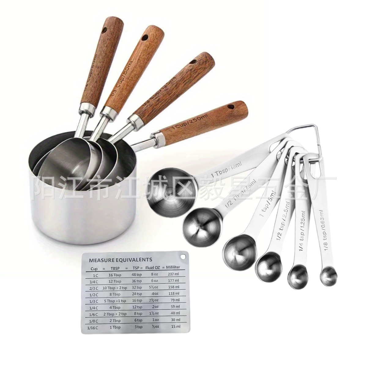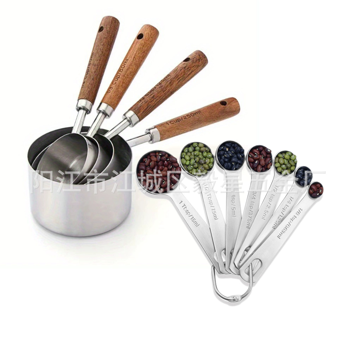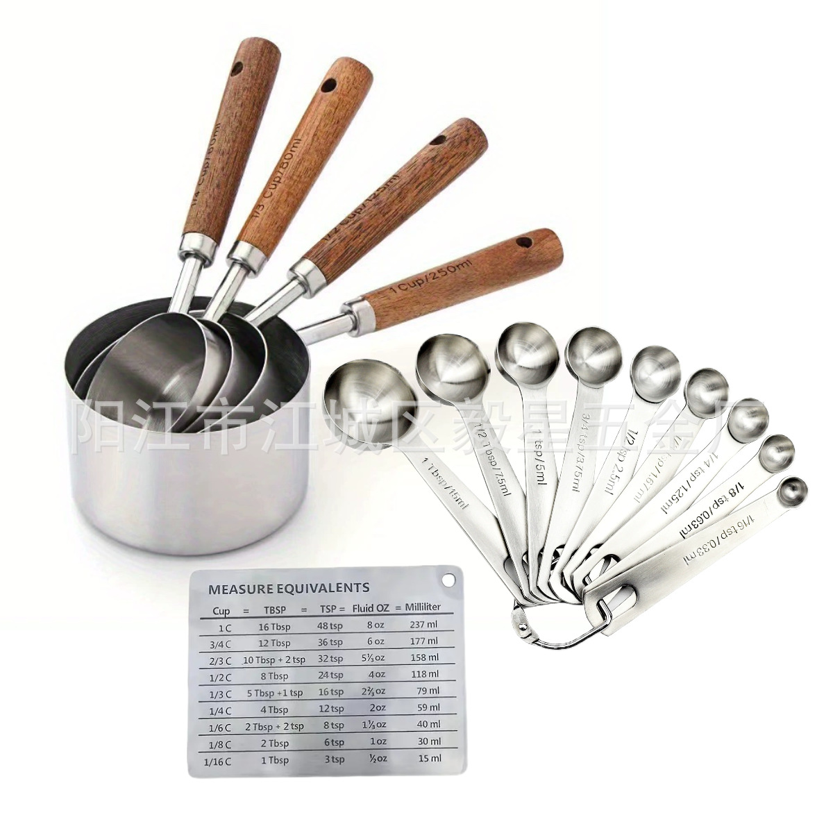 나무 손잡이 스테인리스 커피 계량스푼, 아카시아 나무 베이킹 스푼 18종 세트, 주방 도구 베이킹