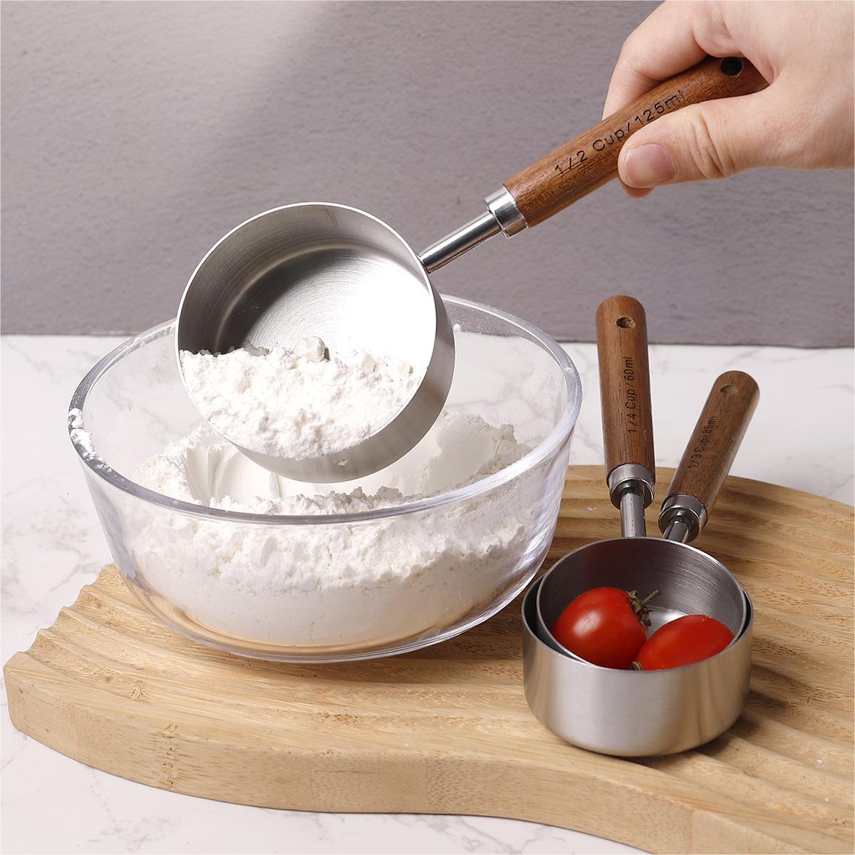 나무 손잡이 스테인리스 커피 계량스푼, 아카시아 나무 베이킹 스푼 18종 세트, 주방 도구 베이킹스토어 가기