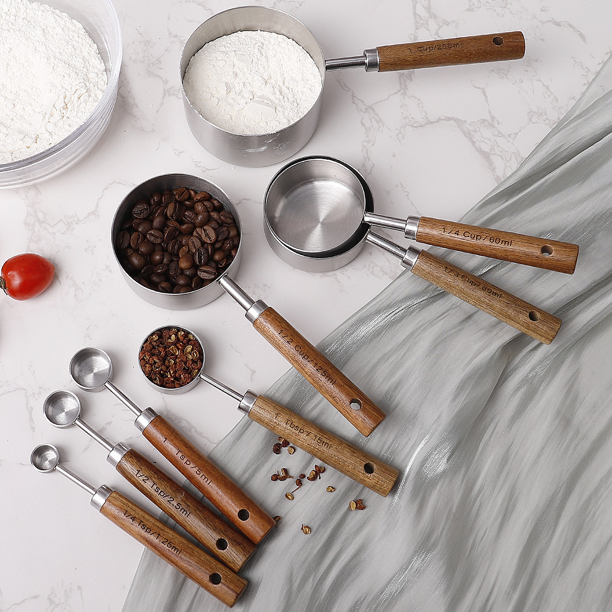 • 아카시아나무 계량컵과 스푼 8종 세트