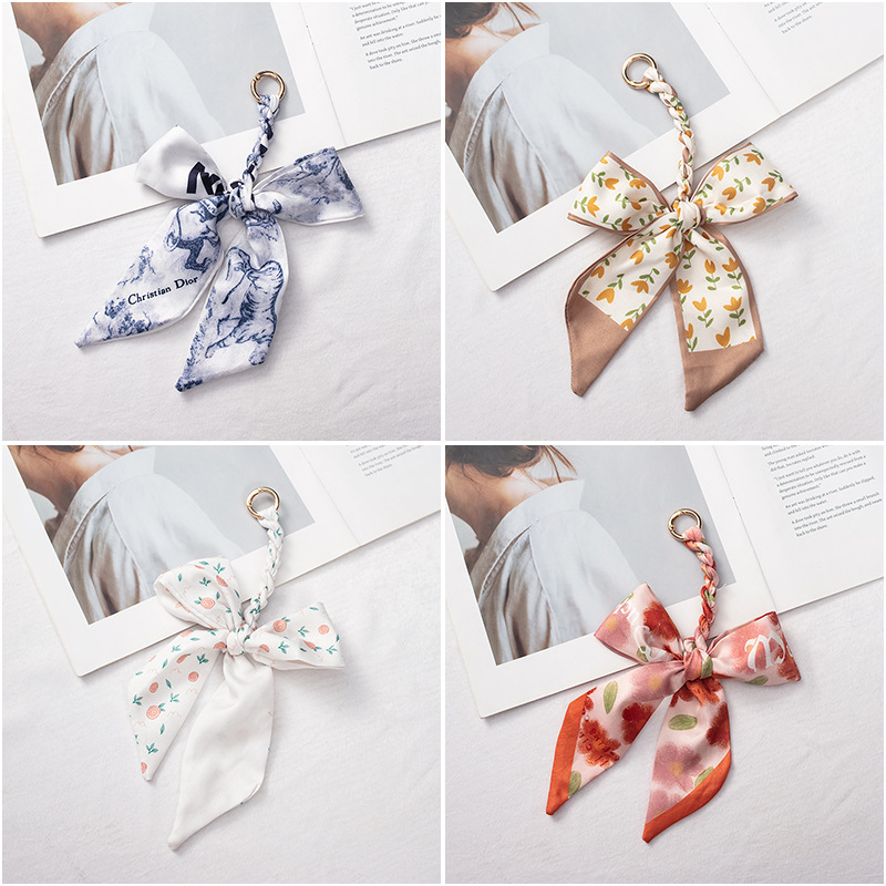 • 다용도 실크 스카프 땋은 작은 리본 펜던트
