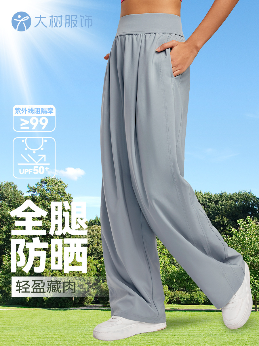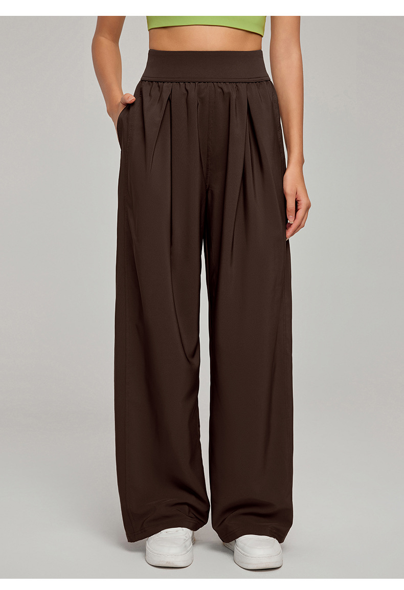여성을위한 새로운 느슨한 캐주얼 스포츠 바지 여름 높은 허리 슬림 요가 바지 통기성 드레이프 스트레이트 포켓 와이드 레그 스웨트 팬츠