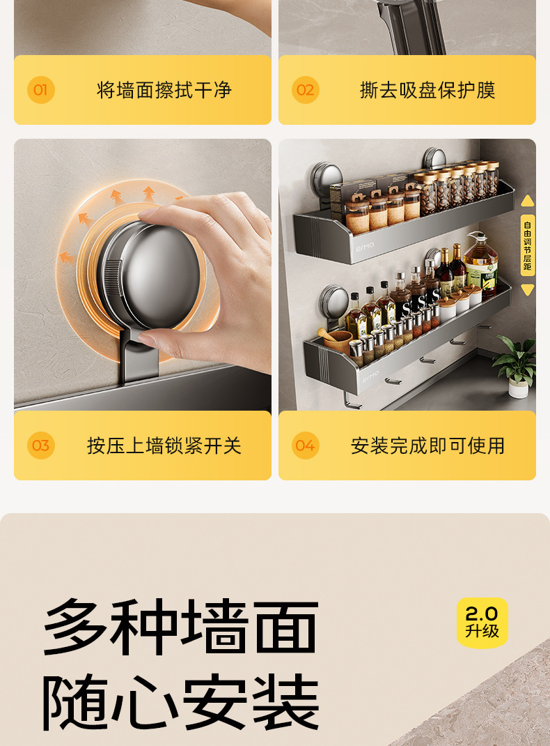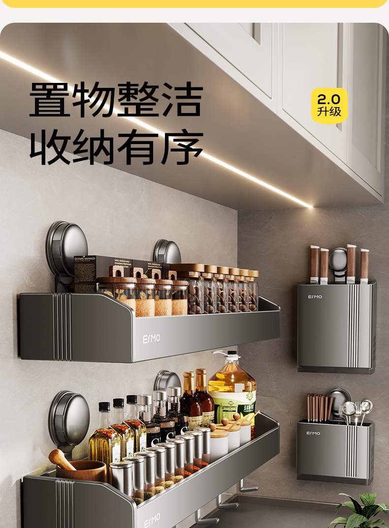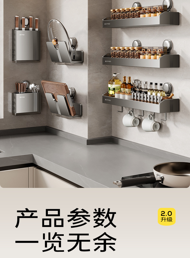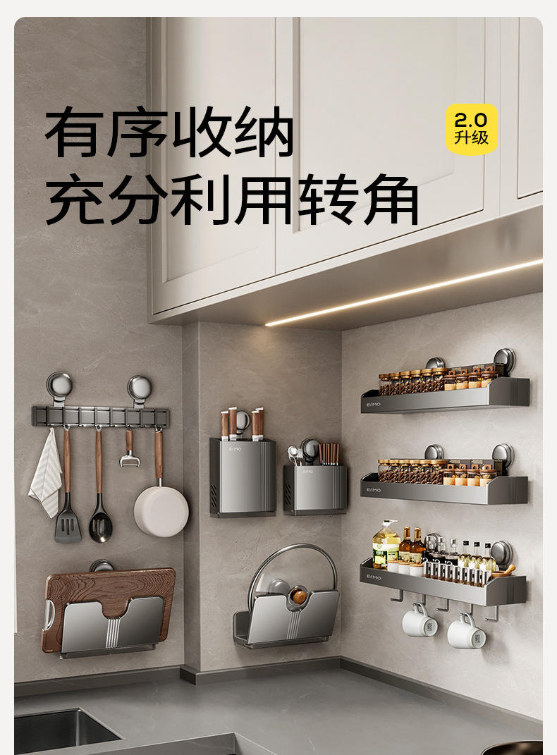 주방 석션 컵 스토리지 랙 구멍이 뚫린 벽걸이 나이프 랙 조미료 Daquan 가정용 다기능 스토리지 랙스토어 가기