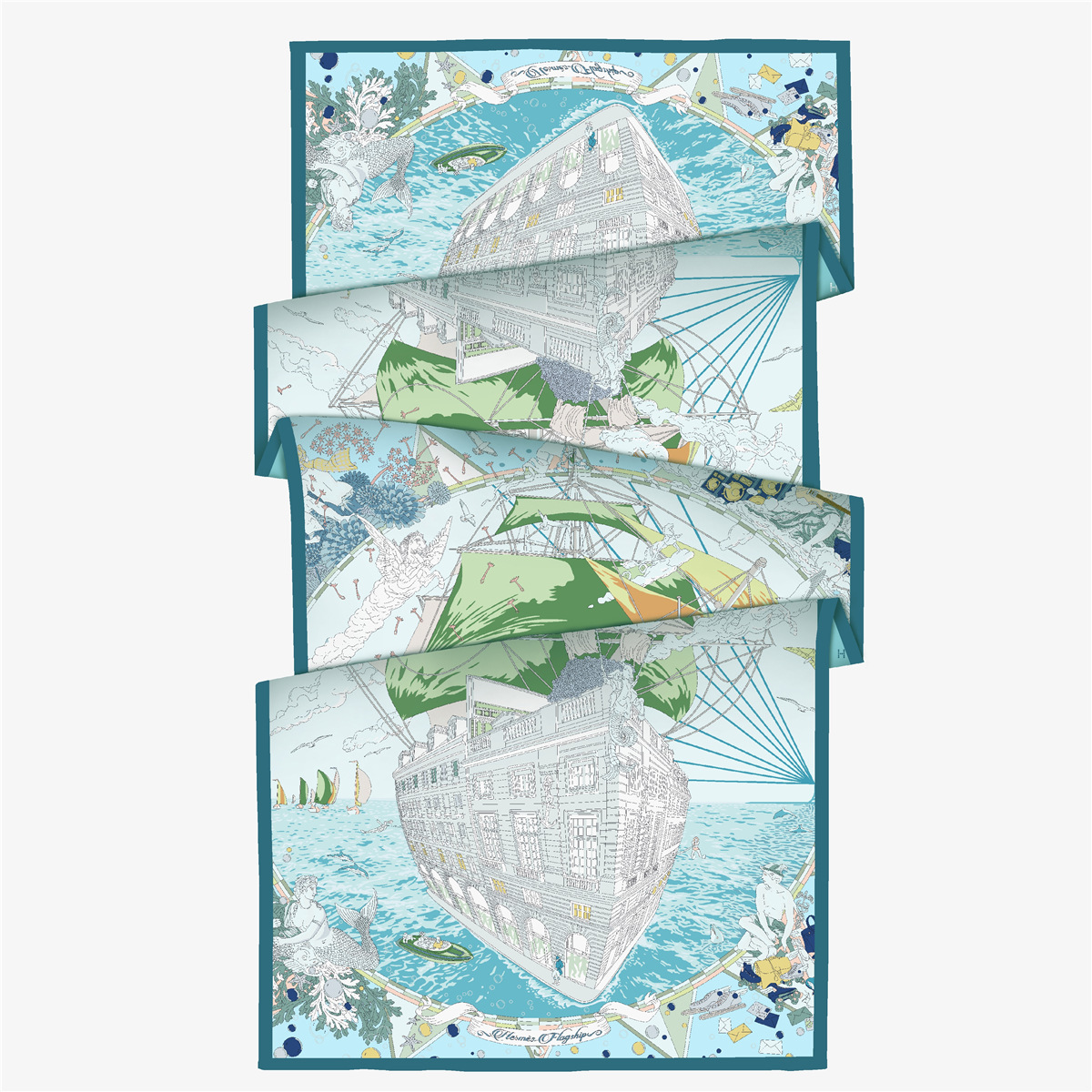 봄 새로운 한국 스타일 레트로 항해 여성 새로운 실크 새틴 더블 레이어 긴 스카프 야외 숄 스카프 스카프 스카프