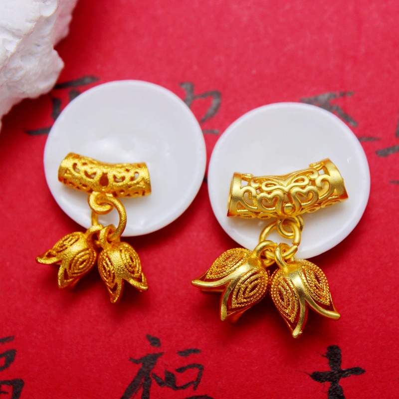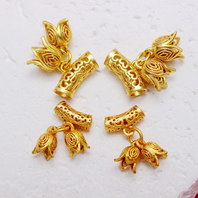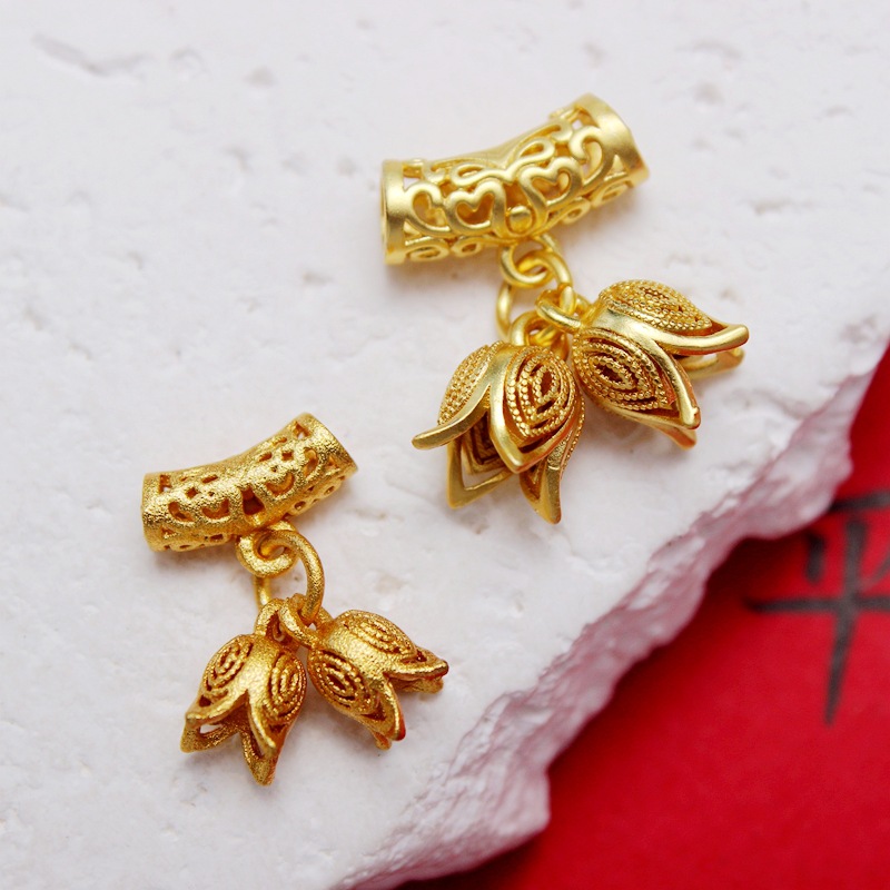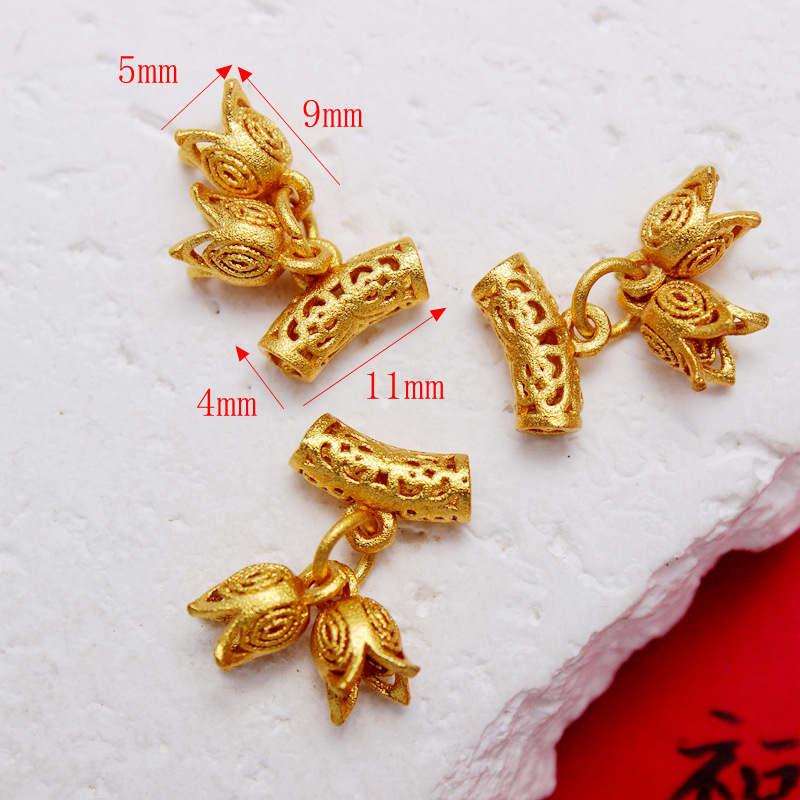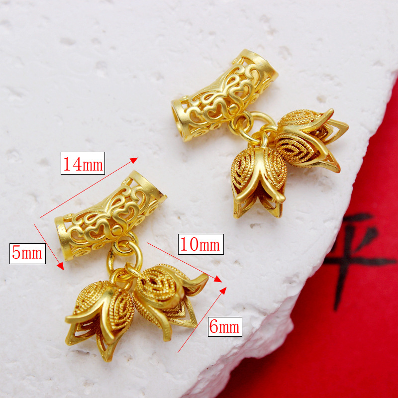 18K包金保色哑金镂空桶珠带两花苞吊坠DIY饰品手链项链手工配件