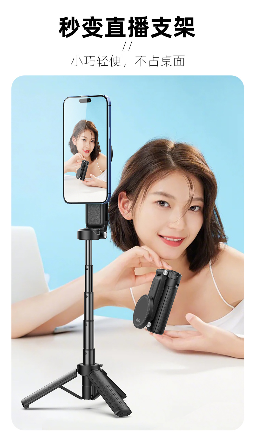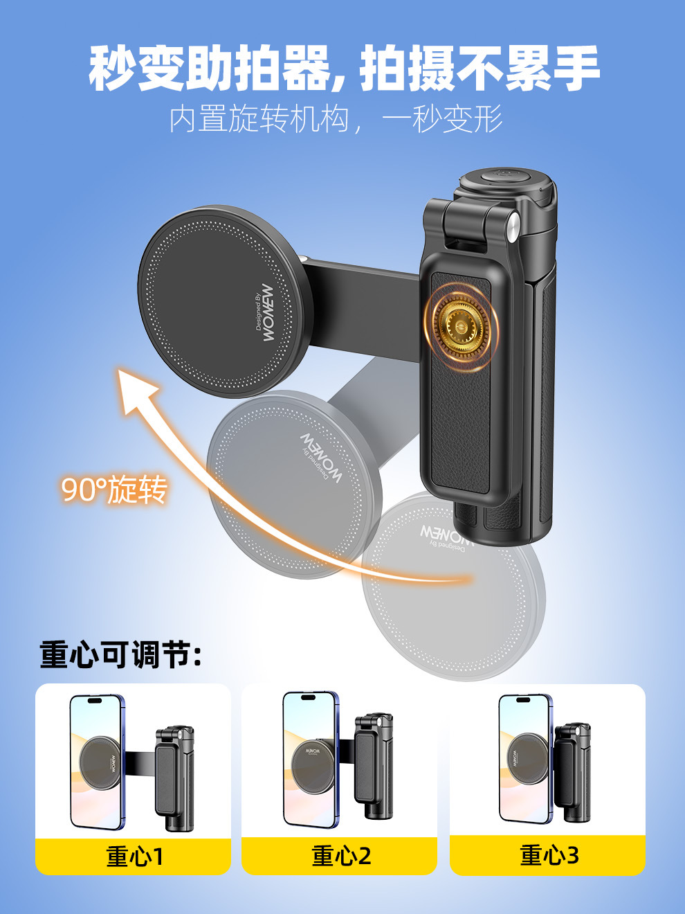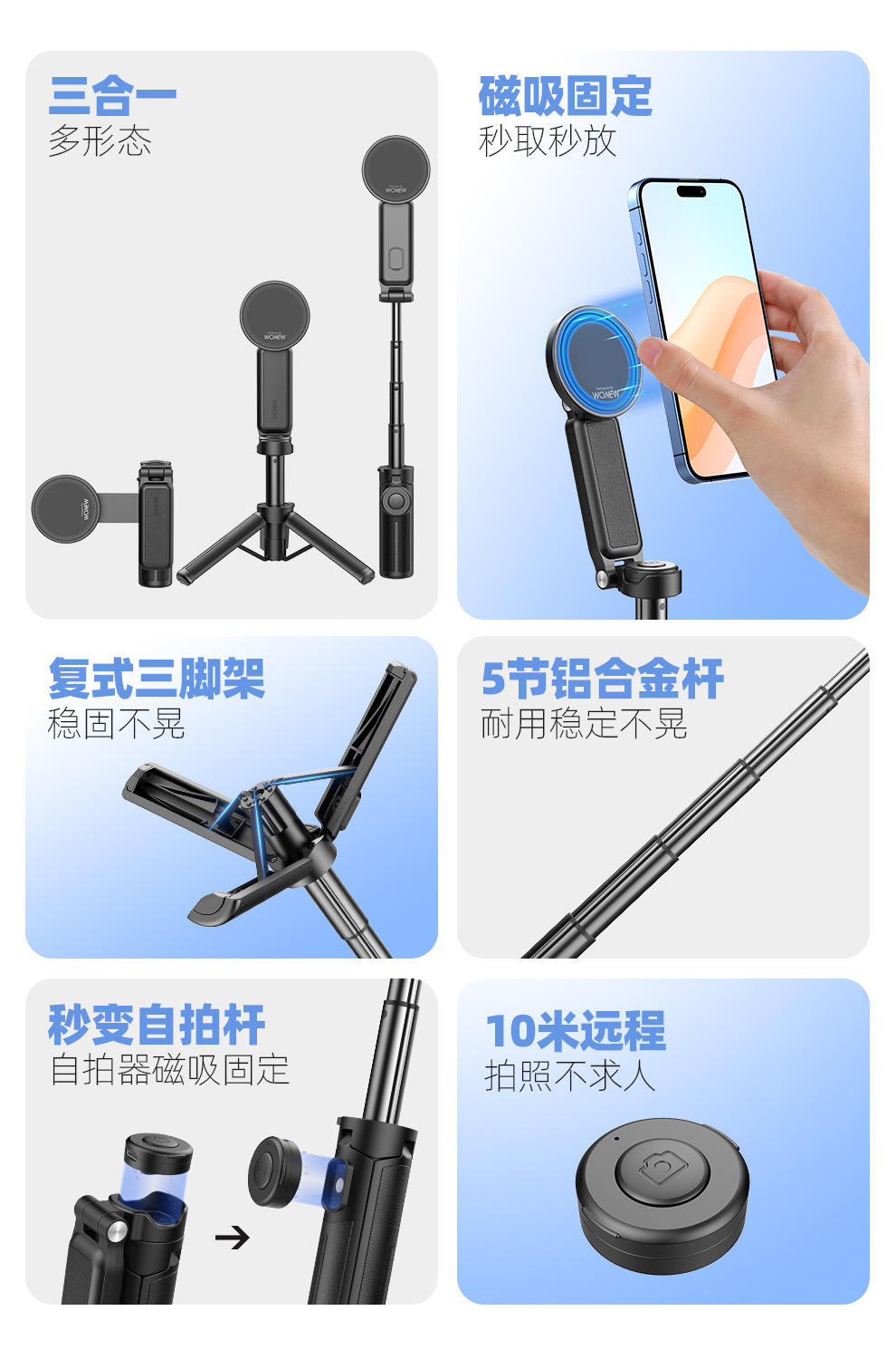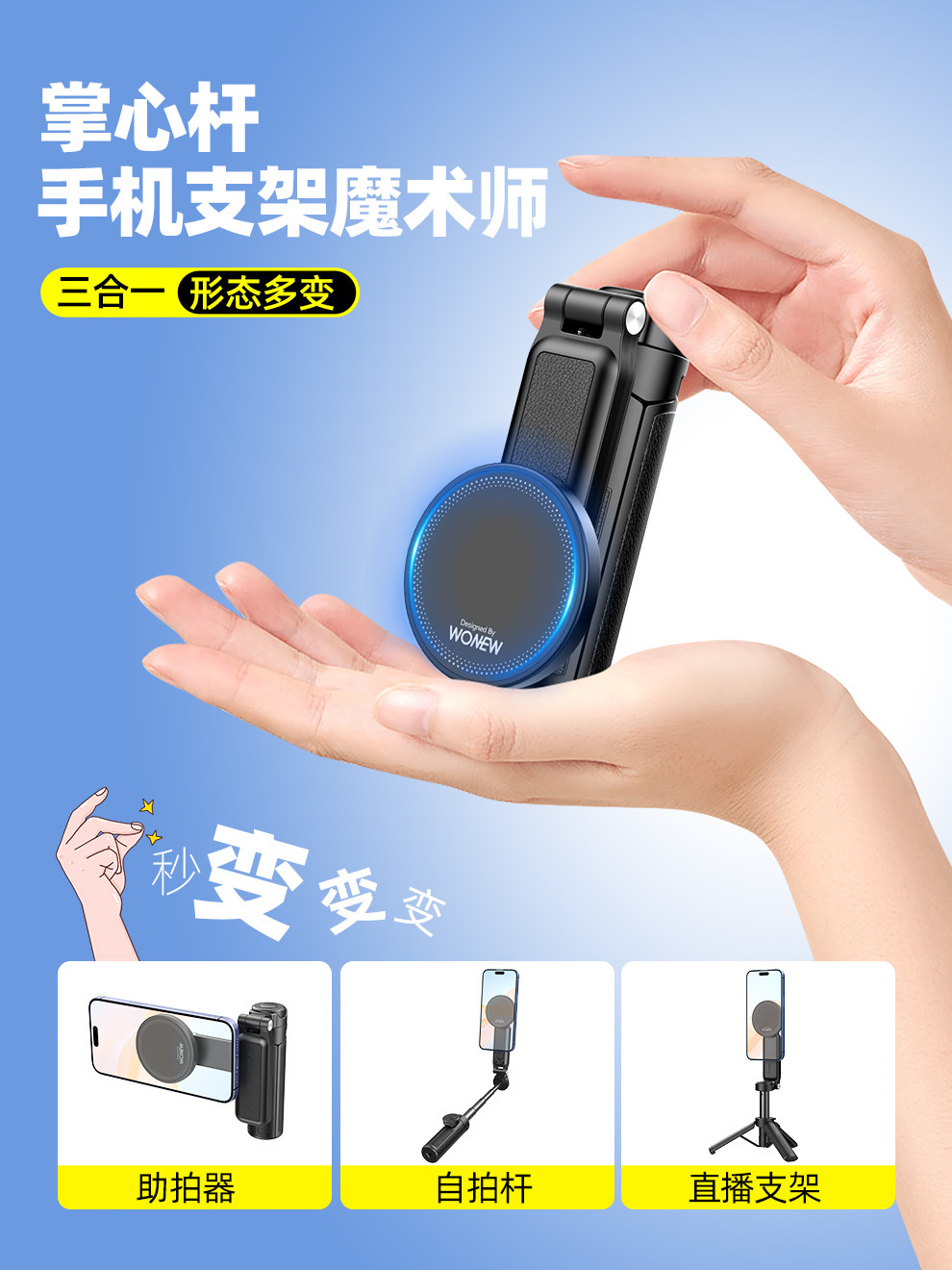 팜 레버 wonew 새로운 미니 셀카 스틱 3 대 1 마그네틱 브래킷 휴대 전화 카메라 어시스턴트