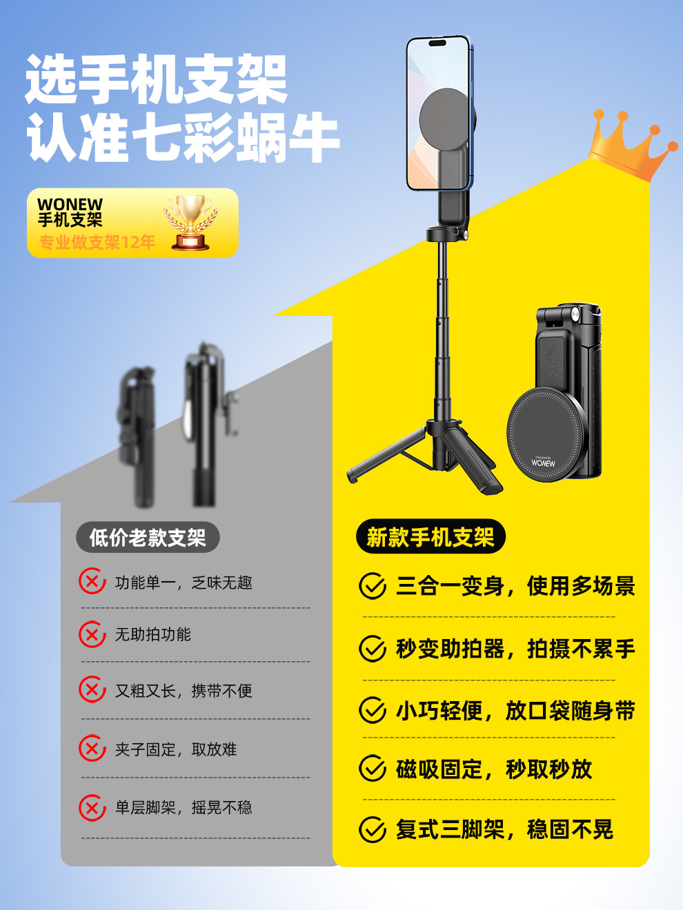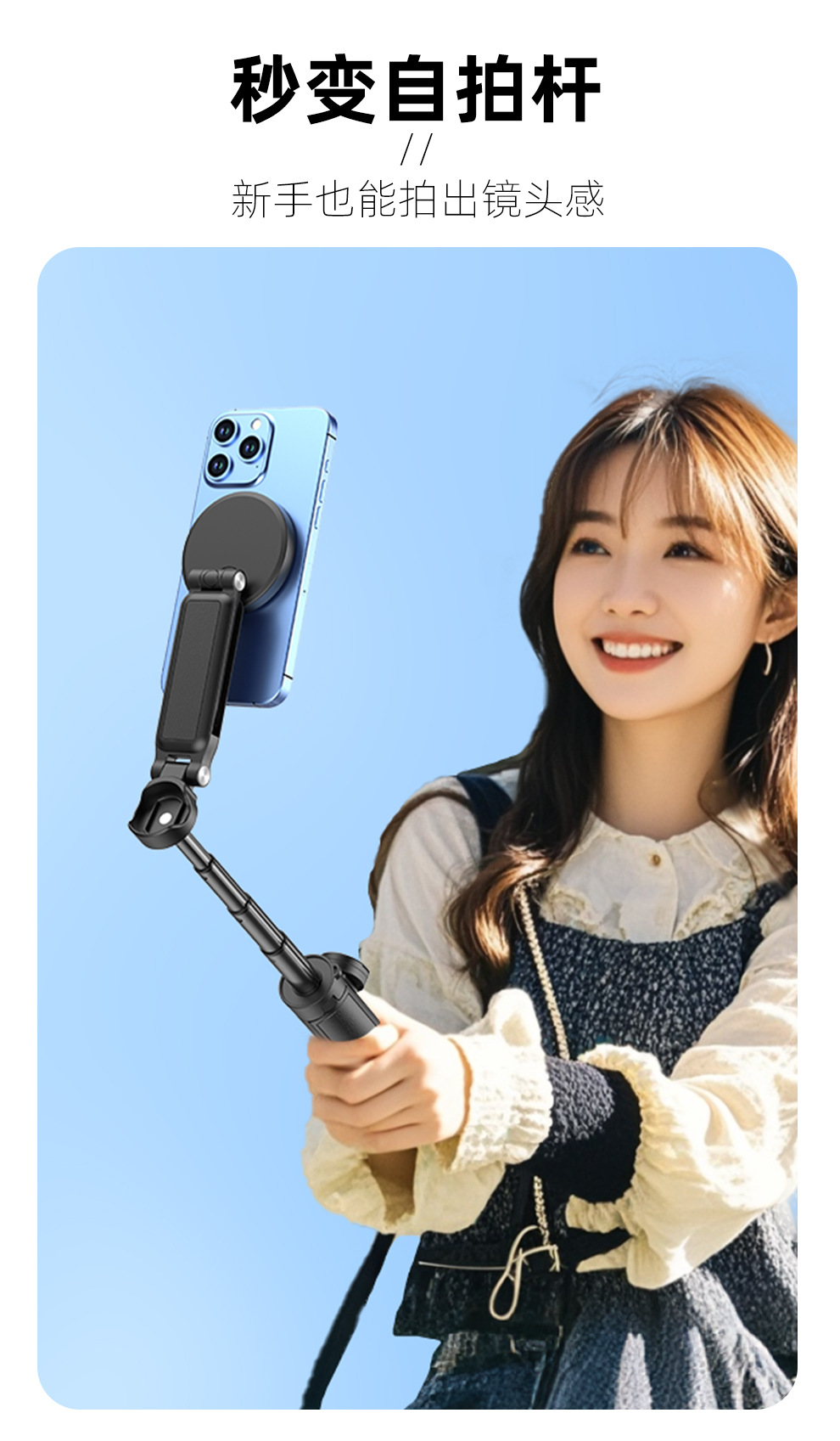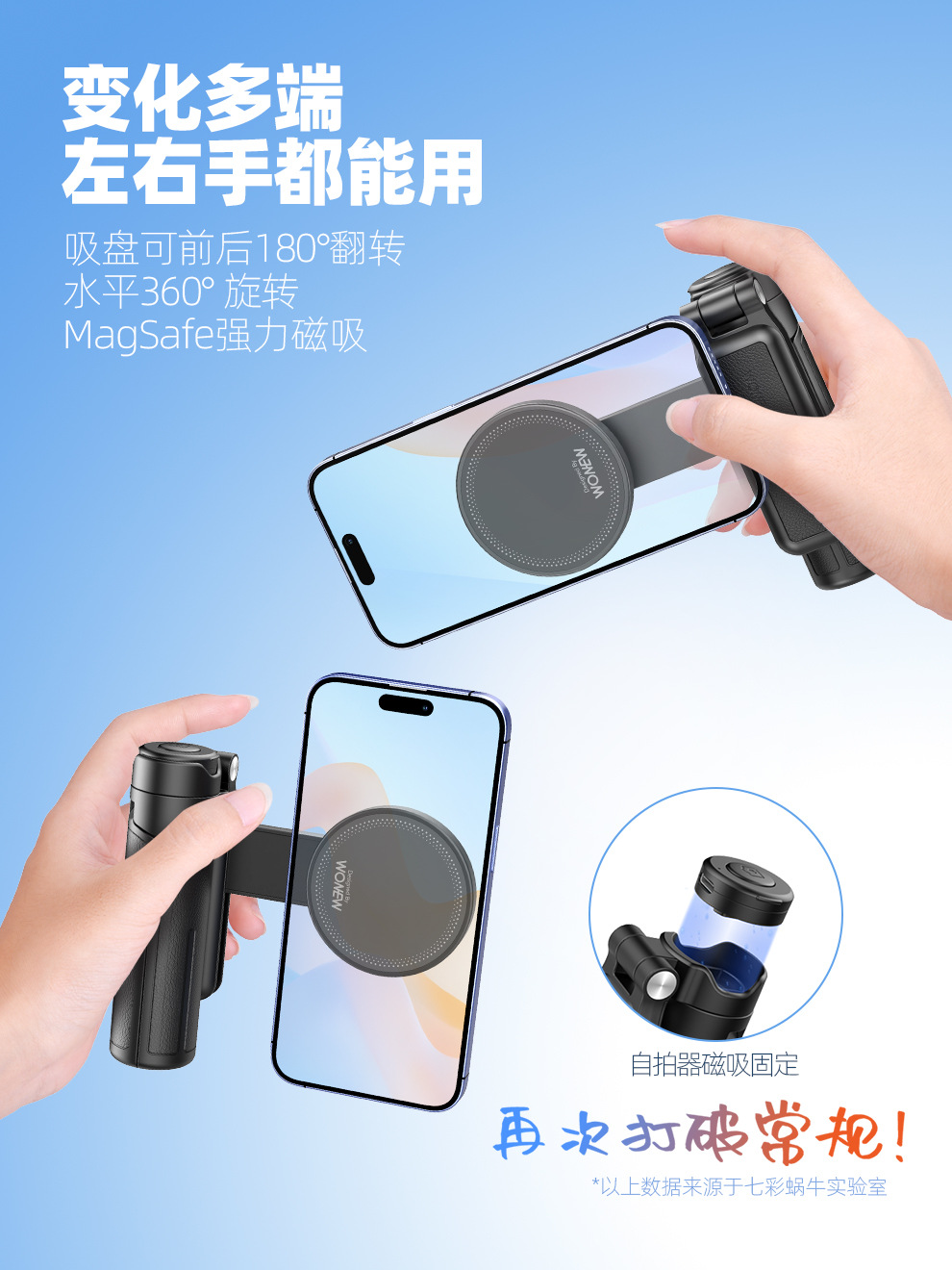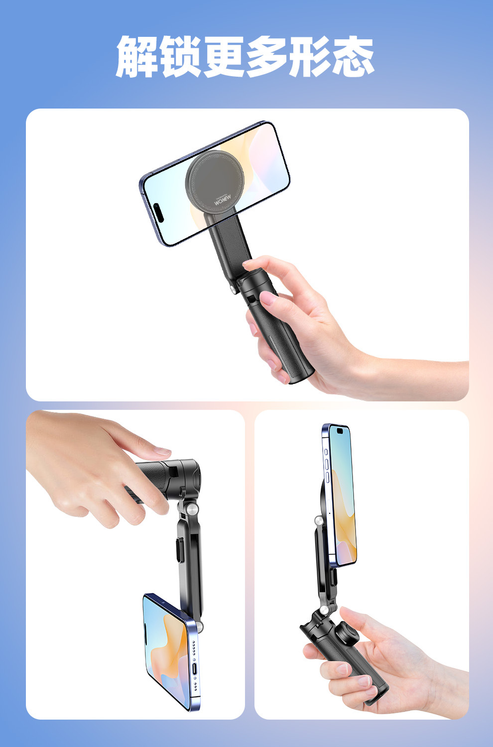 팜 레버 wonew 새로운 미니 셀카 스틱 3 대 1 마그네틱 브래킷 휴대 전화 카메라 어시스턴트