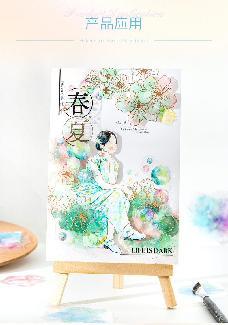케첩 버블 PET 스티커 팬텀 컬러 버블 시리즈 판타지 심미 소재 손 계정 휴대 전화 쉘 DIY 콜라주스토어 가기