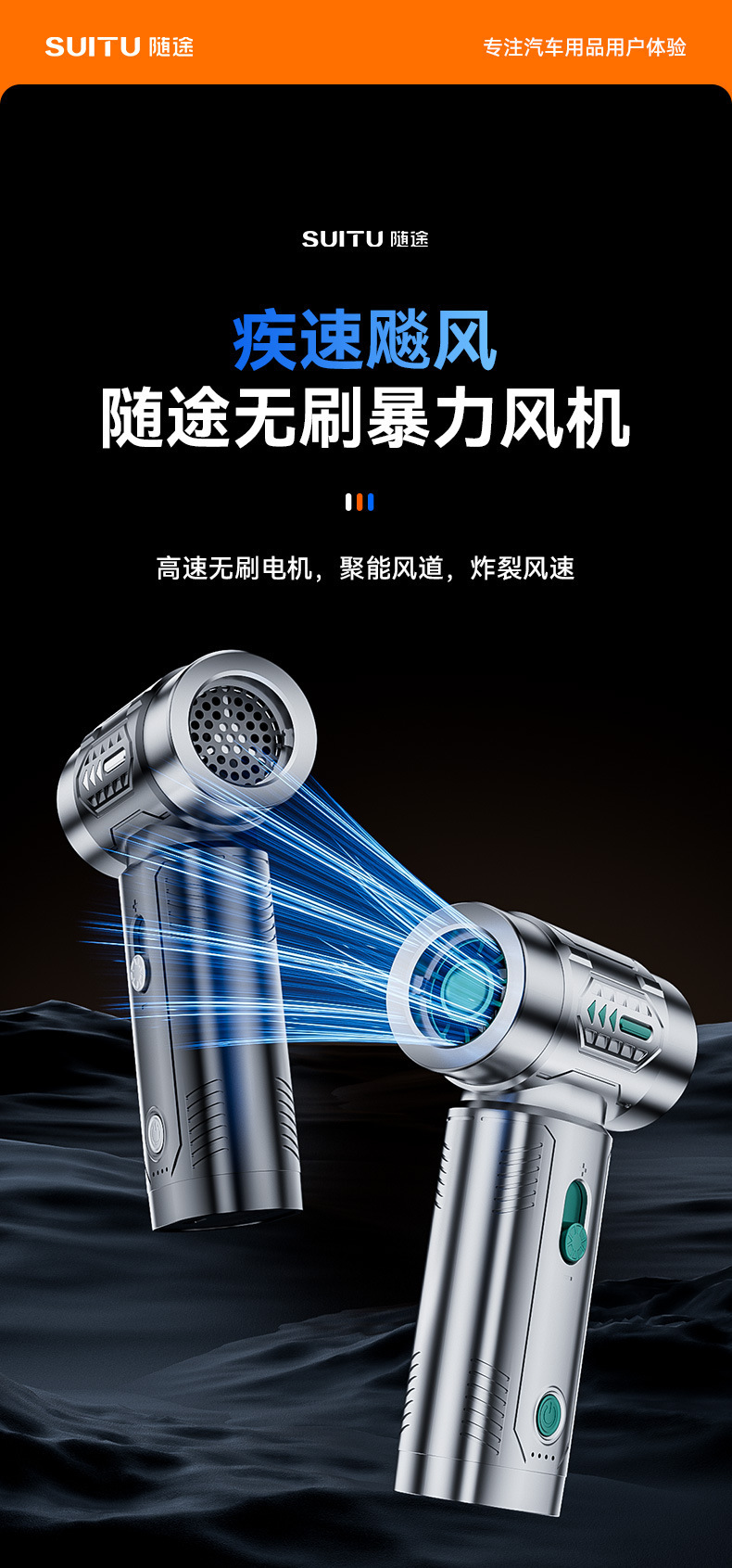 자동차 무선 브러시리스 핸드 헬드 고속 내구성 야외 터보 팬 2 대 1 먼지 흡입 팬스토어 가기