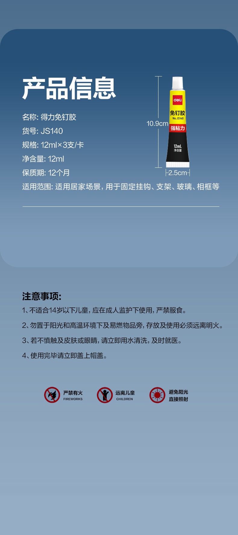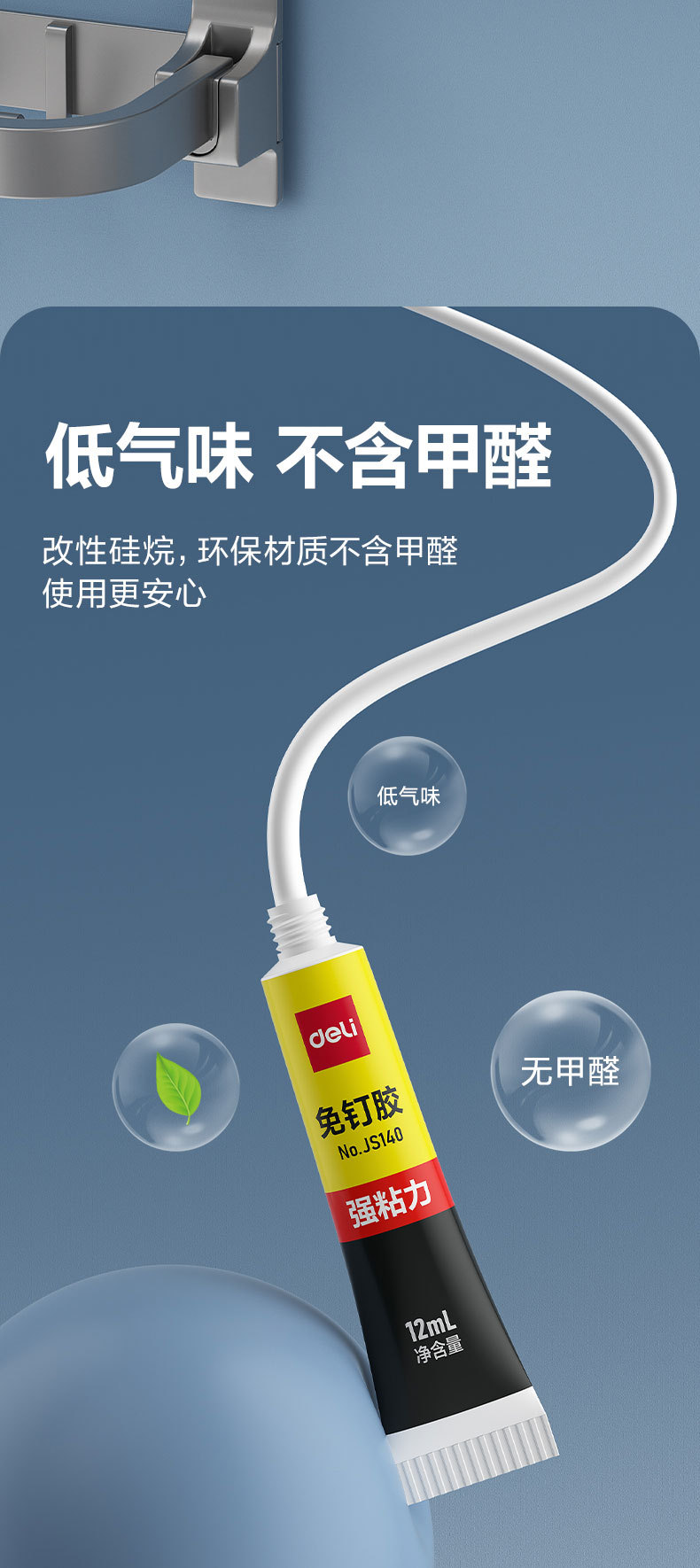 델리 JS140 못없는 접착제 강한 접착제 높은 점도 벽 타일 가정용 12ml 구멍없는 접착제 물 유리