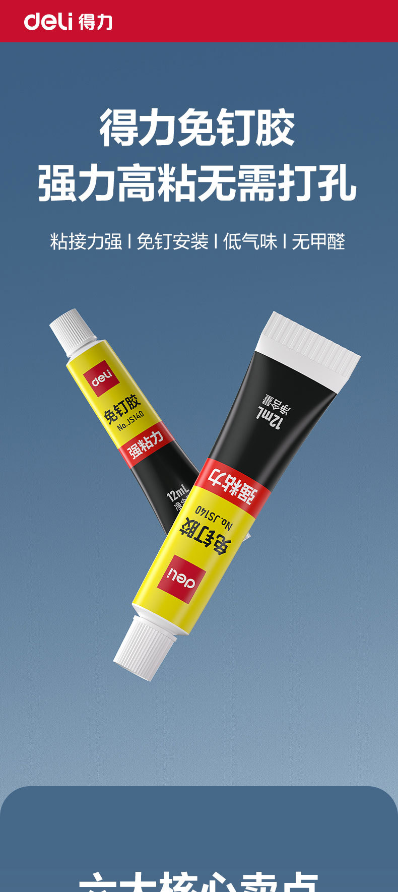 델리 JS140 못없는 접착제 강한 접착제 높은 점도 벽 타일 가정용 12ml 구멍없는 접착제 물 유리스토어 가기