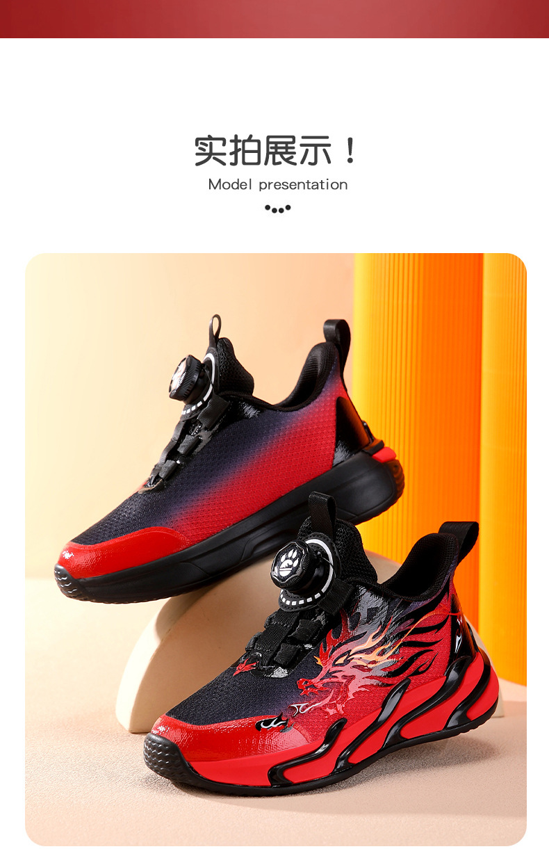 남아용 신발 2025년 가을 신상 어린이 회전 버클 운동화 생년월일 색상 빨간색 중대형 어린이 통기성 러닝화
