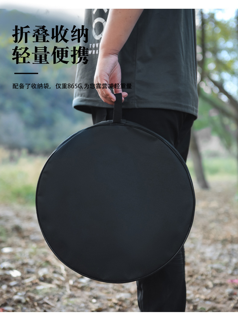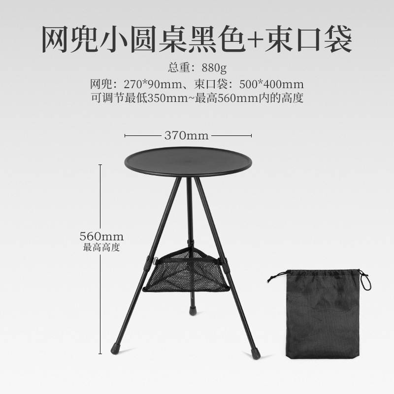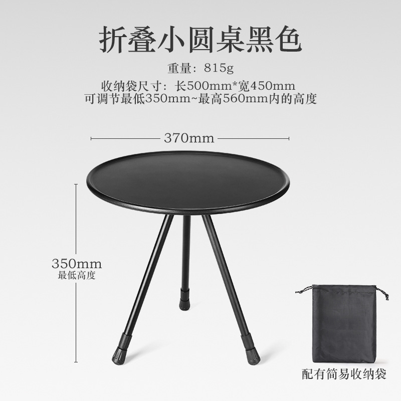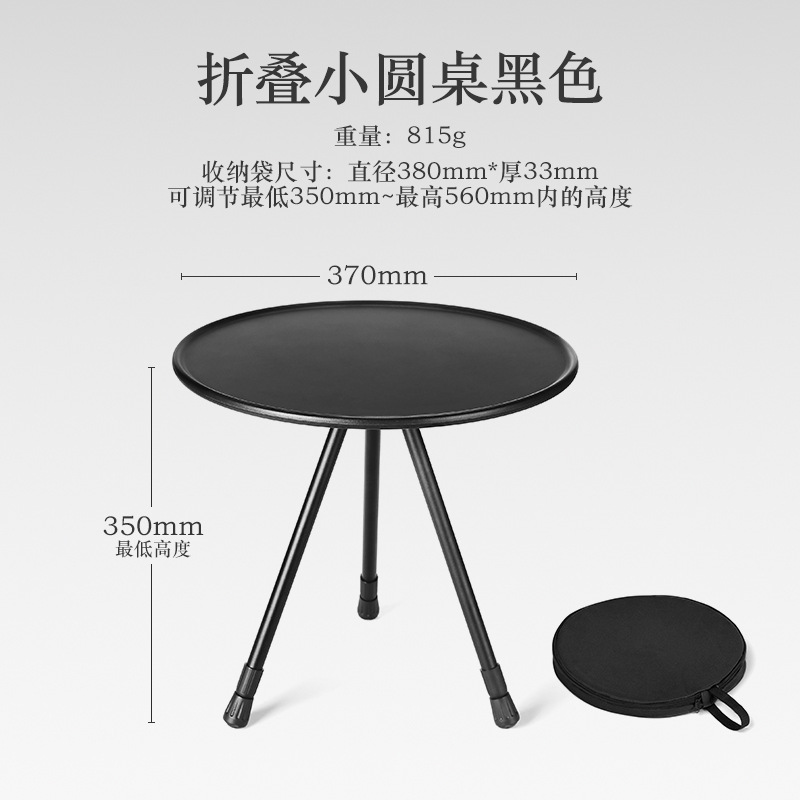 • 올리고 접을 수 있는 검정색 알루미늄 합금 소형 원형 테이블 두꺼운 보관 가방