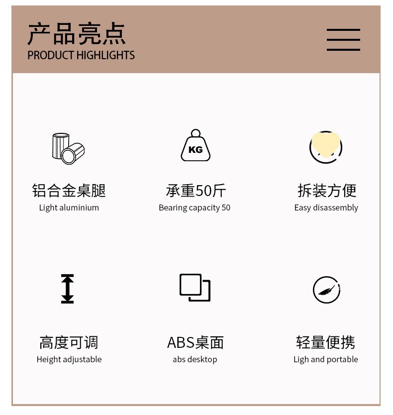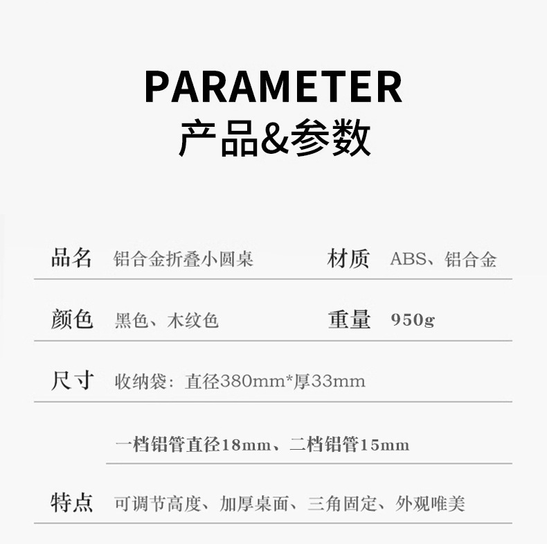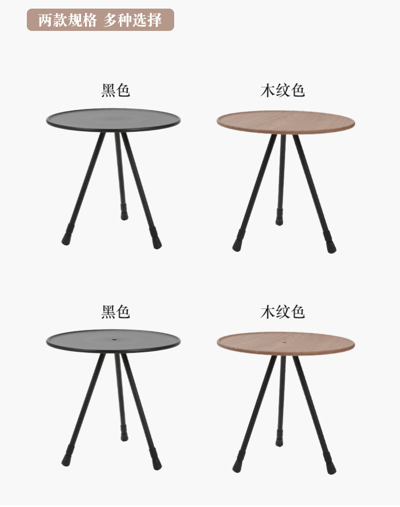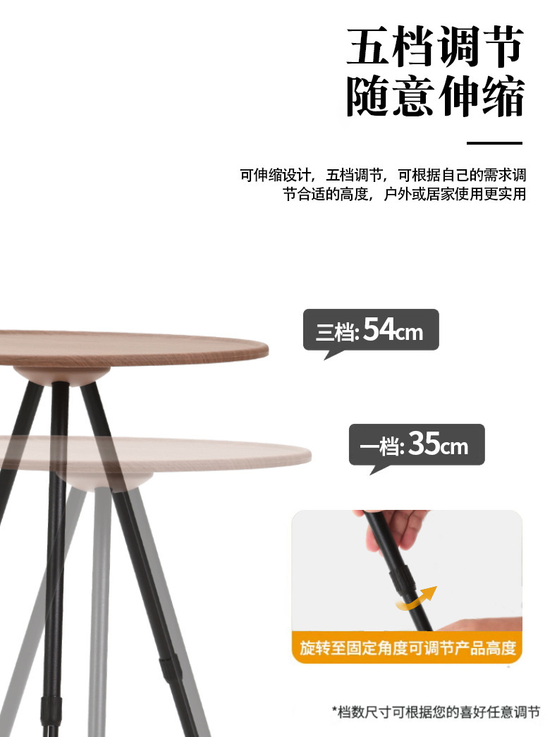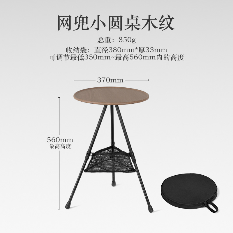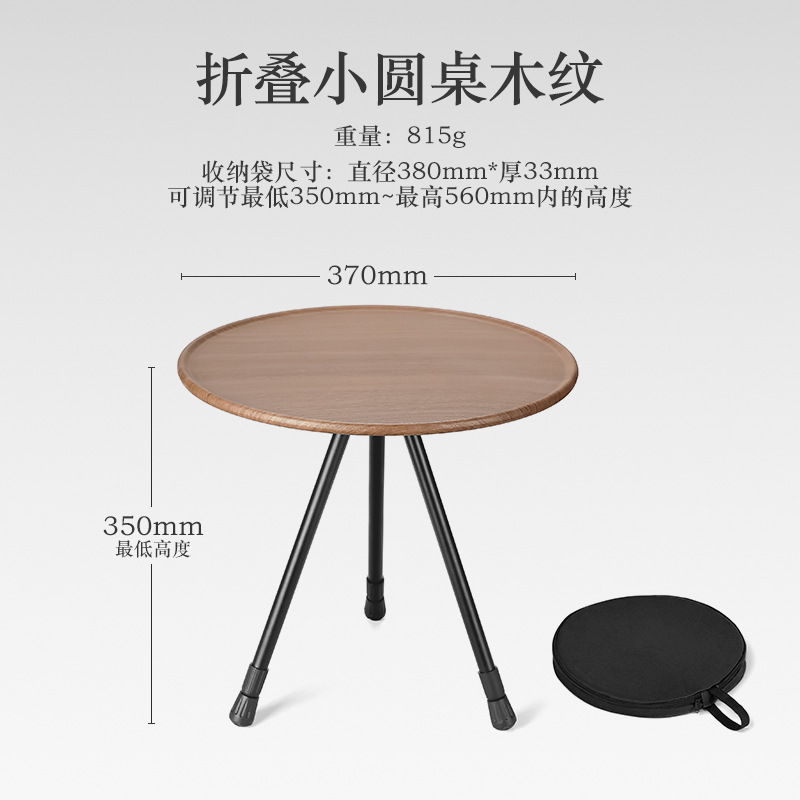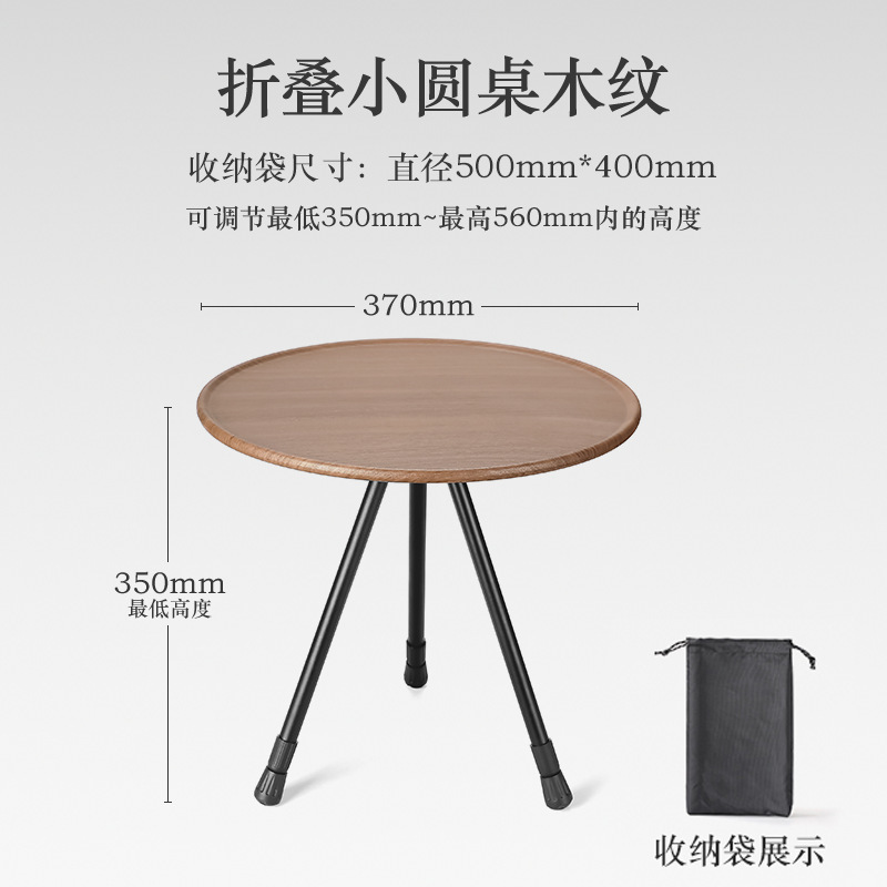 • 나뭇결색 알루미늄 합금 소형 원형 테이블, 간단한 포장, 들어 올리고 접을 수 있음