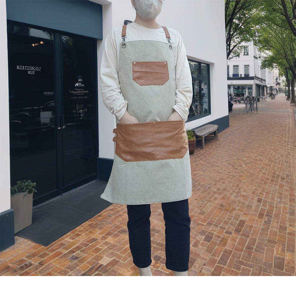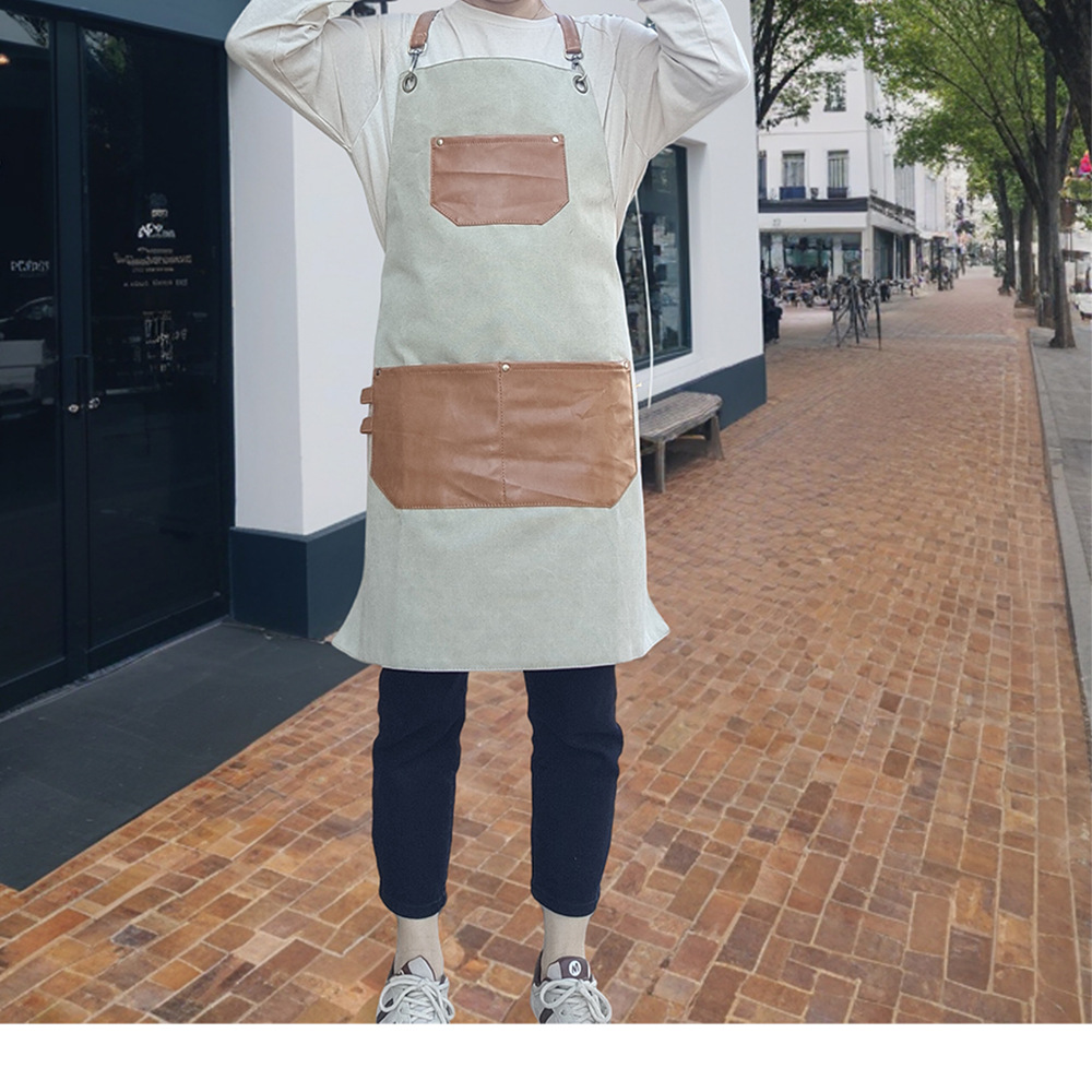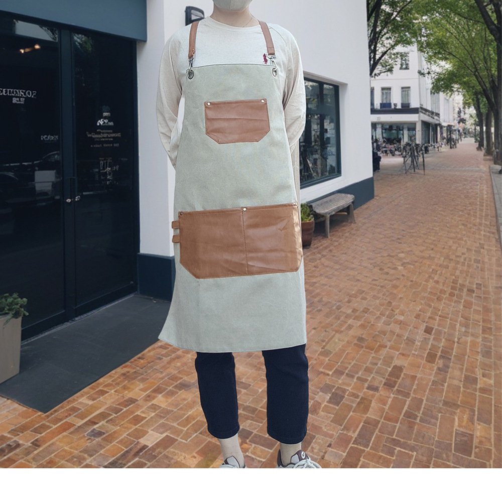 젊은 우유 차 커피 숍 두꺼운 캔버스 다크 브라운 PU 가죽 주머니 인쇄 새로운 우유 차 가게 맞춤 로고스토어 가기